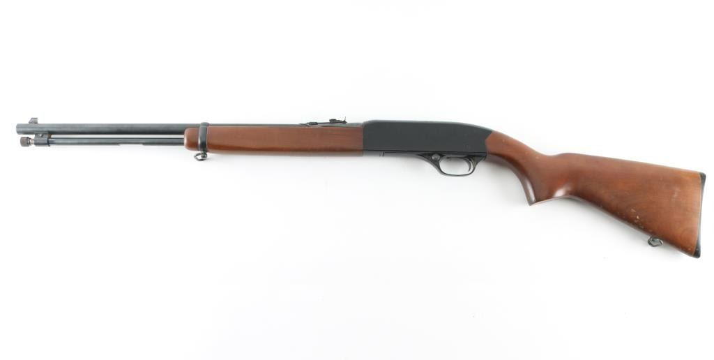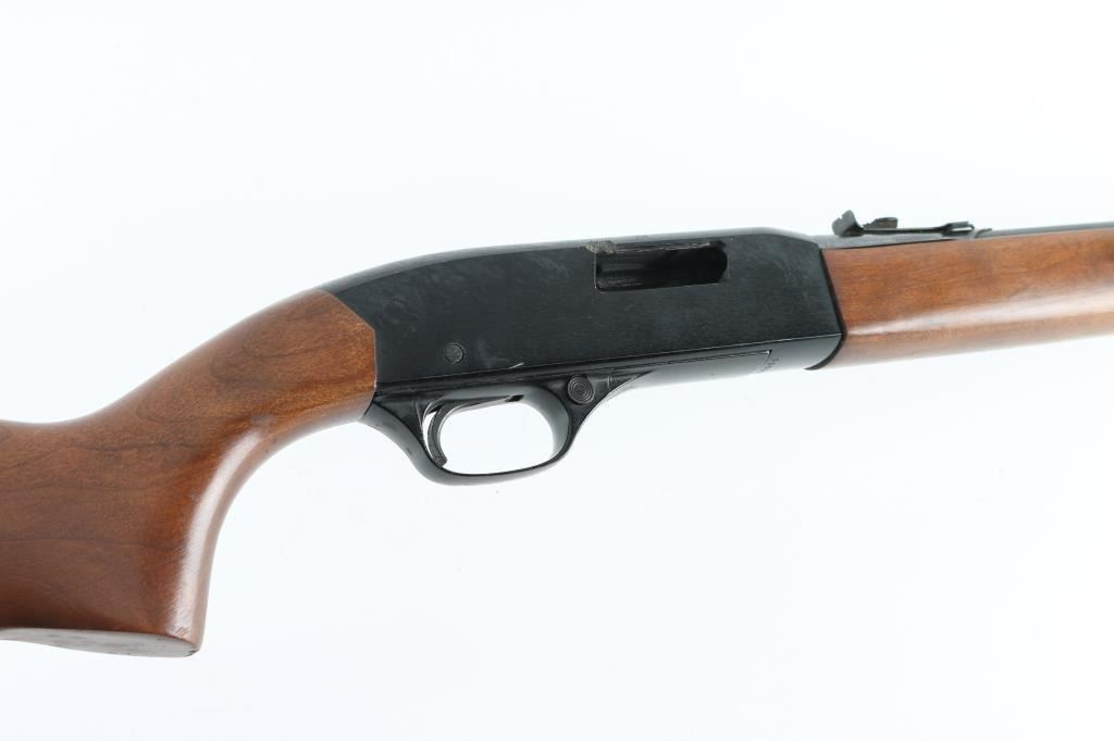 This is a parts/project gun. Missing the bolt, magazine will not lock into the tube, and there is a chip out of the metal around the ejection port. Semi-Automatic. Produced 1967-1980. 20.5" barrel with post/bead front and buckhorn rear sights. Full length tube magazine. Alloy receiver grooved for optics. Push safety on triggerguard. Checkered walnut stock and forearm are near excellent. Black plastic Winchester buttplate. Blued finish and black painted receiver. Bore is very good/bright. NRA Condition-Poor/Damaged/Missing Bolt. C&R firearm.