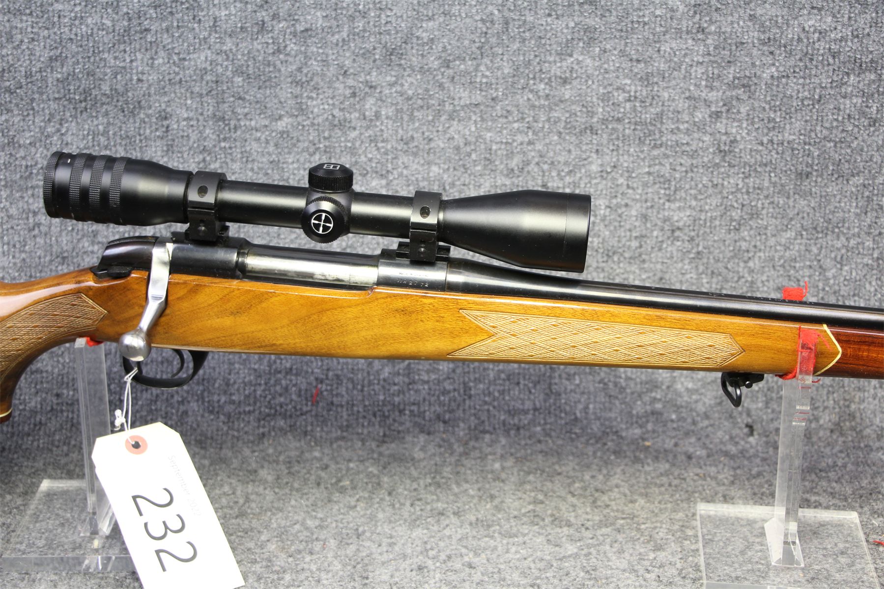 Gorgeous BSA deer/varmint gun. Amazing furniture. Kassnar 4x scope. Drop plate mag. A couple of minor dings on the stock. Not a mark on the metal.