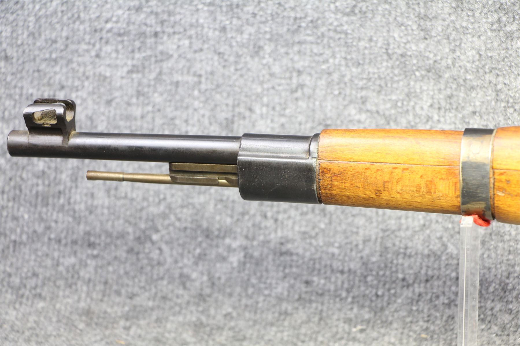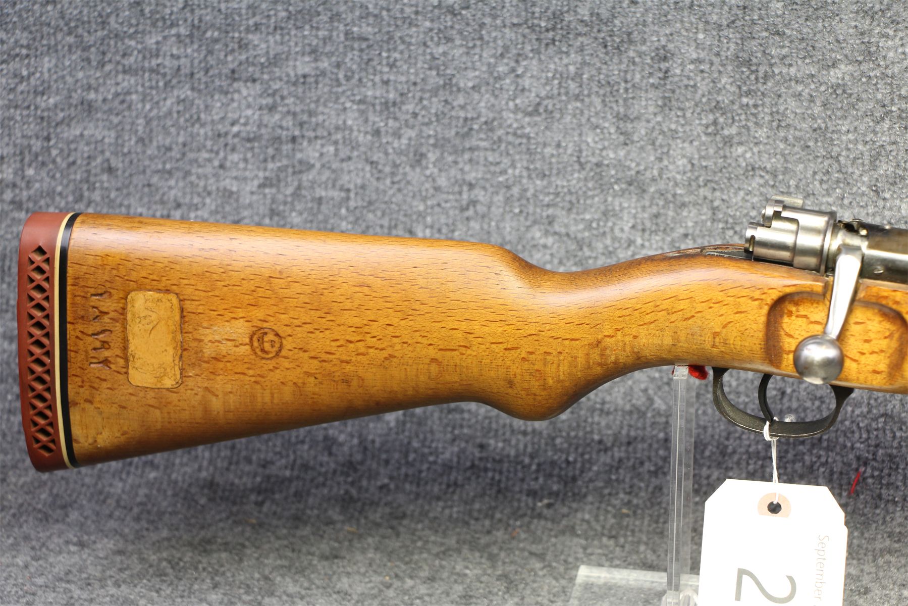 Has been sporterized. Sling hole has been filled. Recoil pad. Rear sight missing. Has been drilled and tapped for a scope. No rust.