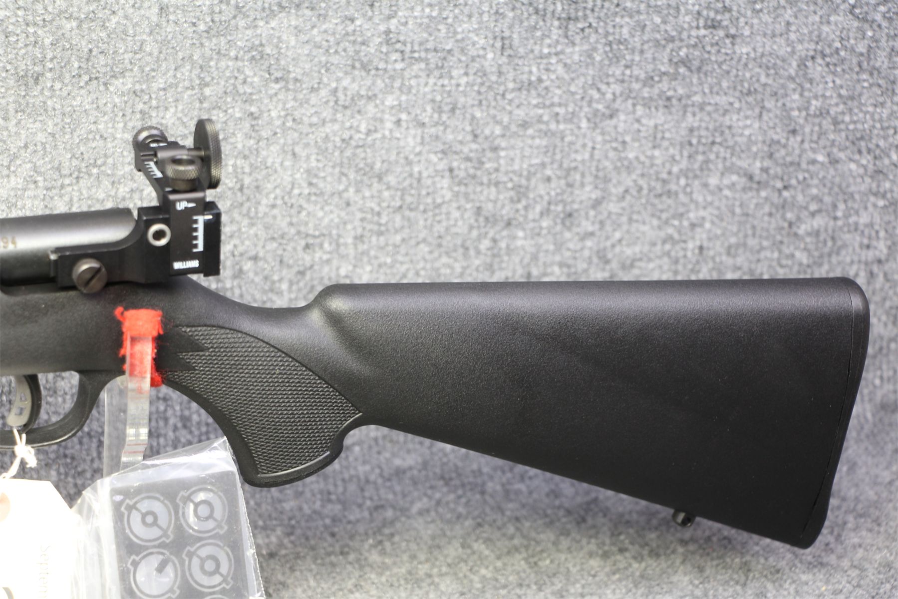 *CORRECTION* New, unfired. Not a mark on this gun. Heavy barrel. Accu-trigger. Front peep sight with apertures.