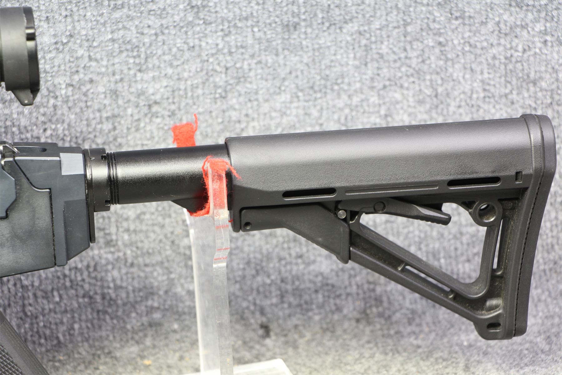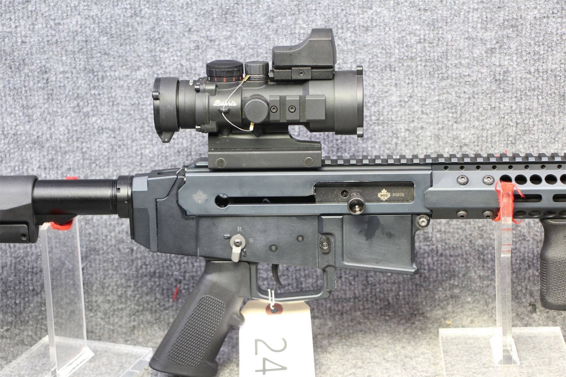 In nearly out of the box condition. Comes with a Burris AR 536 scope with a Bushnell holographic top sight.
