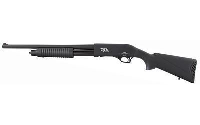 The Rock Island Armory Meriva 12 Gauge Pump Action Shotgun features a black anodized finish, smooth bore 18.5" barrel, and 3" chamber. The Meriva also sports a 5 tube capacity and an overall length of 40.15".