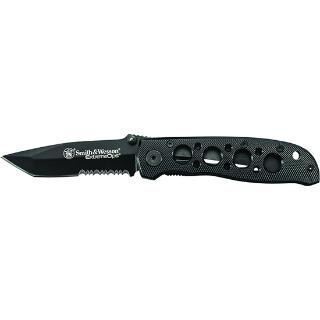 Smith & Wesson Extreme Ops Liner Lock Folding Knife, Black 7Cr17 High Carbon Stainless Steel Tanto Blade with Ambidextrous Thumb Knobs and Jimping, Textured Black Aluminum Handle with Lanyard Hole and Pocket Clip
