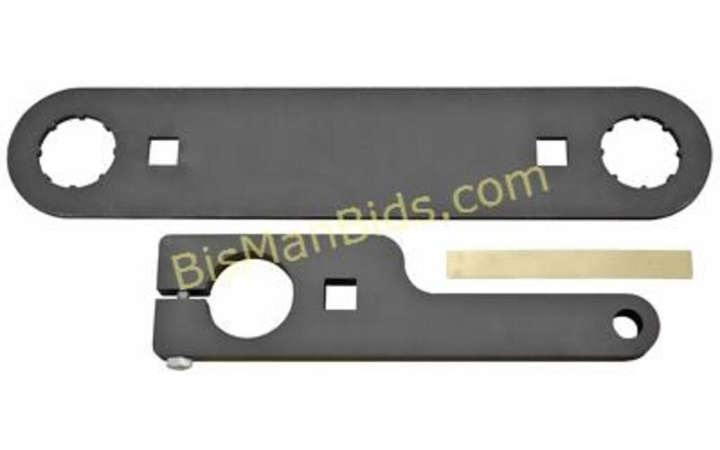 Heavy duty tools deliver the strength and rigidity required for proper barrel removal and installation. The action wrench safely surrounds and supports the receiver ring. The 15" long, 1" diameter steel handle will overcome even the tightest assemblies. The double ended savage barrel nut wrench fits both early and late model nuts on the 110 and 10 series rifles. It also features two 1/2" square drive holes for a swing bar or a torque wrench.