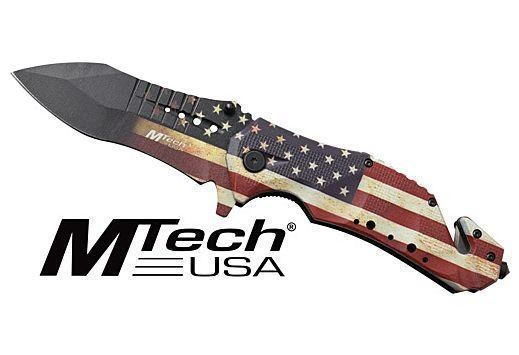 Lot 372 MC MTECH 3.75" DROP POINT FOLDER W/CUTTER US FLAG/SS