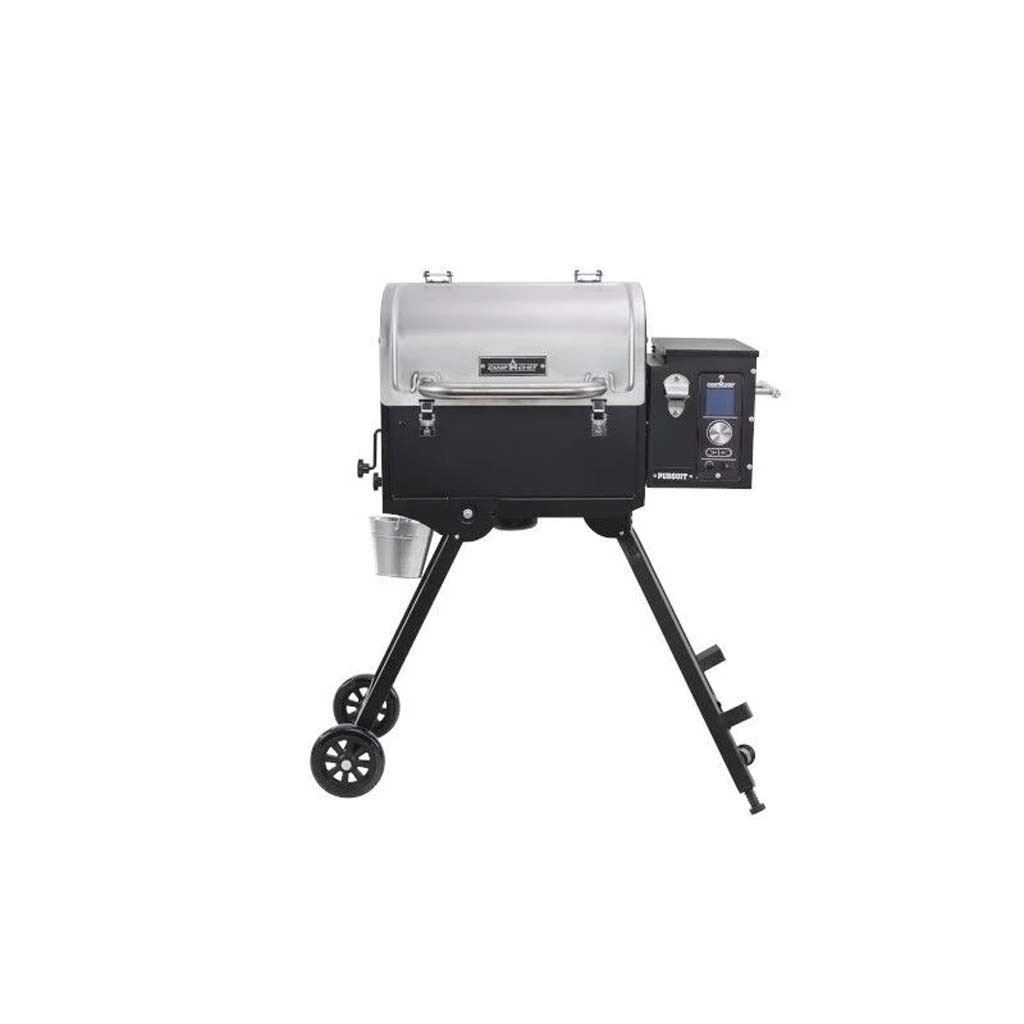 Enjoy an extensive 160‚°F to 500‚°F temperature range fueled by premium hardwood pellets. Switch seamlessly between indirect and direct flame broil mode with our Slide and Grill Technology. Customizing your cooking has never been easier—Smoke a brisket for hours and achieve a beautiful smoke ring or quick-cook a batch of burgers and feed the family. Fit up to 24 - ‚¼ pound burgers or 16 - ‚½ pound burgers, one 12-inch pizza, 4 chickens, 4 racks of ribs and 4 tri-tips. When you''re done, clean up is effortless with our patented Ash Cleanout system. Get the same reliable name and durable construction of a Camp Chef, with the flavors of a wood fire. Fuel your next adventure with the Pursuit.