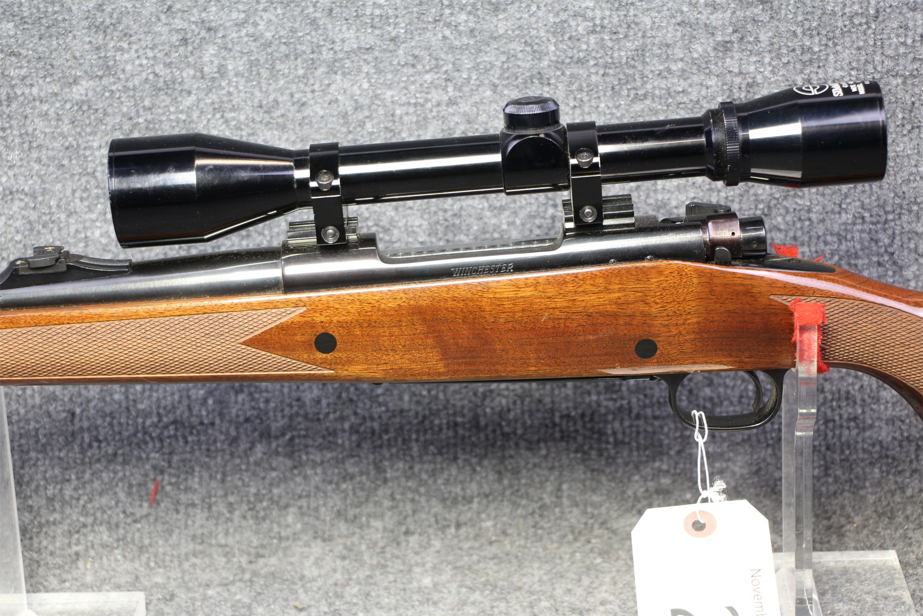 Slight marks on the stock. Metal is flawless. Comes with a Simmons 4x scope.