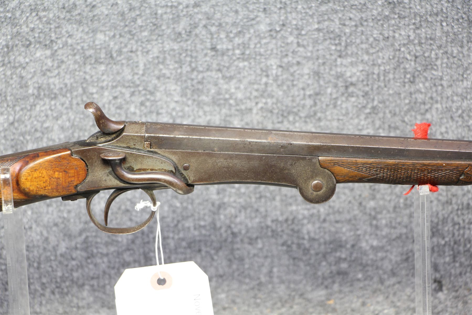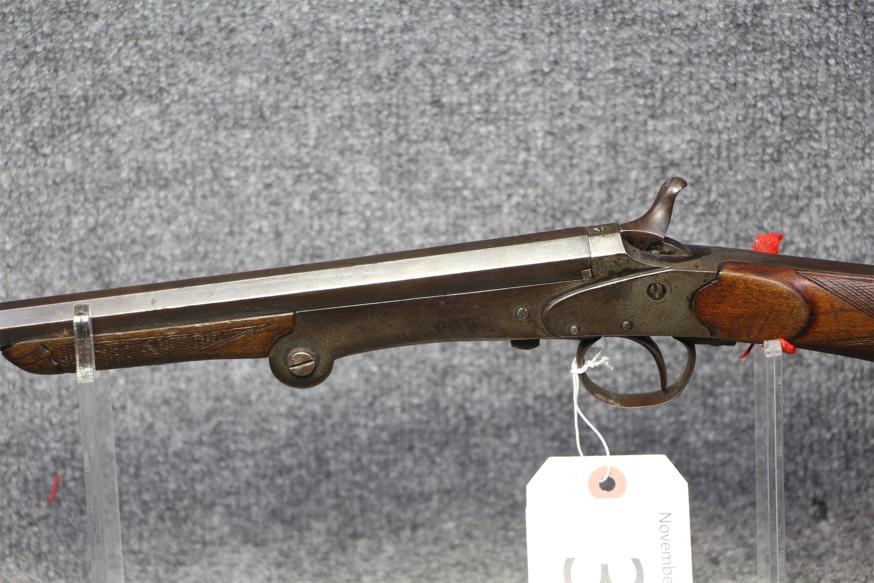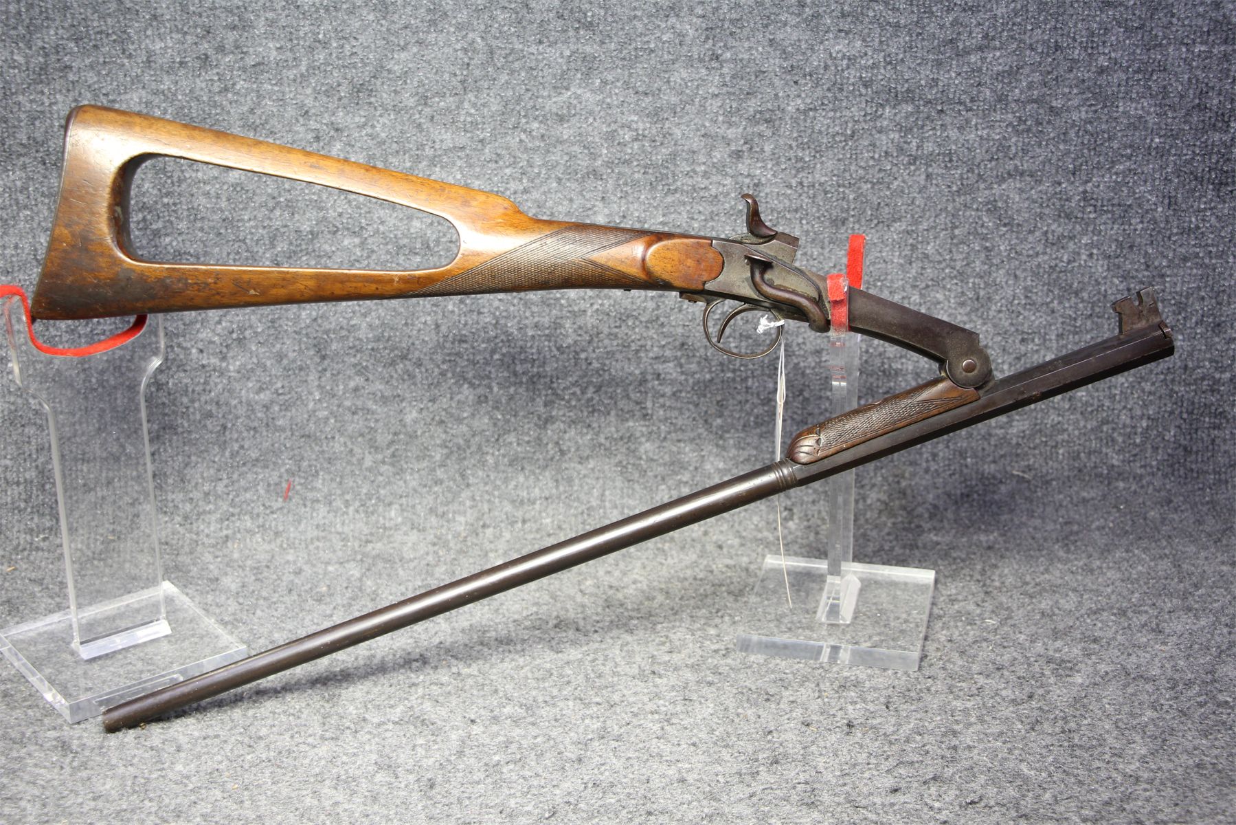 Very experienced and it shows. Much rust on the barrel and receiver. Breaks open 180 degs. Skeleton stock. Liege stampings. Belgian made. Firing pin return spring needs to be replaced.