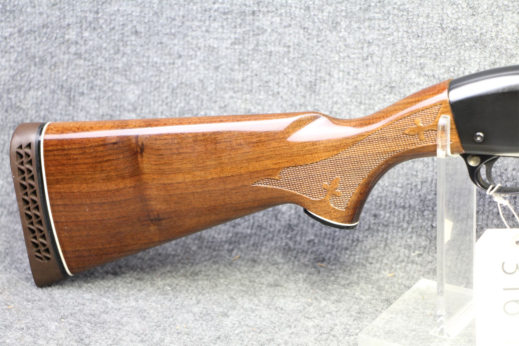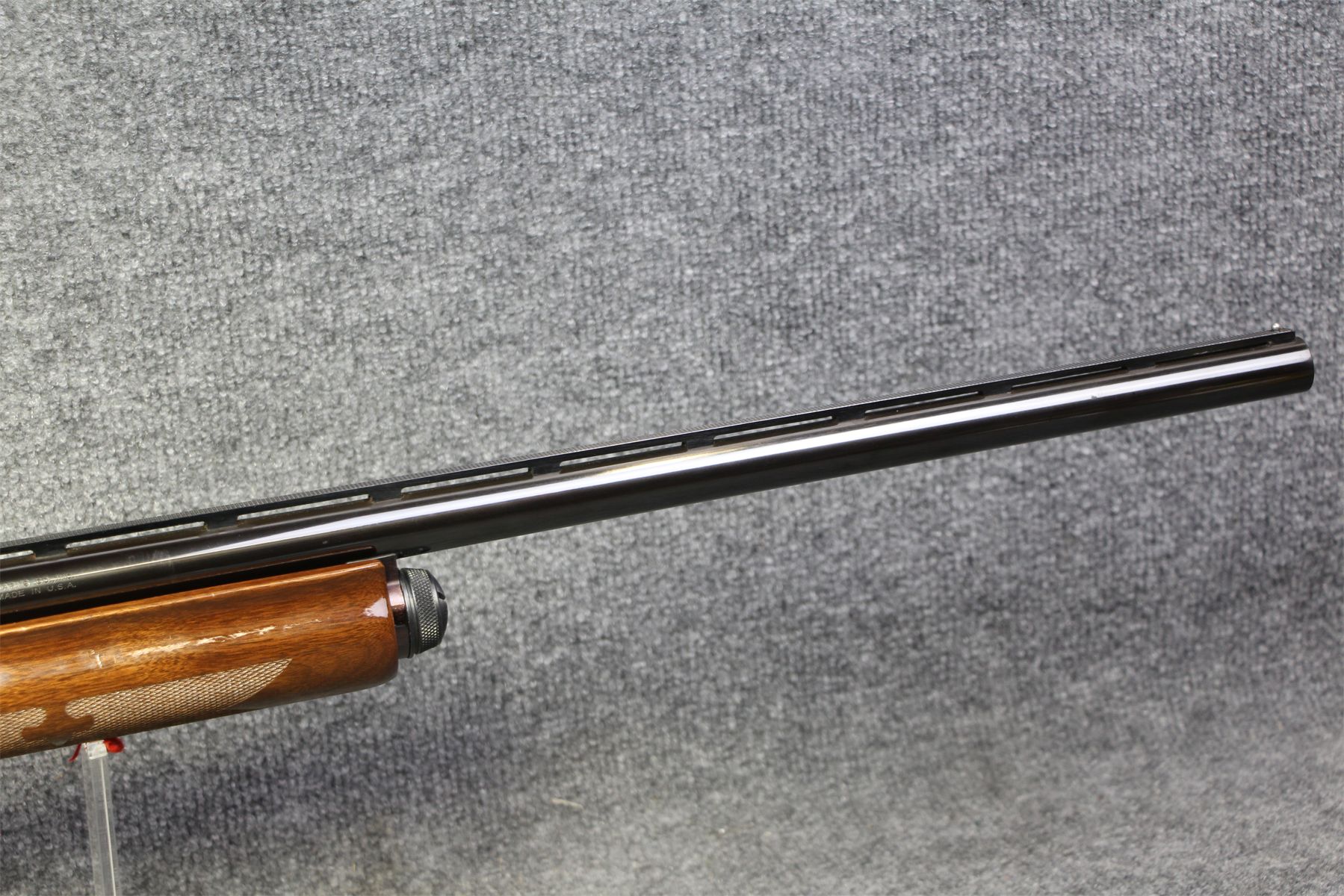 With cyl bore and a smooth slug barrel with rifle sights. Recoil pad. Hight gloss finish. Minor handling marks on the wood. No marks on the metal.
