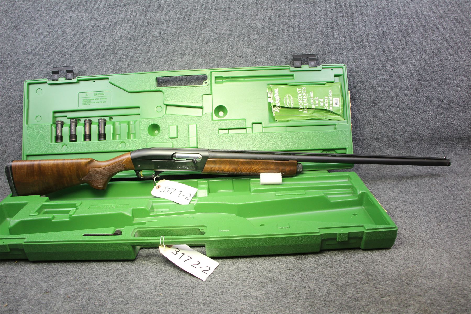 In out of the box condition. This is the nicest walnut stock I have ever seen on an 1187. Original plastic case with 5 chokes and wrench. Owners manual.