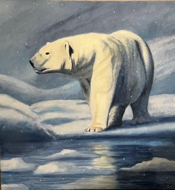 This year he has graciously donated bidders choice of either an original oil painting of a Polar Bear titled "Edge of The Ice" (36 x 36 unframed)