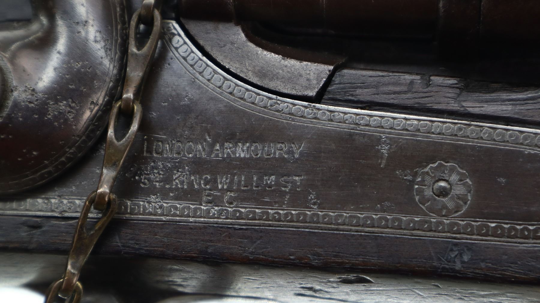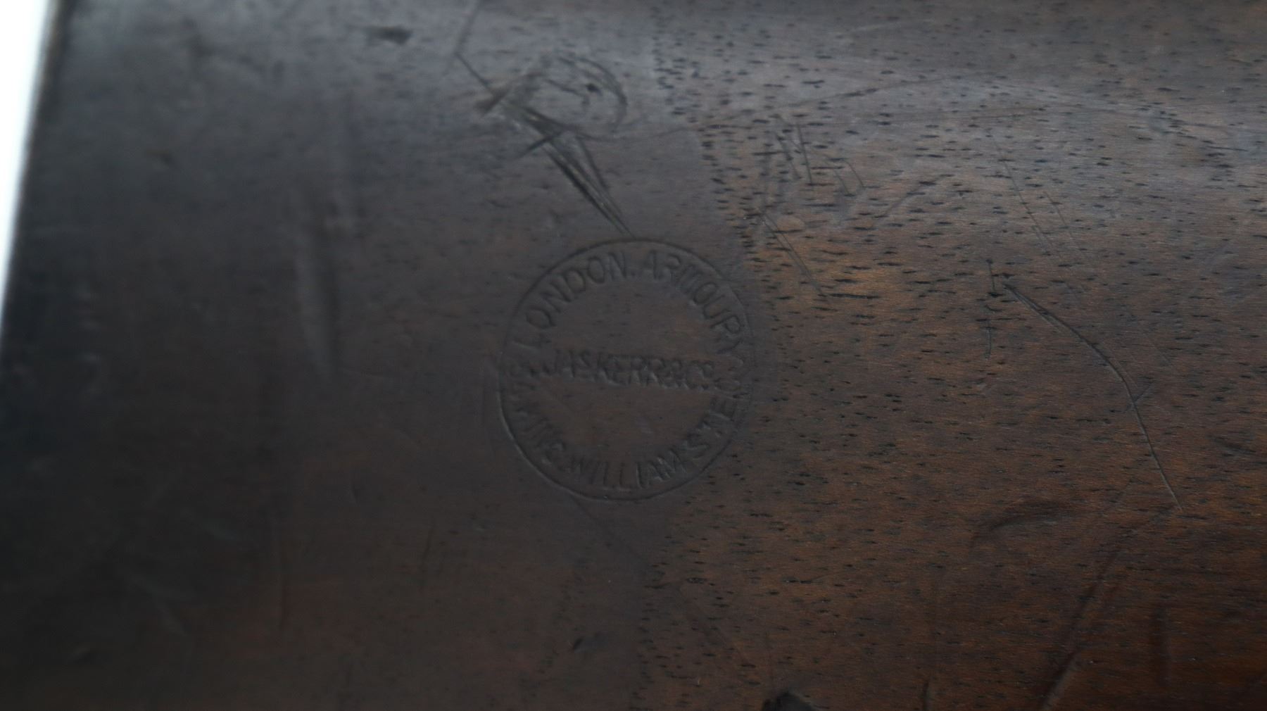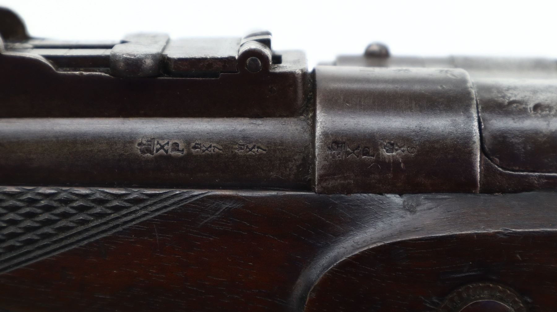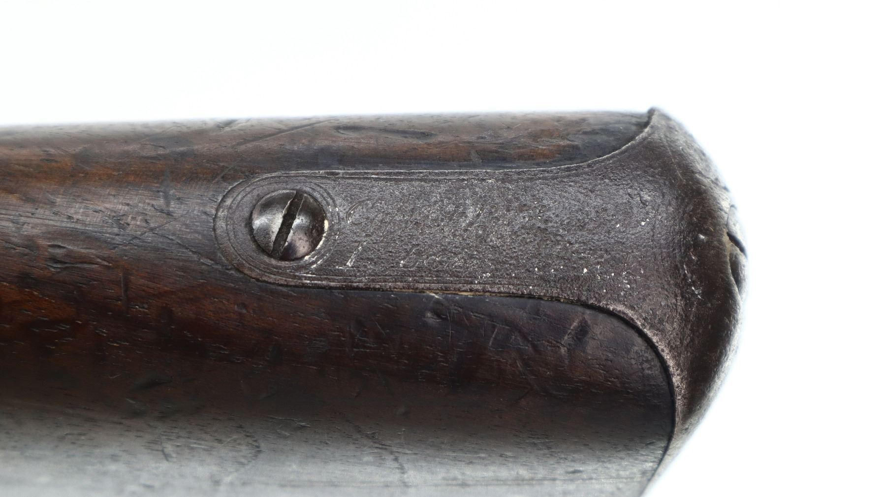5+/10, SNIDER ENFIELD, MODEL: MKII** THREE BAND, CALIBER:577 SNIDER, BORE IS FAIR, LIGHT PITTING. MANUFACTURED BY LONDON ARMOURY. BLADE FRONT SIGHT WITH RAMP, ADJUSTABLE U NOTCHED LADDER REAR SIGHT, BREECH BLOCK IS SLIGHTLY LOOSE, ENGRAVED LOCK AND CHECKERED HAMMER, NIPPLE PROTECTOR, LEATHER REPLACED WITH WOOD. ONE PIECE FULL MILITARY WOOD STOCK, CHECKERED FOREARM AND STRAIGHT GRIP, SMOOTH STEEL BUTT PLATE, LONDON ARMOURIES ROUNDEL ON RIGHT SIDE OF BUTT, STEEL TRIGGER GUARD, SLING SWIVELS, RAMROD. METAL FINISH TURNING BROWN WITH SOME LIGHT PITTED SPOTS, SCRATCHES, HANDLING MARKS AND WEAR. STOCK SHOWS SOME MARKS, SCRATCHES AND WEAR. , ACTION: HINGED SINGLE SHOT RIFLE, BARREL LENGTH: 36.5", SERIAL # 29, CONDITION: 5+/10, CLASS: CANADIAN ANTIQUE CLASS, NO LICENSE REQUIRED