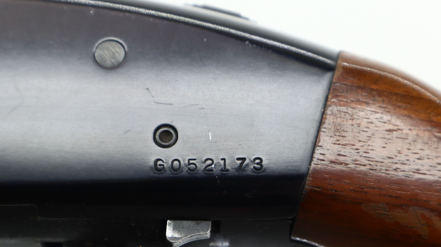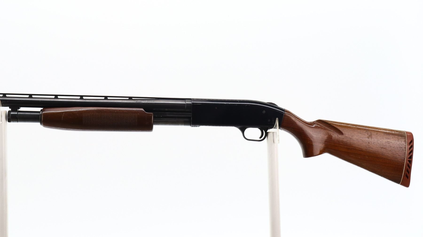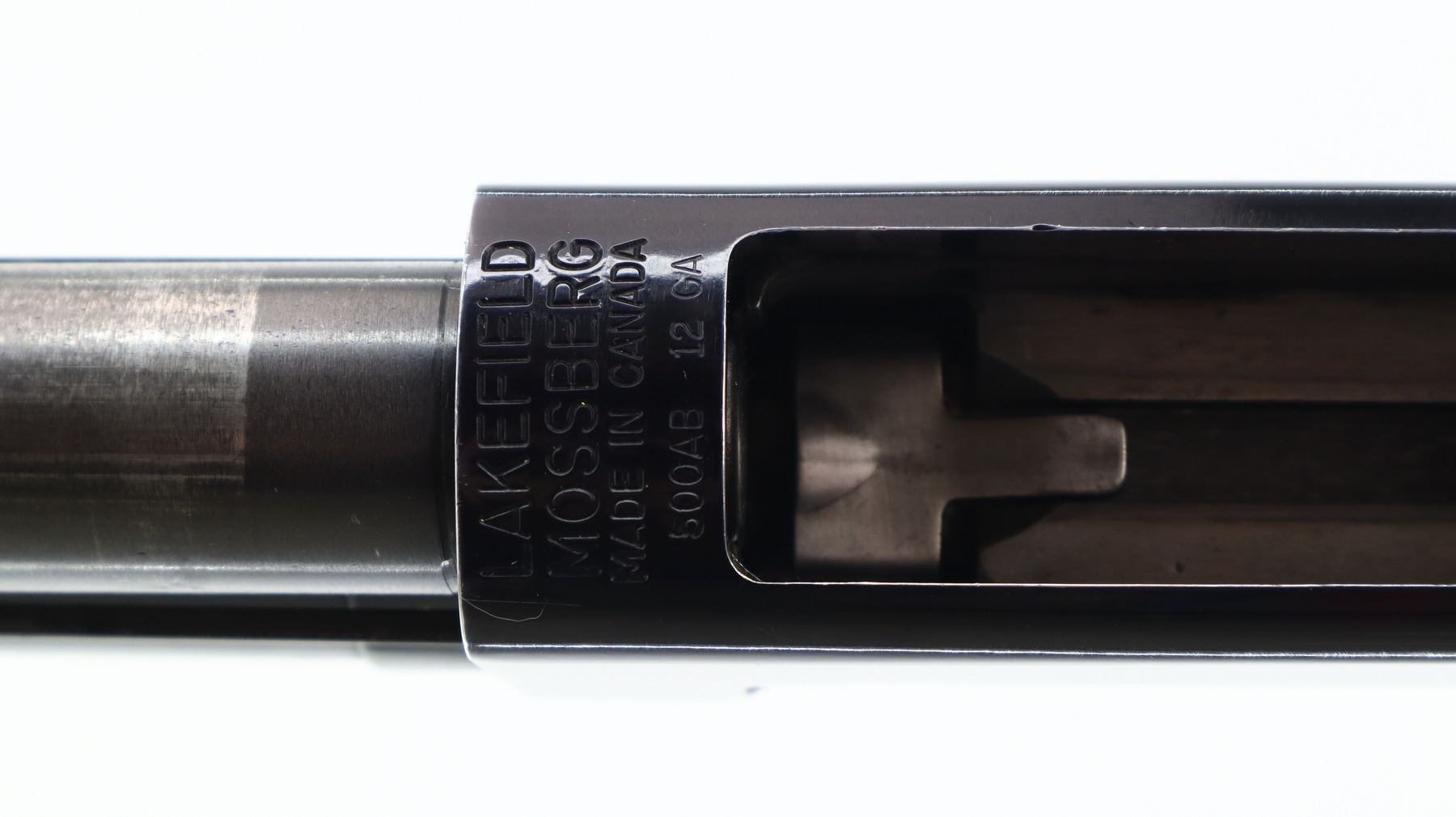 6+/10, MOSSBERG, MODEL: 500AB, CALIBER:12 G X 3", COMES WITH TRIGGER LOCK, BORE IS VERY GOOD. FIXED FULL CHOKE. BRASS BEAD, BLUED VENT RIB BARREL, BLACK ALLOY RECEIVER, TANG SAFETY. TWO PIECE WOOD STOCKS, GROOVED FOREND, PISTOL GRIP, RED VENTED RUBBER RECOIL PAD. METAL FINISH SHOWS SOME SCRATCHES, HANDLING MARKS AND WEAR. STOCKS SHOW SOME MARKS, SCRATCHES AND WEAR. , ACTION: PUMP ACTION SHOTGUN, BARREL LENGTH: 30", SERIAL # G052173, CONDITION: 6+/10, CLASS: CANADIAN NON RESTRICTED