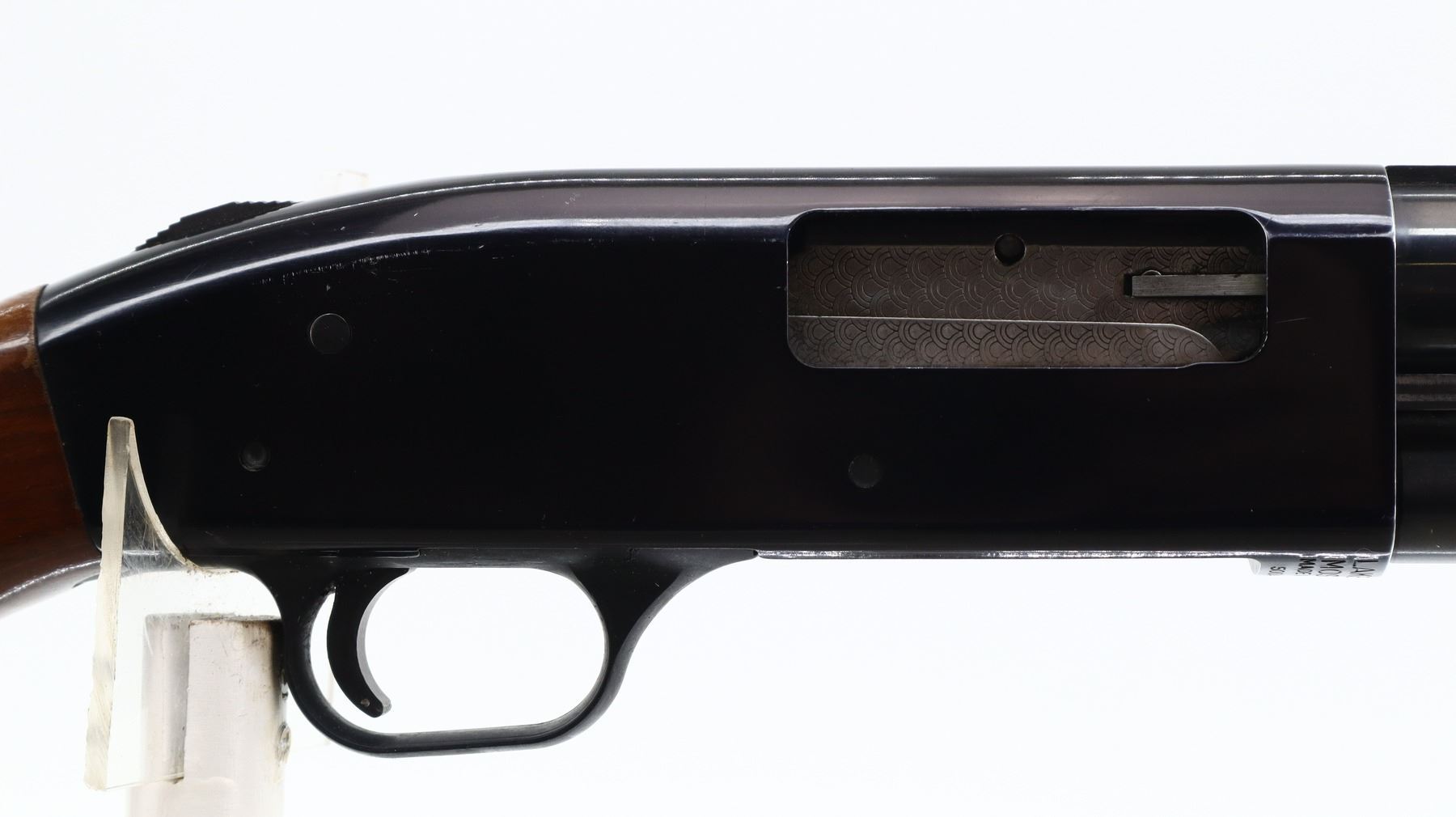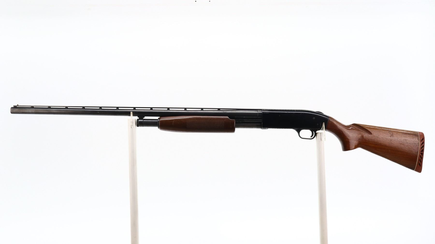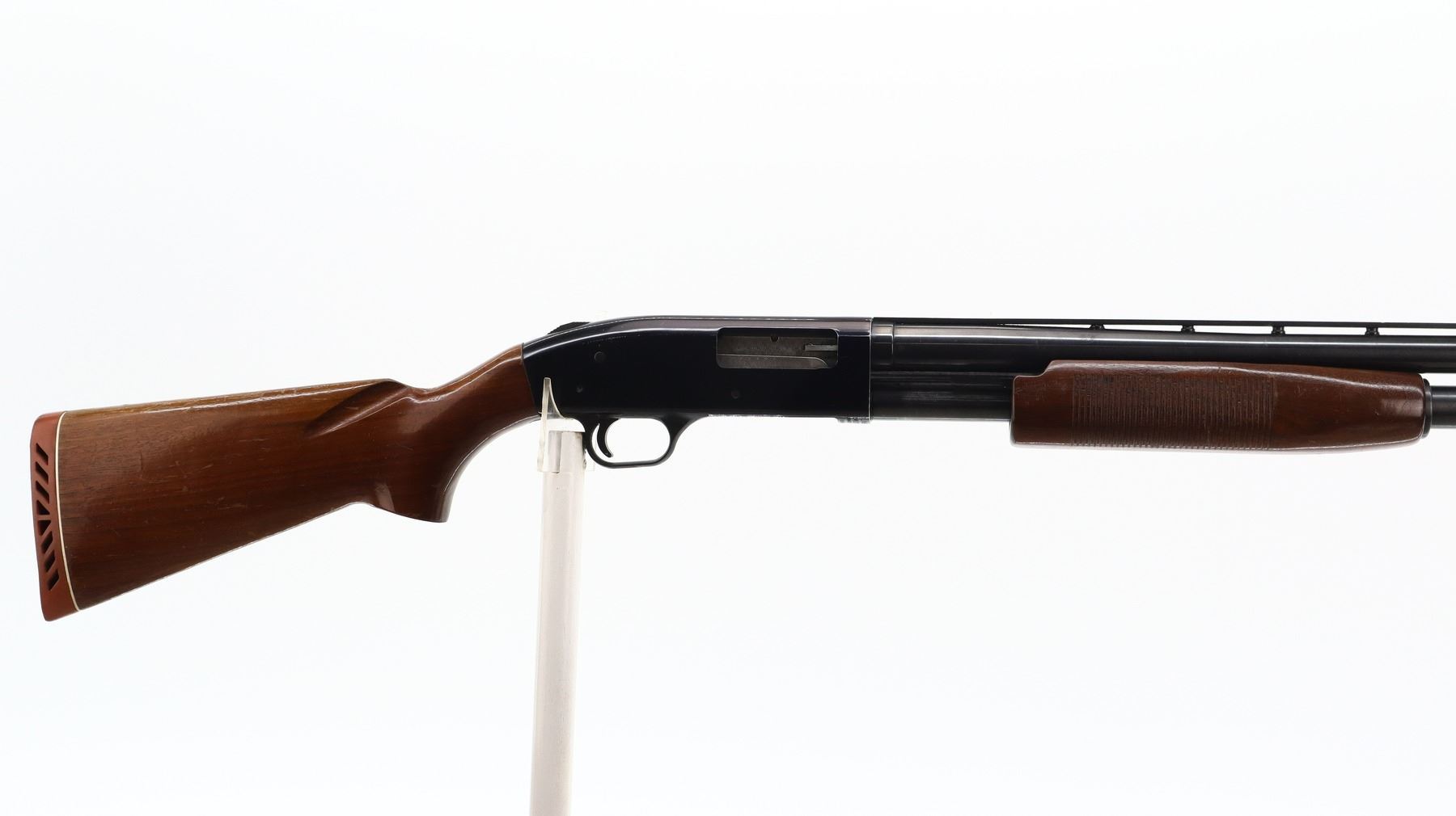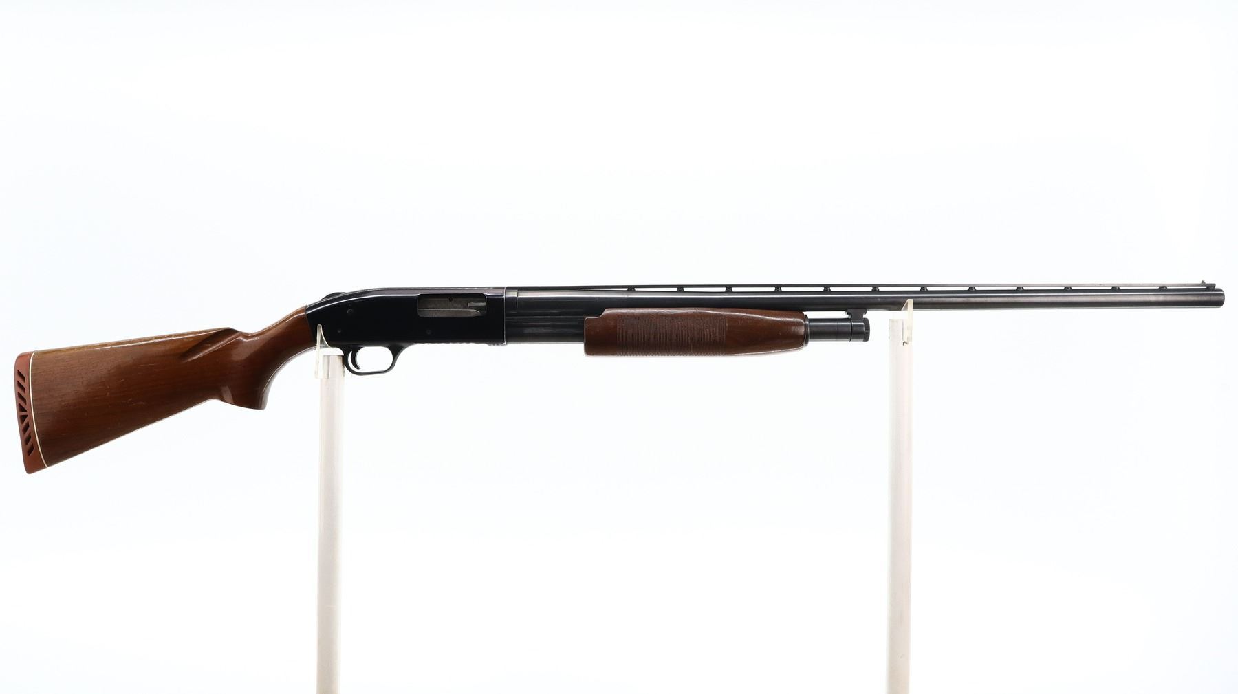6+/10, MOSSBERG, MODEL: 500AB, CALIBER:12 G X 3", COMES WITH TRIGGER LOCK, BORE IS VERY GOOD. FIXED FULL CHOKE. BRASS BEAD, BLUED VENT RIB BARREL, BLACK ALLOY RECEIVER, TANG SAFETY. TWO PIECE WOOD STOCKS, GROOVED FOREND, PISTOL GRIP, RED VENTED RUBBER RECOIL PAD. METAL FINISH SHOWS SOME SCRATCHES, HANDLING MARKS AND WEAR. STOCKS SHOW SOME MARKS, SCRATCHES AND WEAR. , ACTION: PUMP ACTION SHOTGUN, BARREL LENGTH: 30", SERIAL # G052173, CONDITION: 6+/10, CLASS: CANADIAN NON RESTRICTED