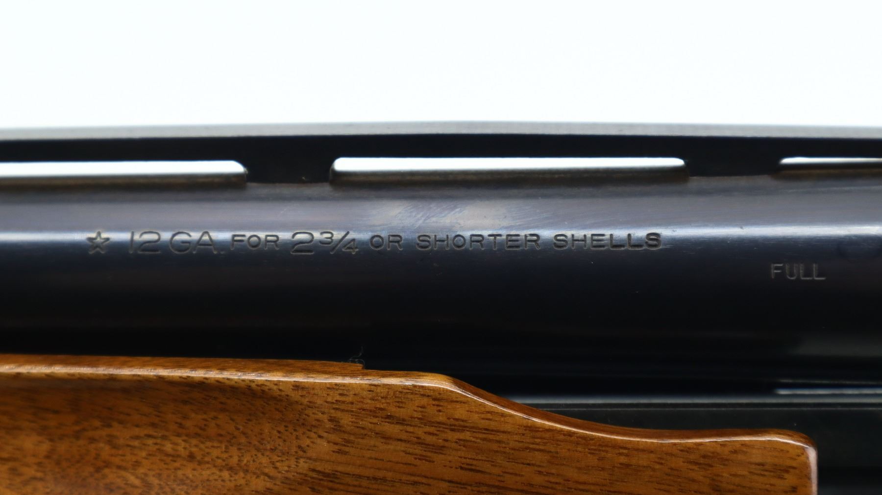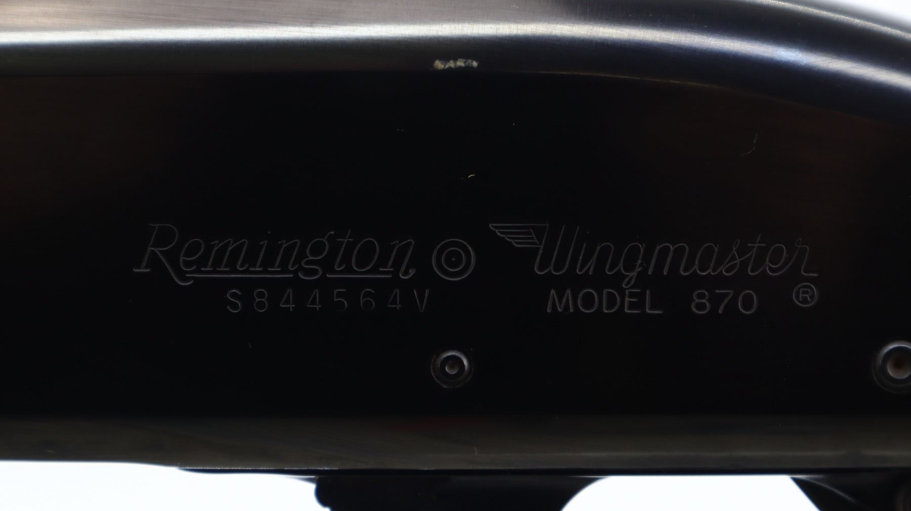 7/10, REMINGTON, MODEL: 870 WINGMASTER, CALIBER:12 G X 2 3/4", BORE IS EXCELLENT. FIXED FULL CHOKE. SILVER BEAD, BLUED FINISH, VENT RIB BARREL. TWO PIECE WOOD STOCKS, CHECKERED FOREARM AND PISTOL GRIP, BROWN VENTED RUBBER RECOIL PAD, GRIP CAP. METAL FINISH SHOWS SOME SCRATCHES, HANDLING MARKS AND WEAR. STOCKS SHOW SOME MARKS, SCRATCHES AND WEAR. , ACTION: PUMP ACTION SHOTGUN, BARREL LENGTH: 30", SERIAL # S844564V, CONDITION: 7/10, CLASS: CANADIAN NON RESTRICTED