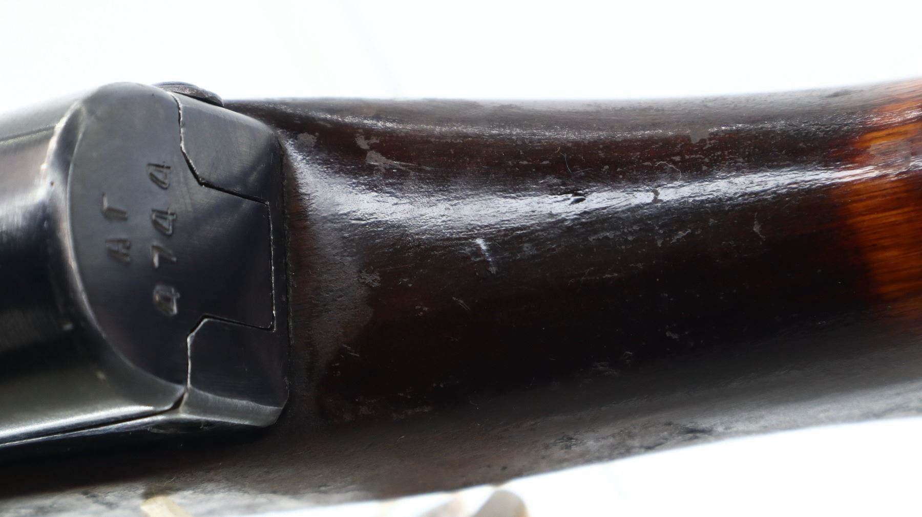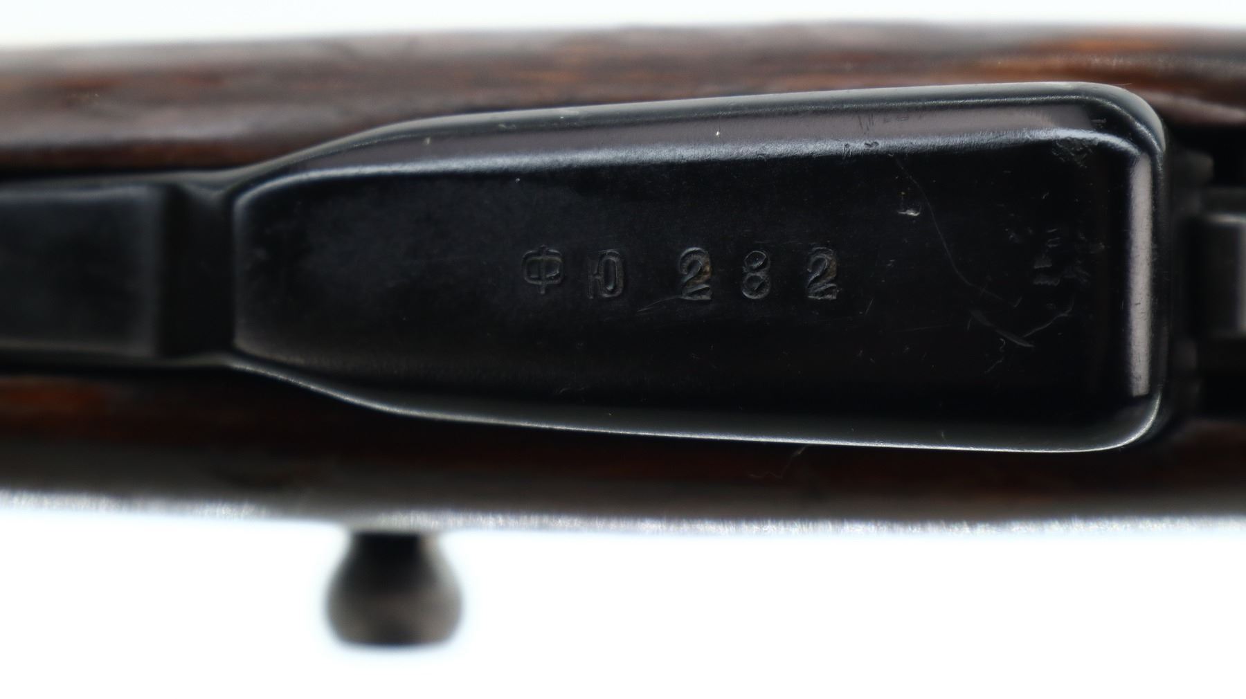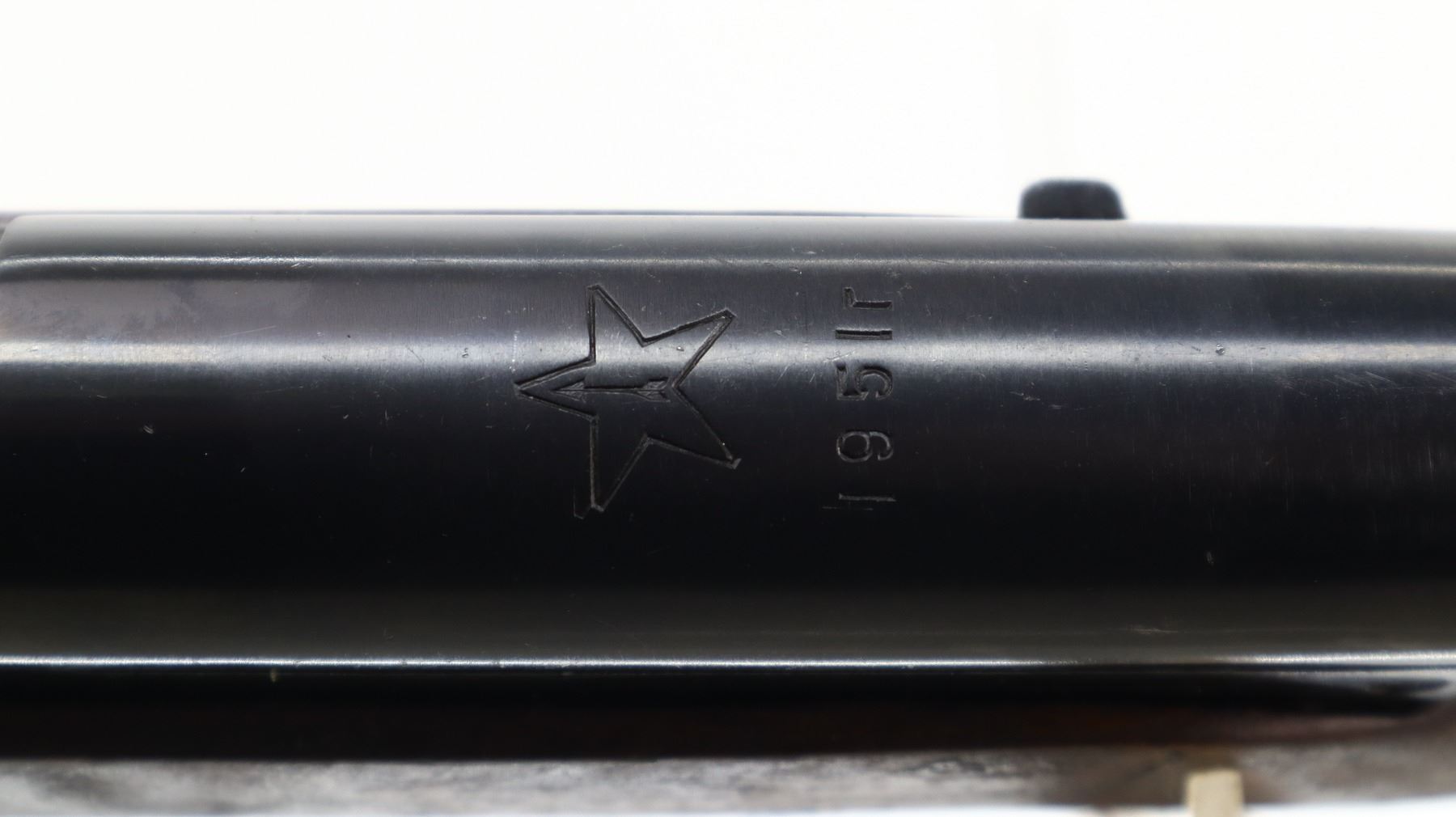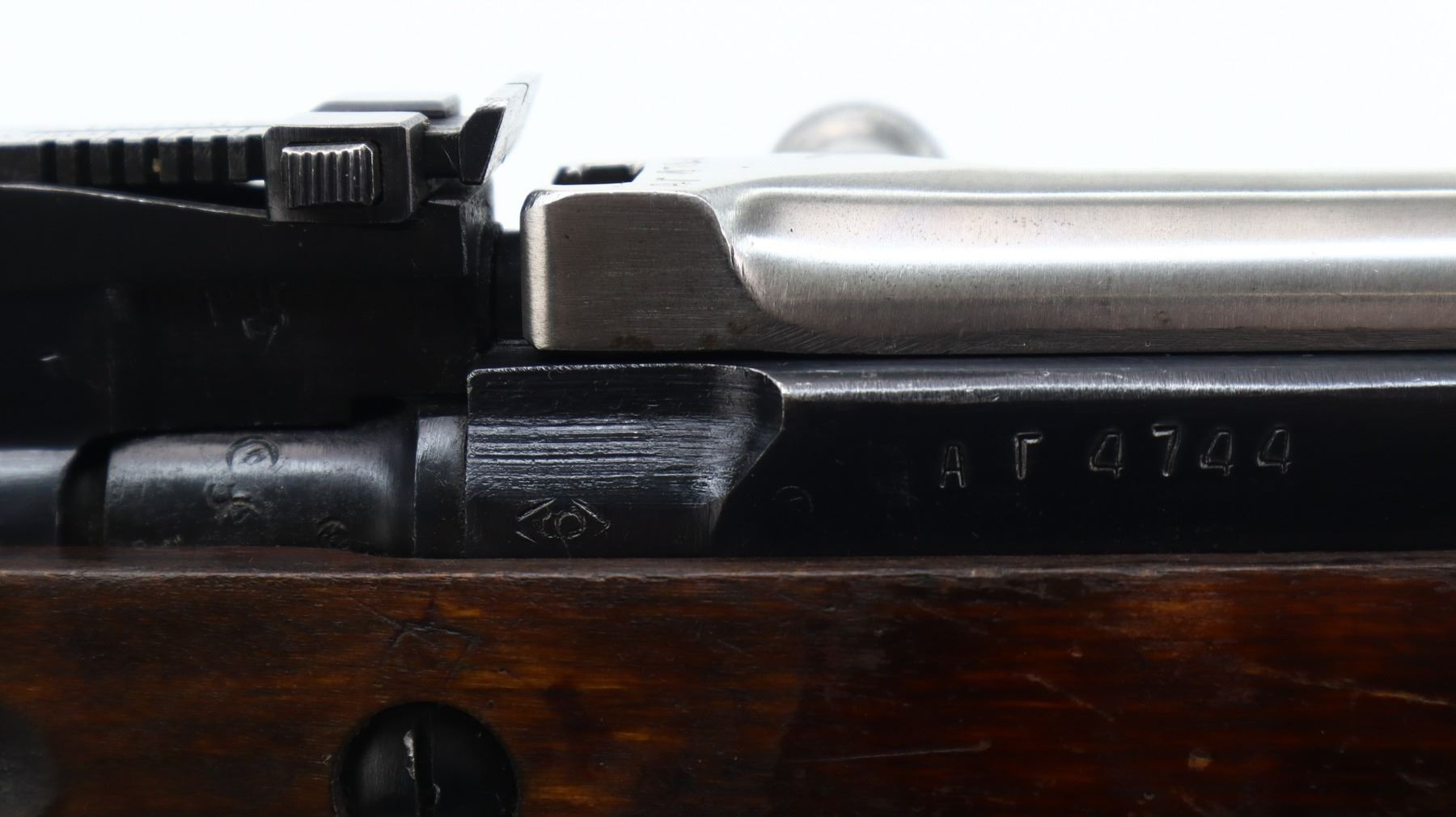 6/10, RUSSIAN SIMONOV, MODEL: SKS, CALIBER:7.62 X 39, BORE IS FAIR, WORN, LIGHT PITTING. MANUFACTURED BY TULA 1951, VISIBLE NUMBERS MATCH EXCEPT MAGAZINE. POST FRONT SIGHT WITH HOOD AND RAMP, ADJUSTABLE U NOTCHED REAR SIGHT, BLUED FINISH, SILVER BOLT AND CARRIER. TWO PIECE FULL MILITARY WOOD STOCKS, FINGER GROOVED FOREND, PISTOL GRIP, SMOOTH STEEL BUTT PLATE WITH TRAP AND CLEANING KIT. MISSING CLEANING ROD, HAS A ATTACHED FOLDING BLADE BAYONET. METAL FINISH SHOWS SOME SCRATCHES, HANDLING MARKS AND WEAR. STOCKS SHOW SOME MARKS, SCRATCHES AND FINISH WEAR. , ACTION: SEMI AUTOMATIC RIFLE, BARREL LENGTH: 20.5", SERIAL # AR4744, CONDITION: 6/10, CLASS: CANADIAN NON RESTRICTED