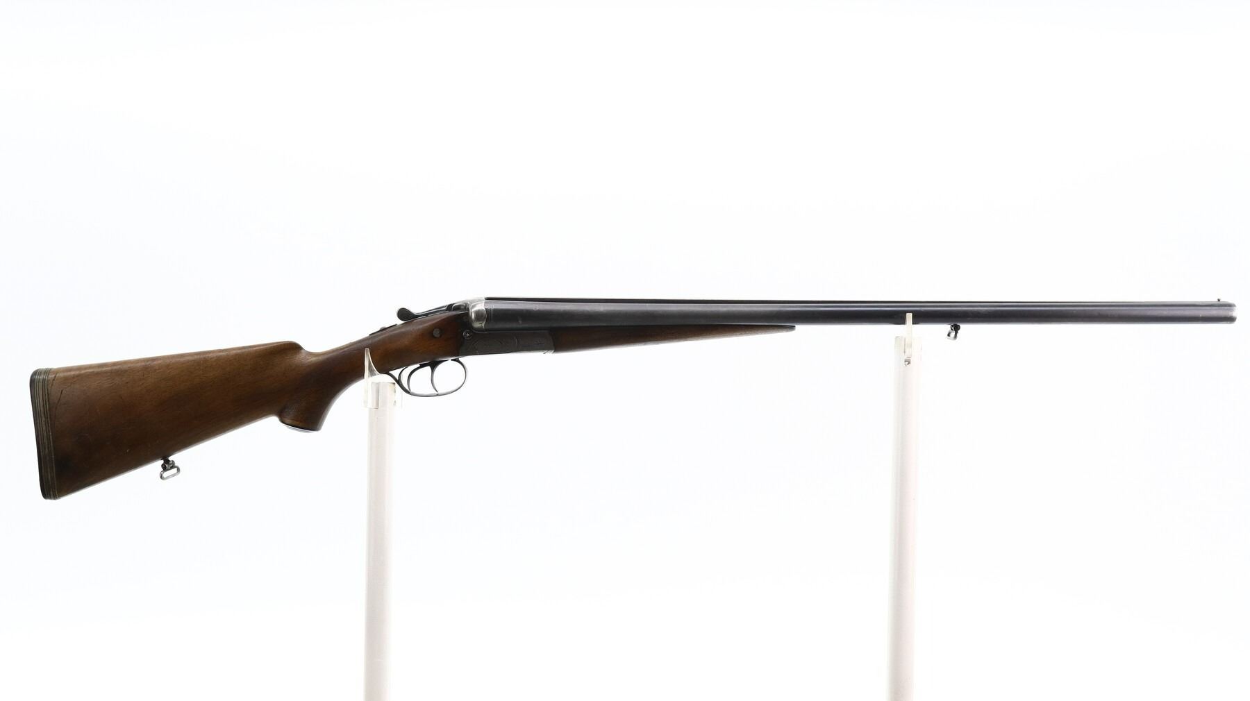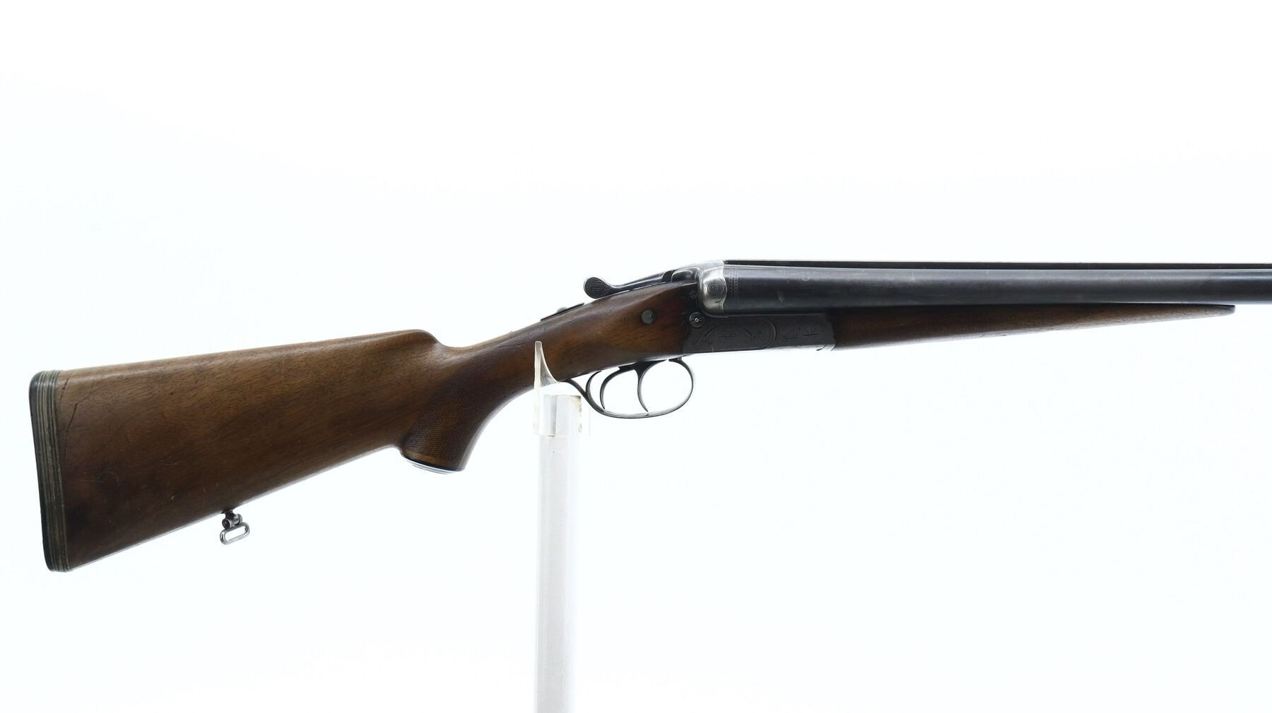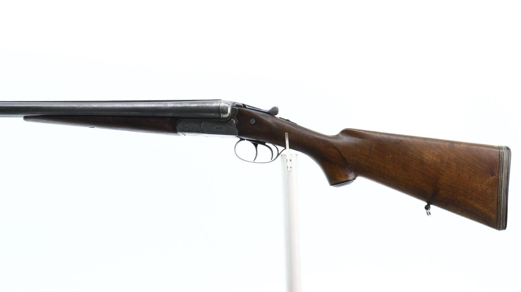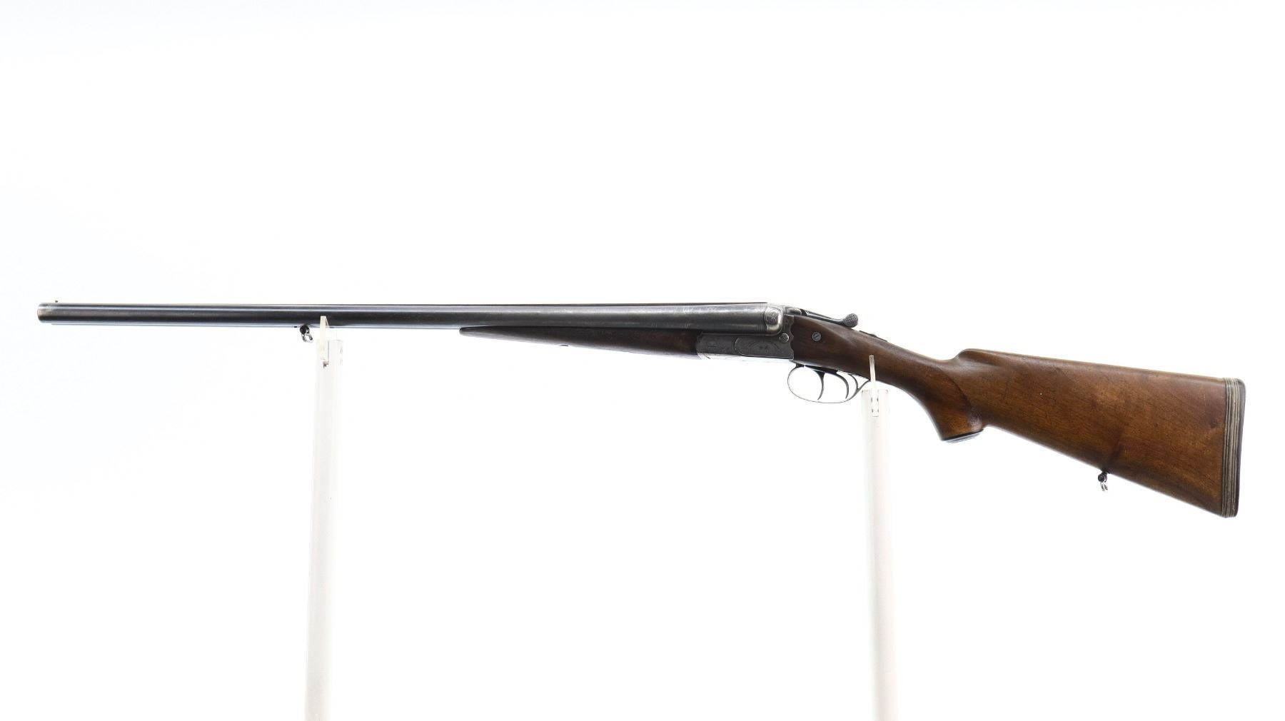 6/10, J.P SAUER & SOHN, MODEL: SIDE BY SIDE, CALIBER:12 G X 2 3/4", BORES ARE GOOD. FIXED FULL CHOKES. BRASS BEAD, BLUED BARRELS WITH RAISED RIB, LIGHTLY ENGRAVED RECEIVER, AUTOMATIC SAFETY, EXTRACTOR, COCKING INDICATORS, DOUBLE TRIGGERS. TWO PIECE WOOD STOCKS, CHECKERED FOREARM AND PISTOL GRIP (SMALL CRACKS BEHIND RECEIVER WITH REINFORCING SCREW INSTALLED), GROOVED BLACK POLYMER BUTT PLATE WITH SPACERS, GRIP CAP, SLING SWIVELS. METAL FINISH SHOWS SCRATCHES, HANDLING MARKS AND WEAR. STOCKS SHOW SOME MARKS, SCRATCHES AND WEAR. , ACTION: HINGED SIDE BY SIDE SHOTGUN, BARREL LENGTH: 27.5", SERIAL # 437511, CONDITION: 6/10, CLASS: CANADIAN NON RESTRICTED