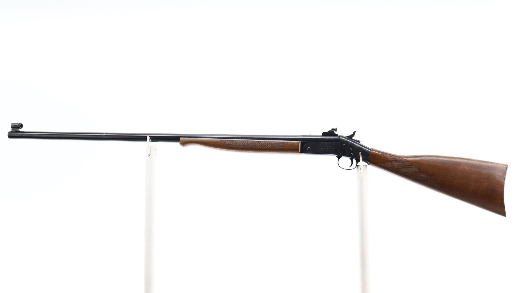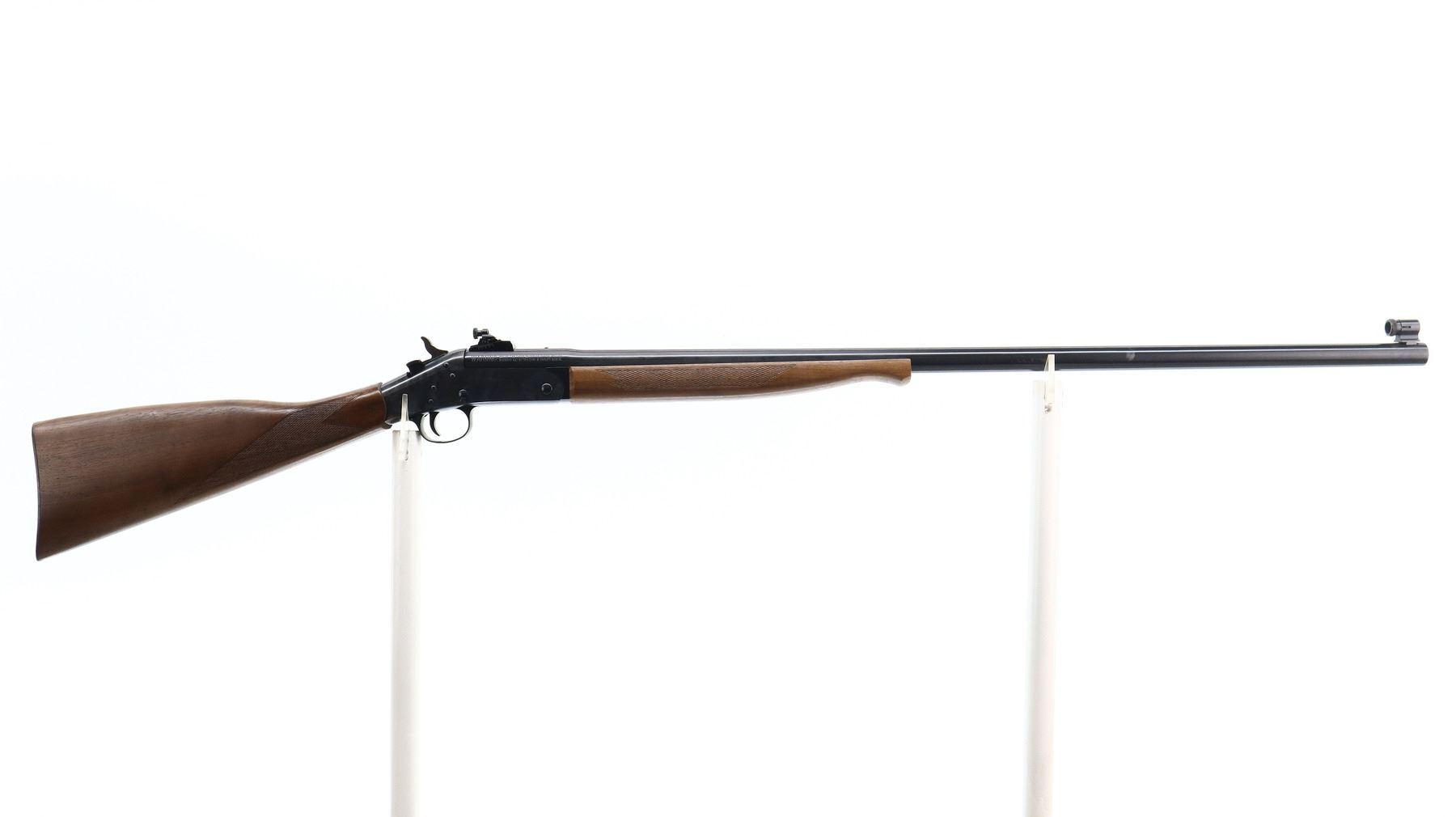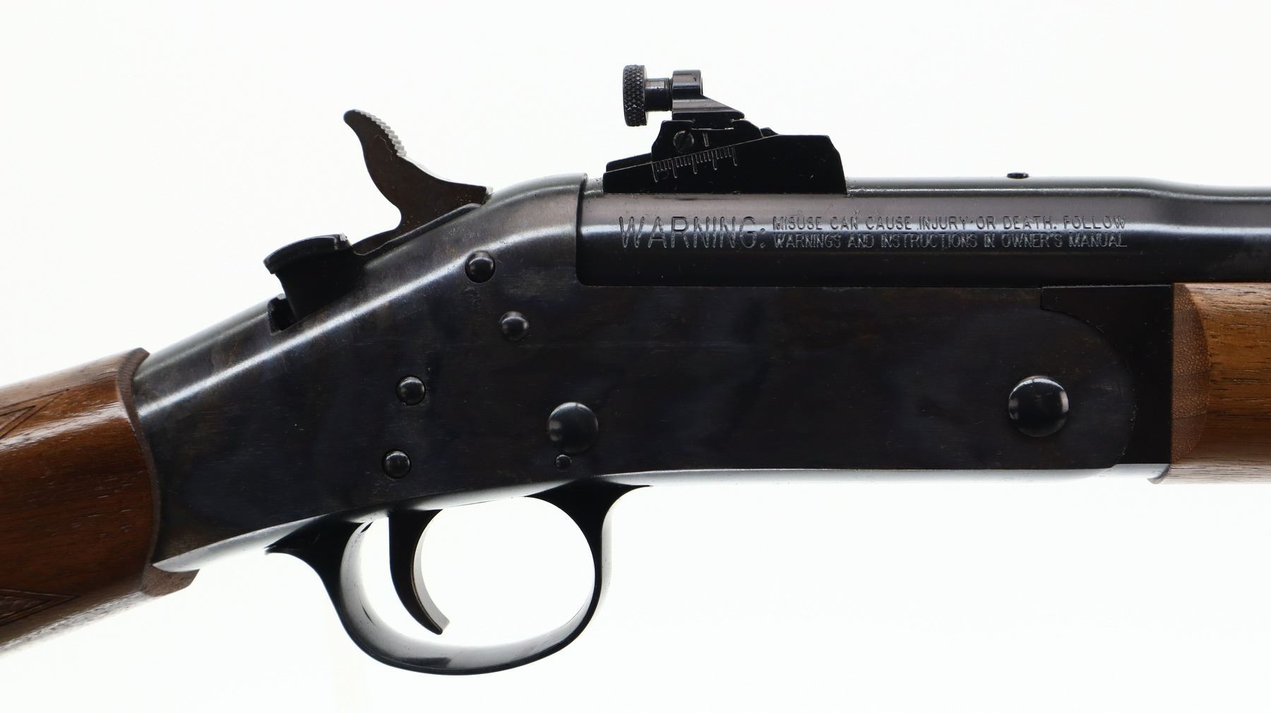8+/10, HARRINGTON & RICHARDSON, MODEL: BUFFALO CLASSIC 1871, CALIBER:45-70 GOVT, BORE EXCELLENT. GLOBE FRONT SIGHT WITH INSERT, ADJUSTABLE REAR WILLIAMS PEEP SIGHT, BLUED STEEL BARREL, COLOUR CASE HARDENED RECEIVER, SMOOTH BARREL OPENING LEVER, GROOVED HAMMER, EXTRACTOR. TWO PIECE SMOOTH WOOD STOCKS, CHECKERED FOREARM AND STRAIGHT GRIP, SMOOTH CURVED STEEL BUTT PLATE. METAL FINISH SHOWS SOME SCRATCHES AND HANDLING MARKS. STOCKS SHOW SOME SLIGHT MARKS AND SCRATCHES. , ACTION: HINGED SINGLE SHOT RIFLE, BARREL LENGTH: 32", SERIAL # CBA478590, CONDITION: 8+/10, CLASS: CANADIAN NON RESTRICTED