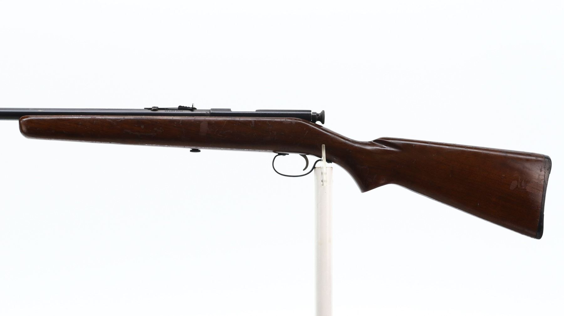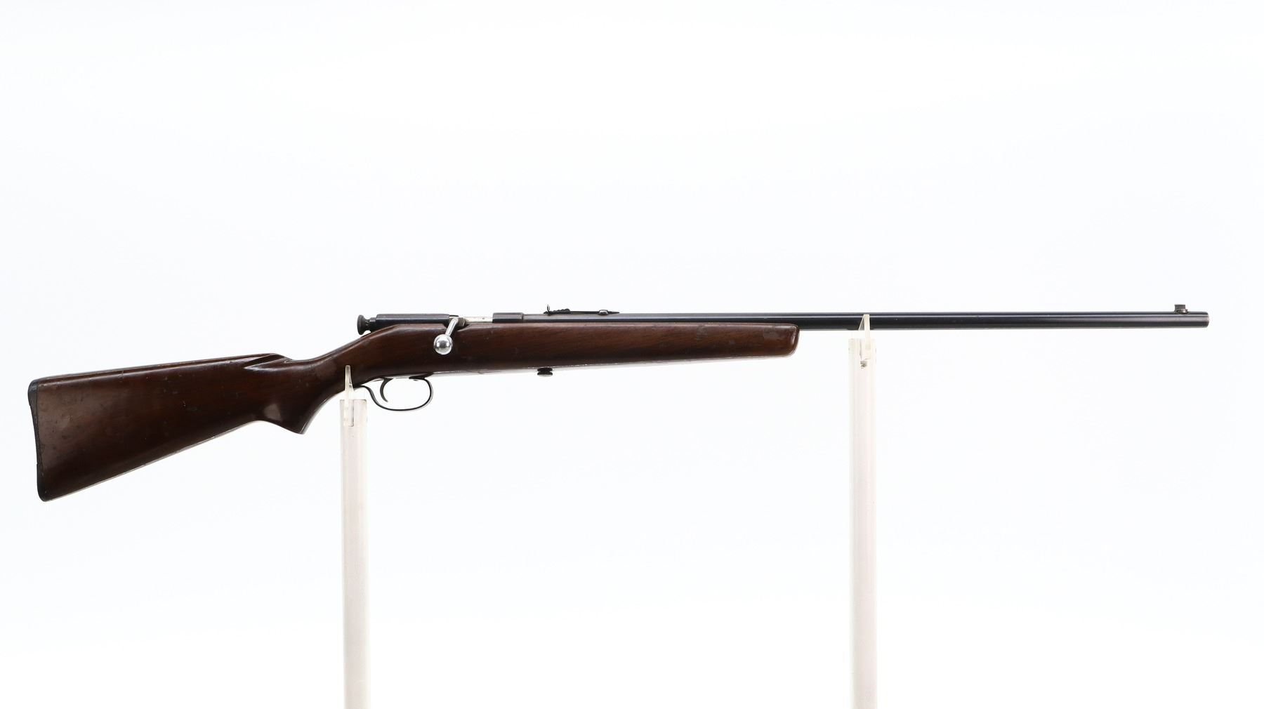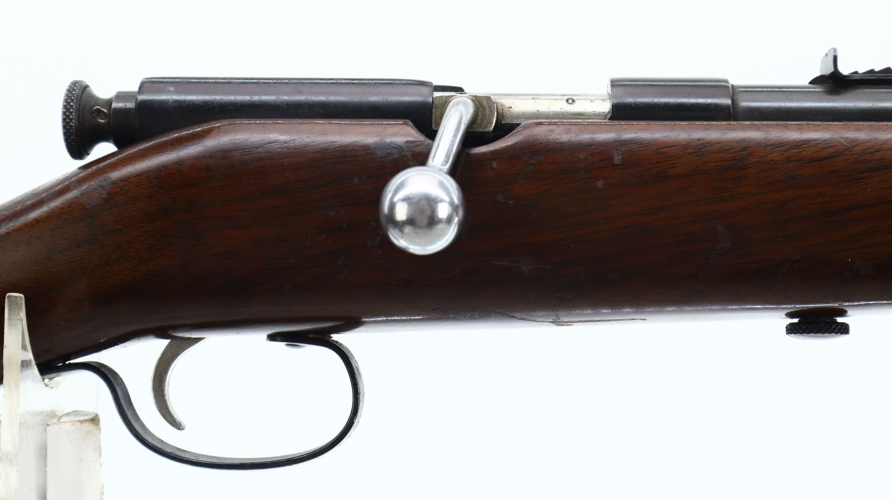 7/10, SAVAGE, MODEL: 3B, CALIBER:22 LR, BORE IS VERY GOOD. BLADE FRONT SIGHT, ADJUSTABLE U NOTCHED REAR SIGHT, BLUED FINISH, SILVER BOLT. ONE PIECE SMOOTH WOOD STOCK, PISTOL GRIP, GROOVED BLACK POLYMER BUTT PLATE. METAL FINISH SHOWS SCRATCHES, HANDLING MARKS AND WEAR. STOCK SHOWS MARKS, SCRATCHES AND WEAR. , ACTION: BOLT ACTION RIFLE, BARREL LENGTH: 26", SERIAL # NA, CONDITION: 7/10, CLASS: CANADIAN NON RESTRICTED
