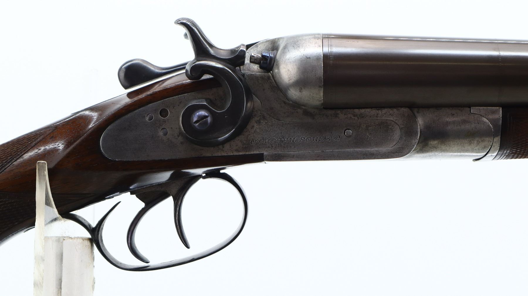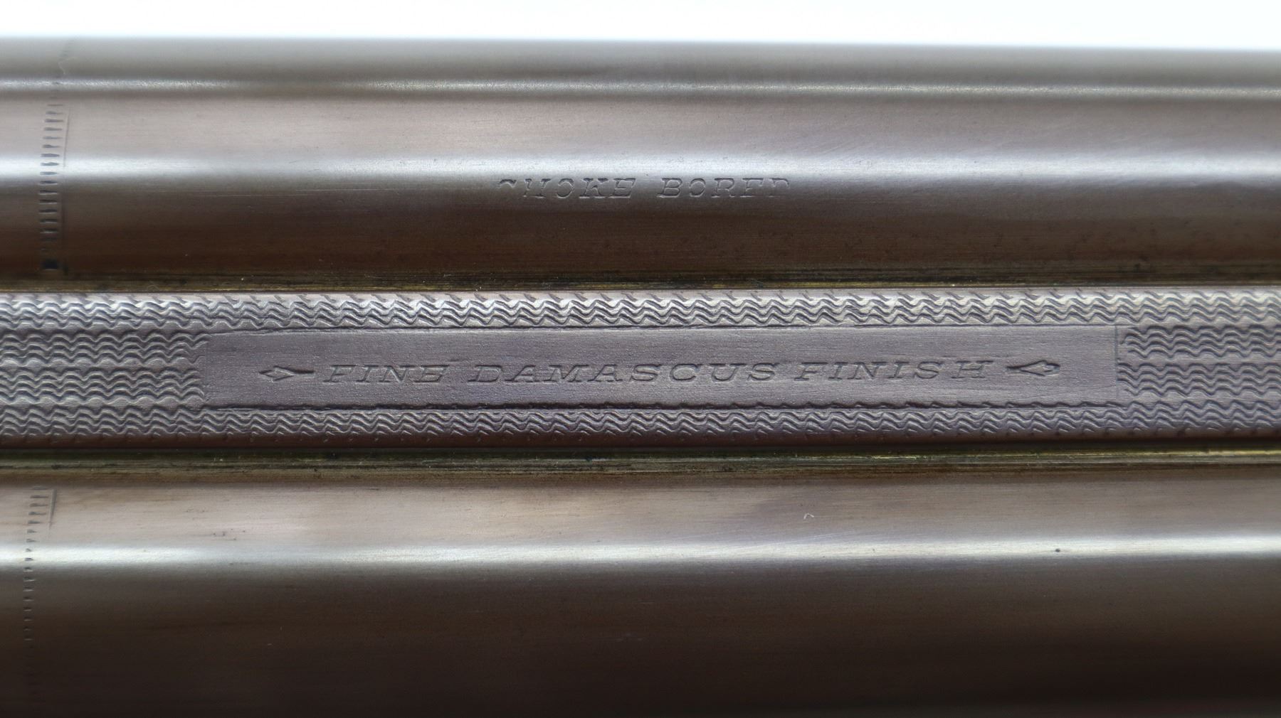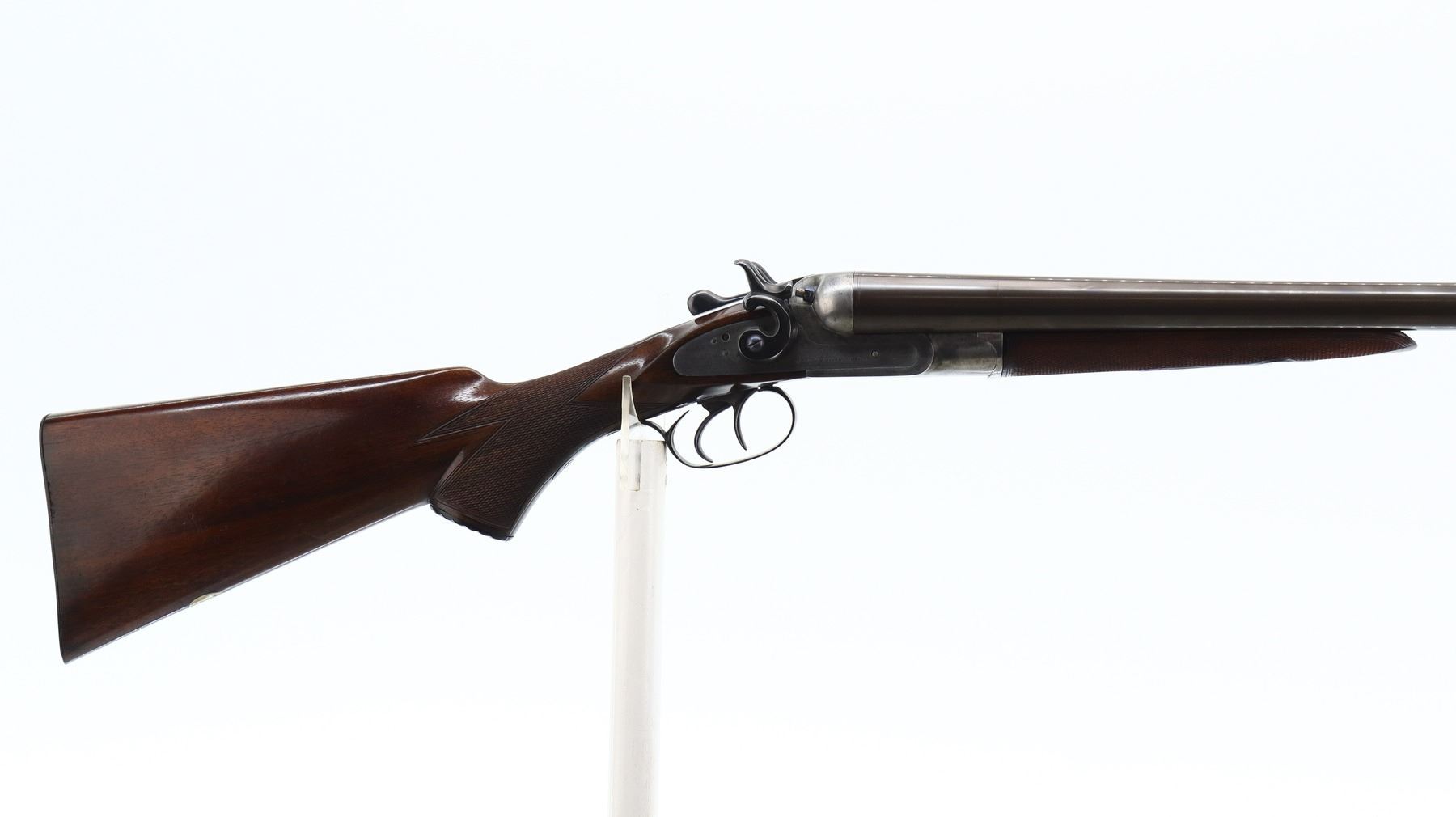 7/10, JANSSEN SONS & CO, MODEL: SIDE BY SIDE HAMMERGUN, CALIBER:10 G X 2 5/8", BORES ARE VERY GOOD. BRASS BEAD, BROWNED DAMASCUS BARRELS, SIDE PLATES WITH EXTERNAL HAMMERS, EXTRACTOR, DOUBLE TRIGGERS. TWO PIECE WOOD STOCKS, CHECKERED FOREARM AND PISTOL GRIP, GROOVED BLACK POLYMER BUTT PLATE, GRIP CAP, VANITY PLATE. METAL FINISH SHOWS SOME SCRATCHES, HANDLING MARKS AND WEAR. STOCKS SHOW SOME MARKS AND SCRATCHES. , ACTION: HINGED SIDE BY SIDE SHOTGUN, BARREL LENGTH: 32", SERIAL # 7863, CONDITION: 7/10, CLASS: CANADIAN NON RESTRICTED