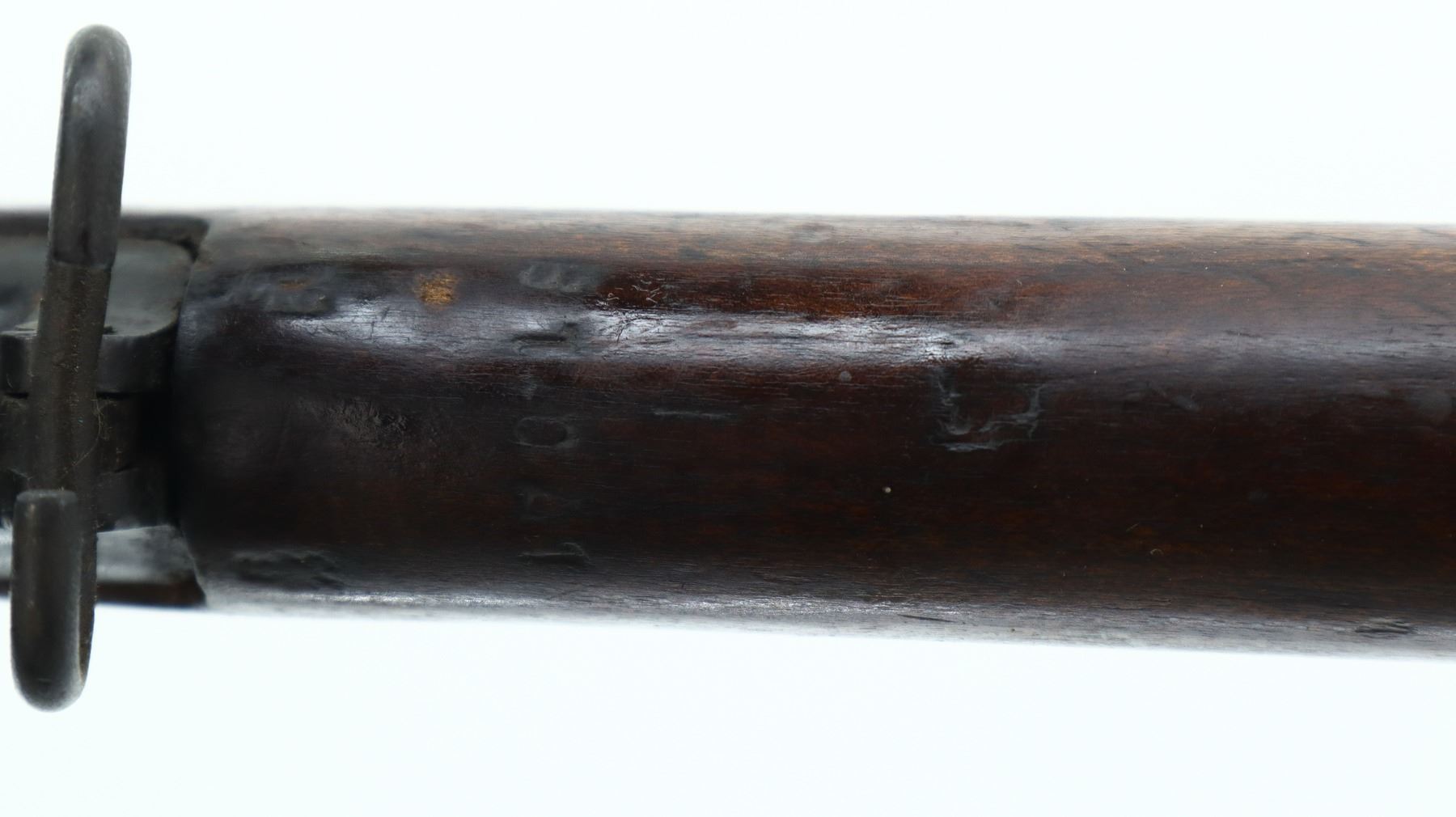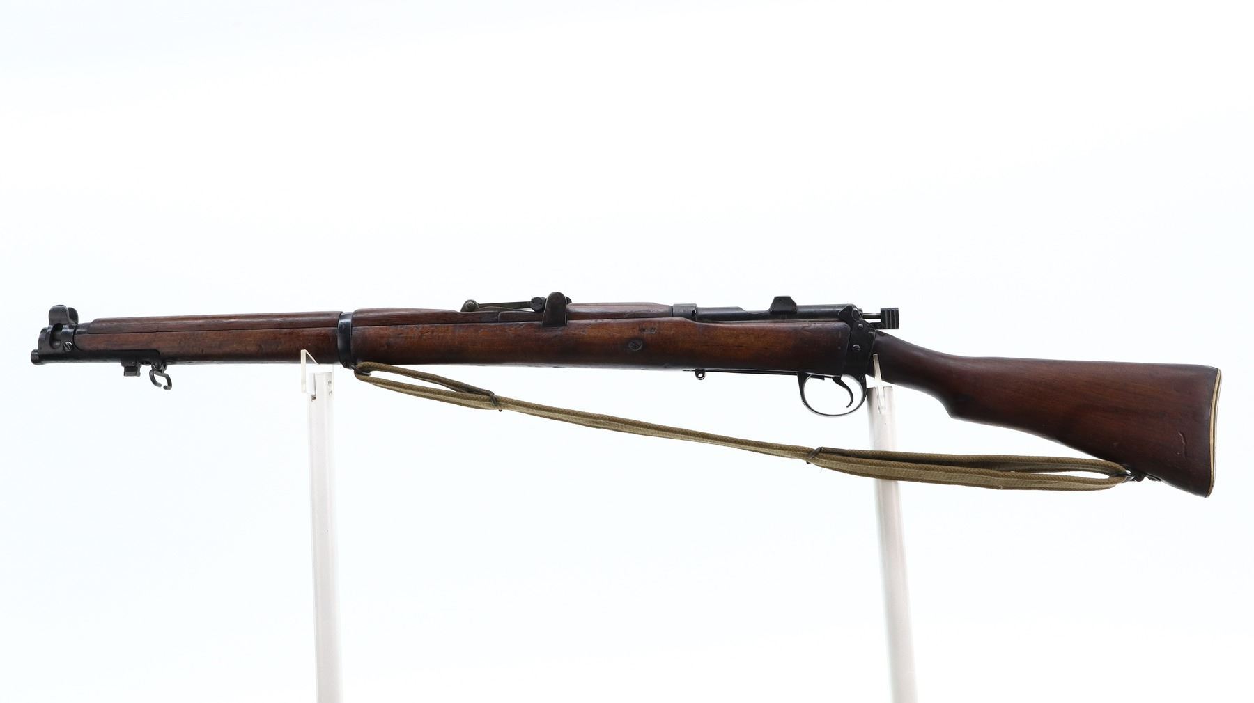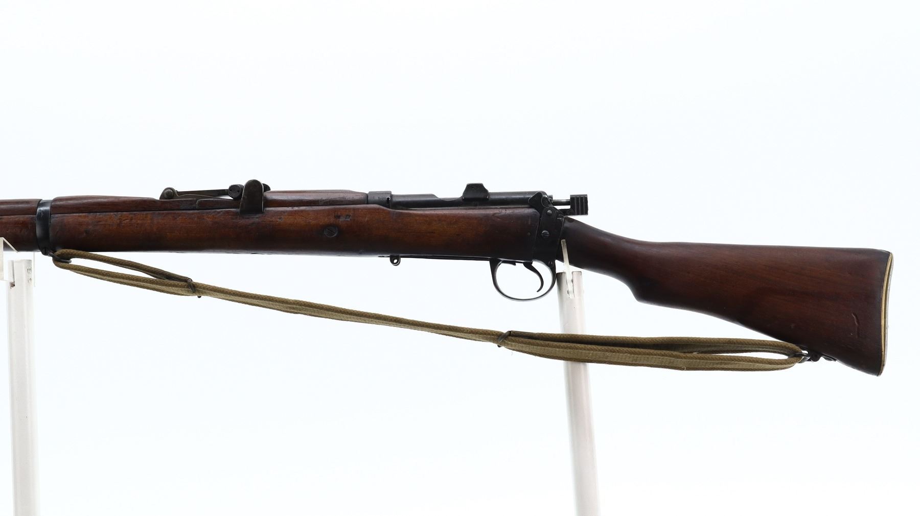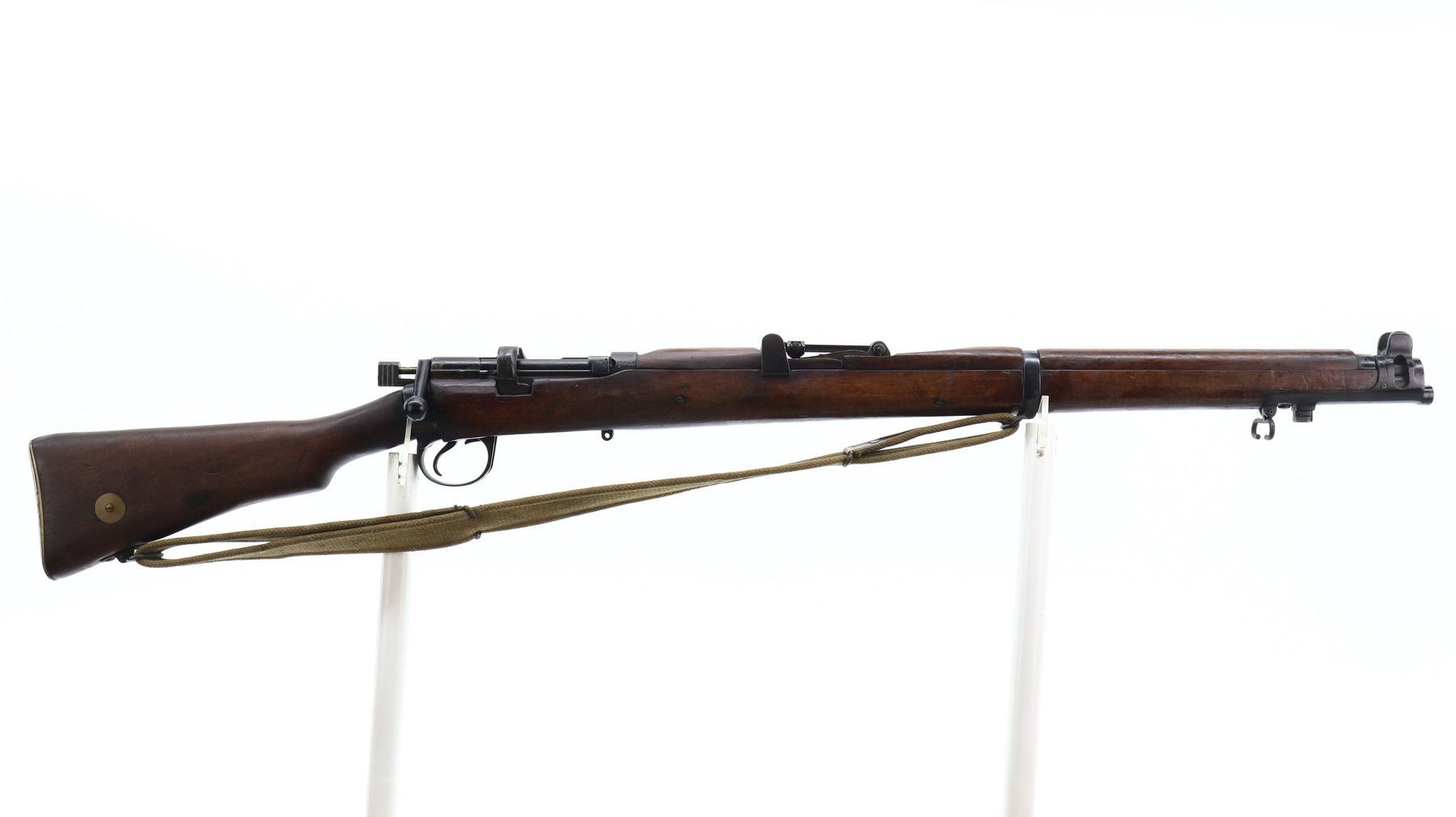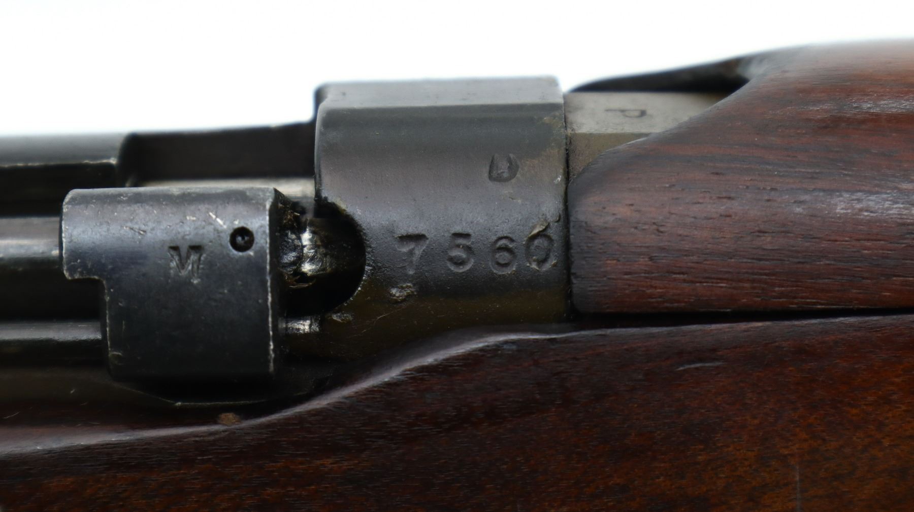 7/10, LEE ENFIELD, MODEL: NO 1 MKIII*, CALIBER:303 BR, DOES NOT COME WITH MAGAZINE, BORE IS FAIR, WORN, LIGHT PITTING. MANUFACTURED BY LITHGOW 1942, NUMBERS MISMATCHED. BLADE FRONT SIGHT WITH EARS AND RAMP, ADJUSTABLE U NOTCHED REAR SIGHT WITH EARS. FOUR PIECE FULL MILITARY WOOD STOCKS, FOREARM HAS THE ISHAPORE SCREW, PISTOL GRIP, SMOOTH BRASS BUTT PLATE WITH TRAP, BRASS STOCK DISK, SWIVELS WITH P37 CANVAS SLING, STACKING SWIVEL, BAYONET LUG. METAL FINISH SHOWS SOME SCRATCHES, HANDLING MARKS AND WEAR. STOCKS SHOW SOME MARKS, SCRATCHES AND WEAR. , ACTION: BOLT ACTION RIFLE, BARREL LENGTH: 25.25", SERIAL # D7560, CONDITION: 7/10, CLASS: CANADIAN NON RESTRICTED