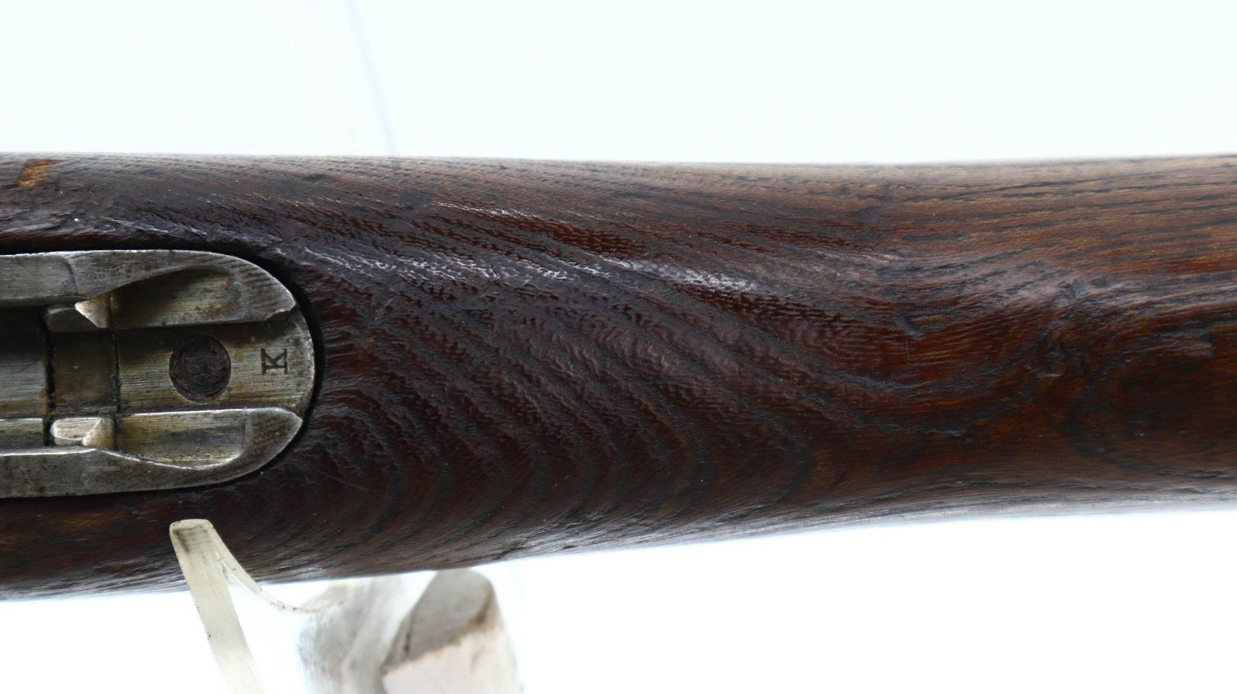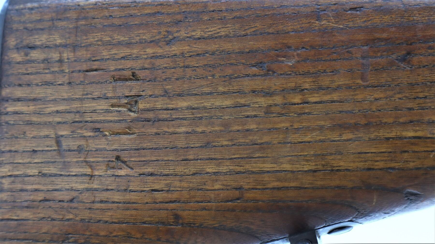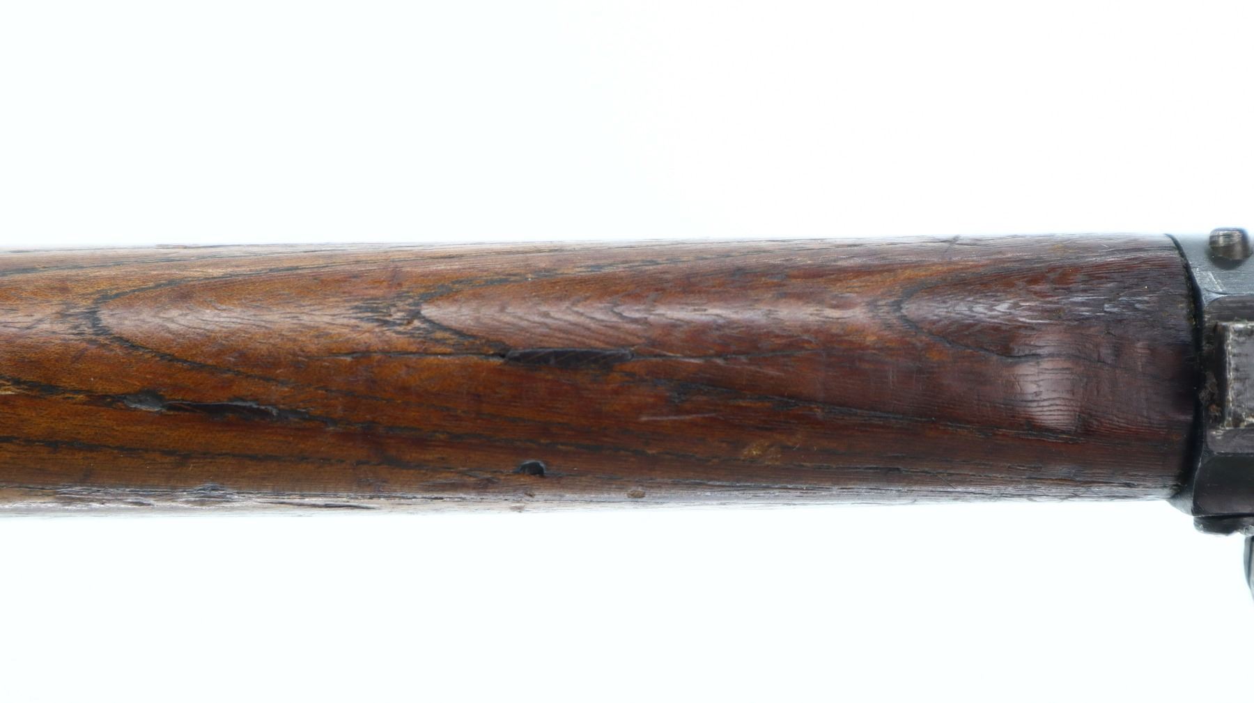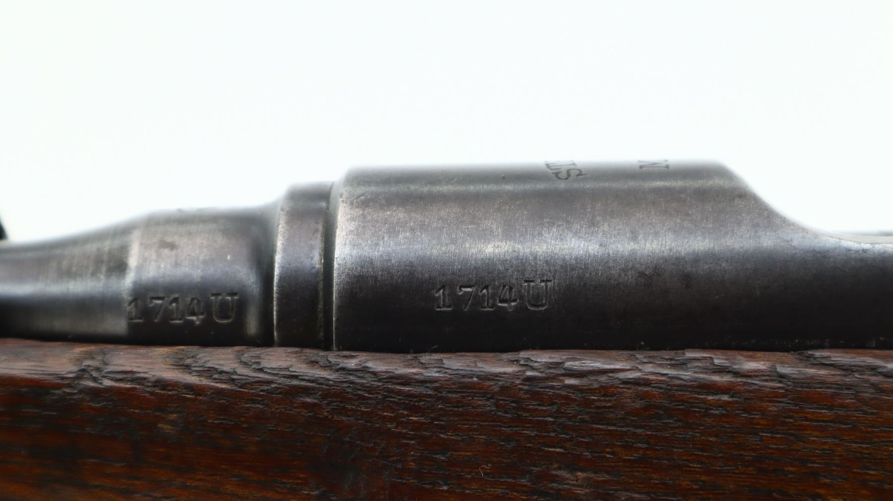 6+/10, STEYR, MODEL: M95, CALIBER:8 X 56R, COMES WITH BAYONET, BORE IS FAIR, WORN, PITTED. MANUFACTURED BY STEYR, ARSENAL REBUILT NUMBERED TO MATCH. BARLEY CORN FRONT SIGHT WITH RAMP, ADJUSTABLE U NOTCHED LADDER REAR SIGHT, STRAIGHT BOLT HANDLE. TWO PIECE FULL MILITARY WOOD STOCKS, FINGER GROOVED FOREND, PISTOL GRIP, SMOOTH STEEL BUTT PLATE, SLING SWIVELS WITH BROWN LEATHER MILITARY SLING, STACKING HOOK, BAYONET LUG. METAL FINISH TURNING SILVER GREY WITH LIGHT PITTING, SCRATCHES, HANDLING MARKS AND WEAR. STOCKS SHOW DINGS, SCRATCHES AND WEAR. , ACTION: STRAIGHT PULL RIFLE, BARREL LENGTH: 30", SERIAL # 1714U, CONDITION: 6+/10, CLASS: CANADIAN NON RESTRICTED