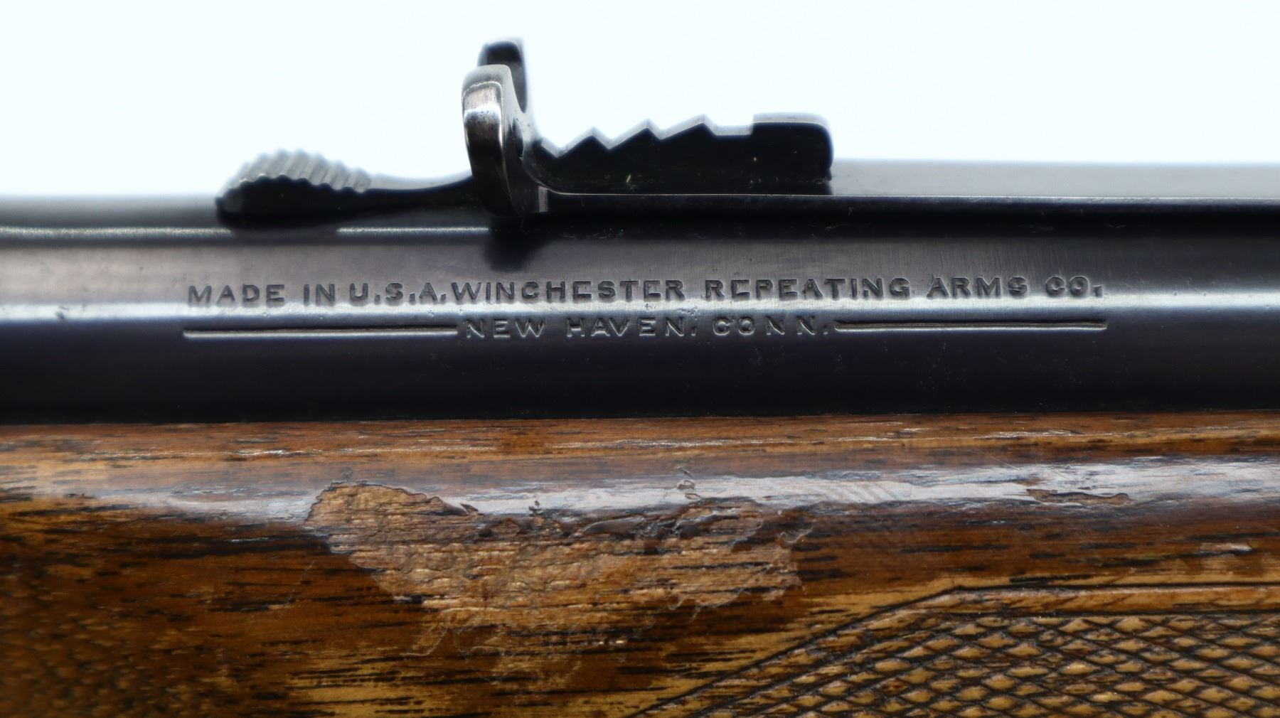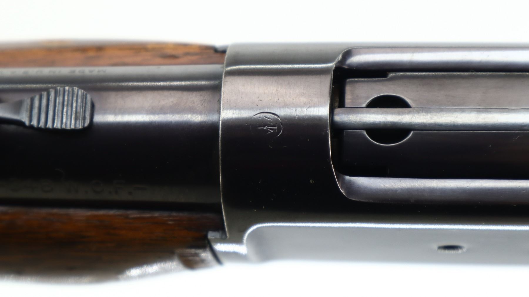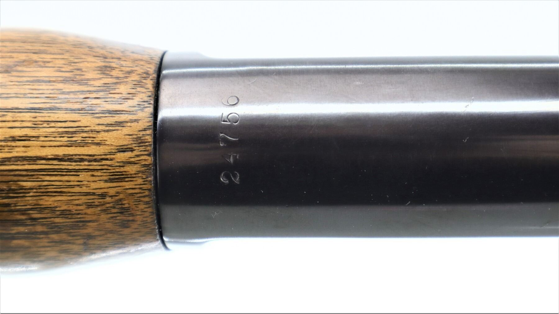 7/10, WINCHESTER, MODEL: MODEL 71, CALIBER:348 WCF, BORE IS VERY GOOD. MANUFACTURED 1947. BLADE FRONT SIGHT WITH HOOD AND RAMP, ADJUSTABLE U NOTCHED REAR SIGHT, METAL HAS BEEN POLISHED AND REBLUED, CHECKERED SPUR HAMMER. TWO PIECE WOOD STOCKS, CHECKERED FOREARM AND PISTOL GRIP, SMALL CRACK BEHIND RECEIVER, CHECKERED STEEL BUTT PLATE, GRIP CAP, SWIVEL STUDS, HALF LENGTH MAG TUBE. METAL FINISH SHOWS SOME SCRATCHES, HANDLING MARKS AND WEAR. STOCKS SHOW SOME MARKS, SCRATCHES AND WEAR. , ACTION: LEVER ACTION RIFLE, BARREL LENGTH: 24", SERIAL # 24756, CONDITION: 7/10, CLASS: CANADIAN NON RESTRICTED