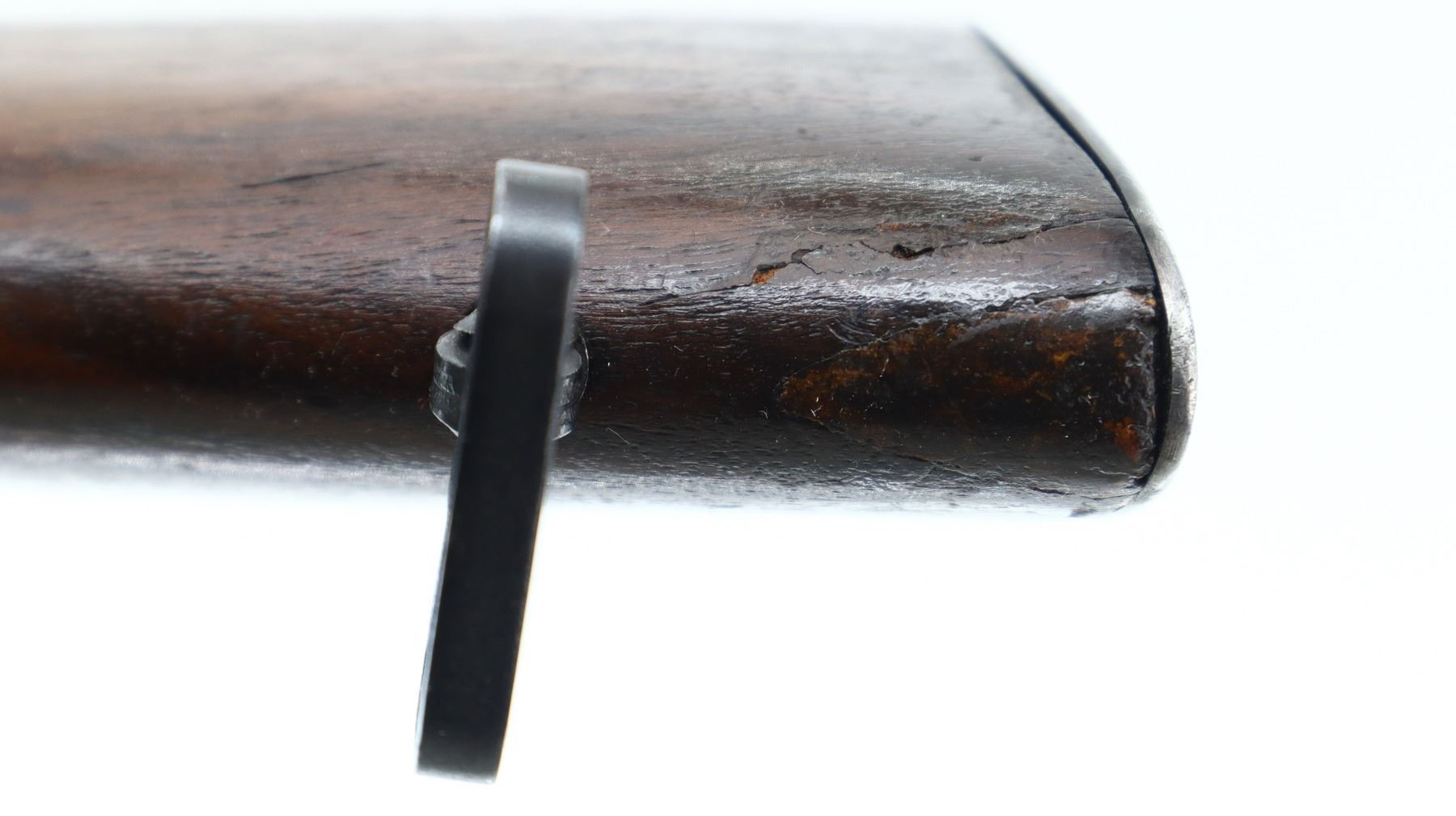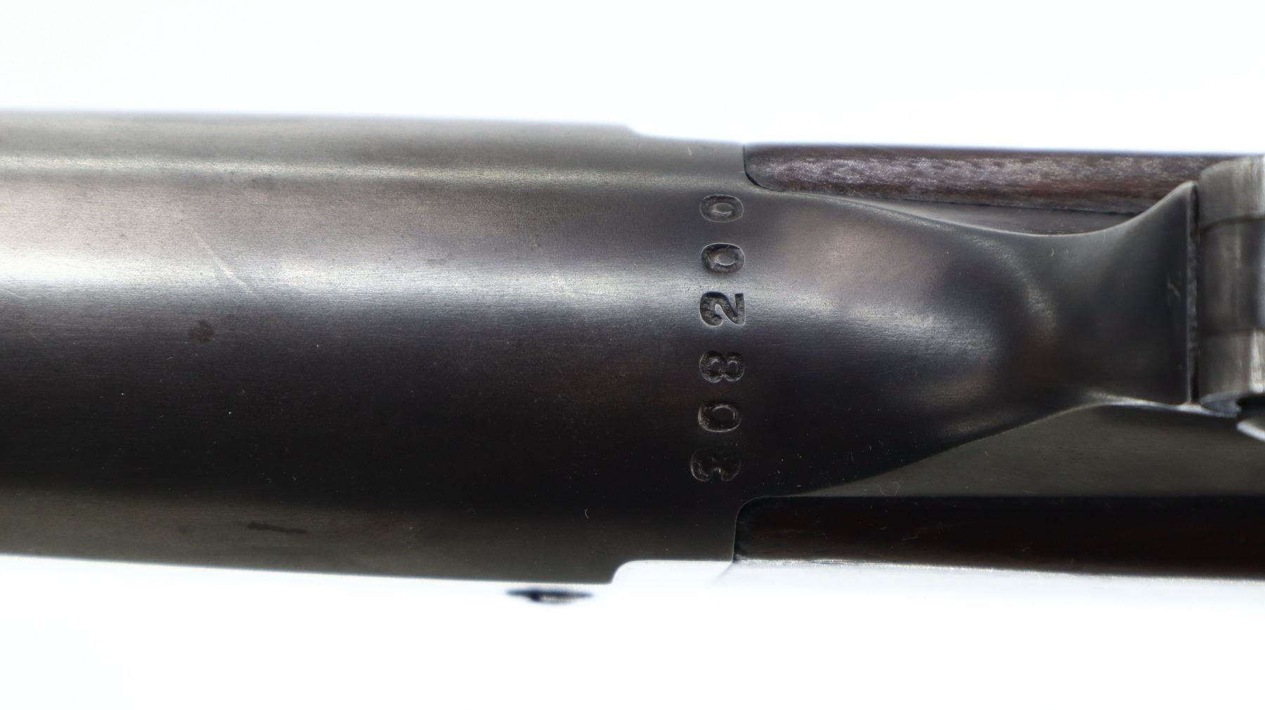 7/10, SAVAGE , MODEL: MODEL 99 G-DELUXE TD, CALIBER:250-3000 SAV, BORE IS GOOD, SLIGHT WEAR. MFD 1928. BLADE FRONT SIGHT WITH RAMP, REPLACED ADJUSTABLE U NOTCHED MARBLES REAR SIGHT, BLUED FINISH, COCKING INDICATOR, RECEIVER TANG DRILLED AND TAPPED FOR PEEP SIGHT. TWO PIECE WOOD STOCKS, SCHNABEL FOREND TIP, CHECKERED FOREARM AND PISTOL GRIP, (FOREARM CRACKED ON LEFT SIDE), GROOVED STEEL BUTT PLATE, GRIP CAP, STOCK CRACKED AT TOE, REAR SWIVEL FRONT MISSING. BARREL, FOREND AND BUTT STOCK MATCH BY SERIAL NUMBER. METAL FINISH SHOWS SOME SCRATCHES, HANDLING MARKS AND WEAR. STOCKS SHOW SOME MARKS, SCRATCHES AND WEAR. , ACTION: LEVER ACTION RIFLE, BARREL LENGTH: 22", SERIAL # 308200, CONDITION: 7/10, CLASS: CANADIAN NON RESTRICTED