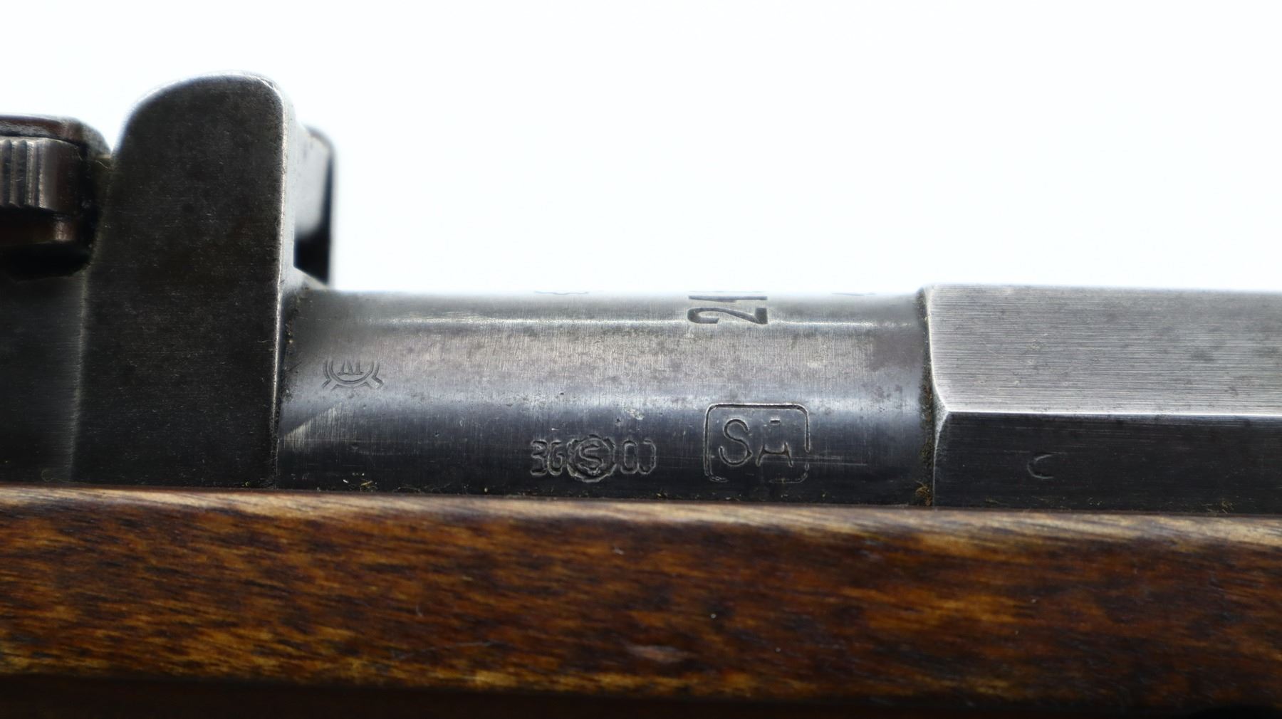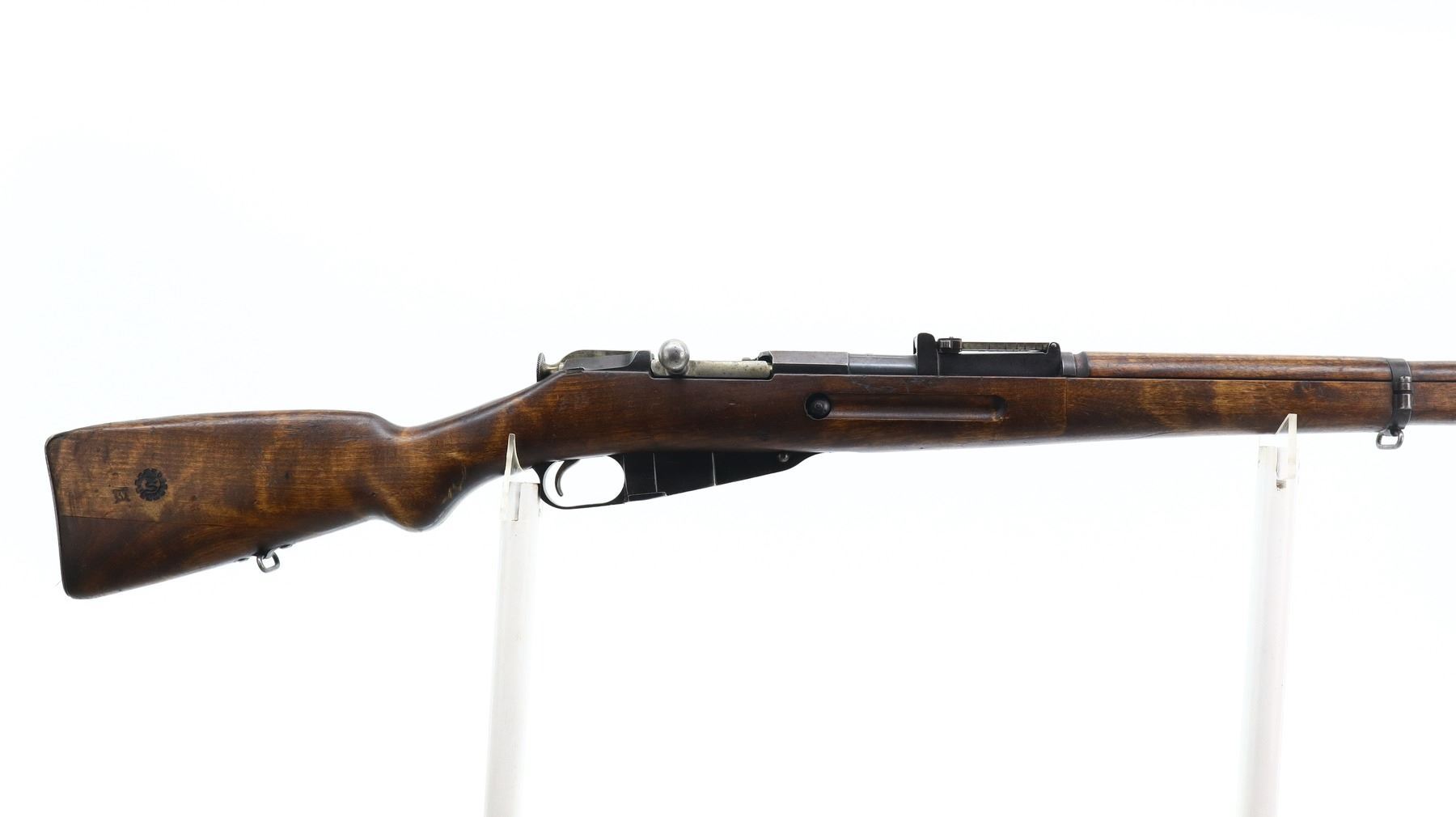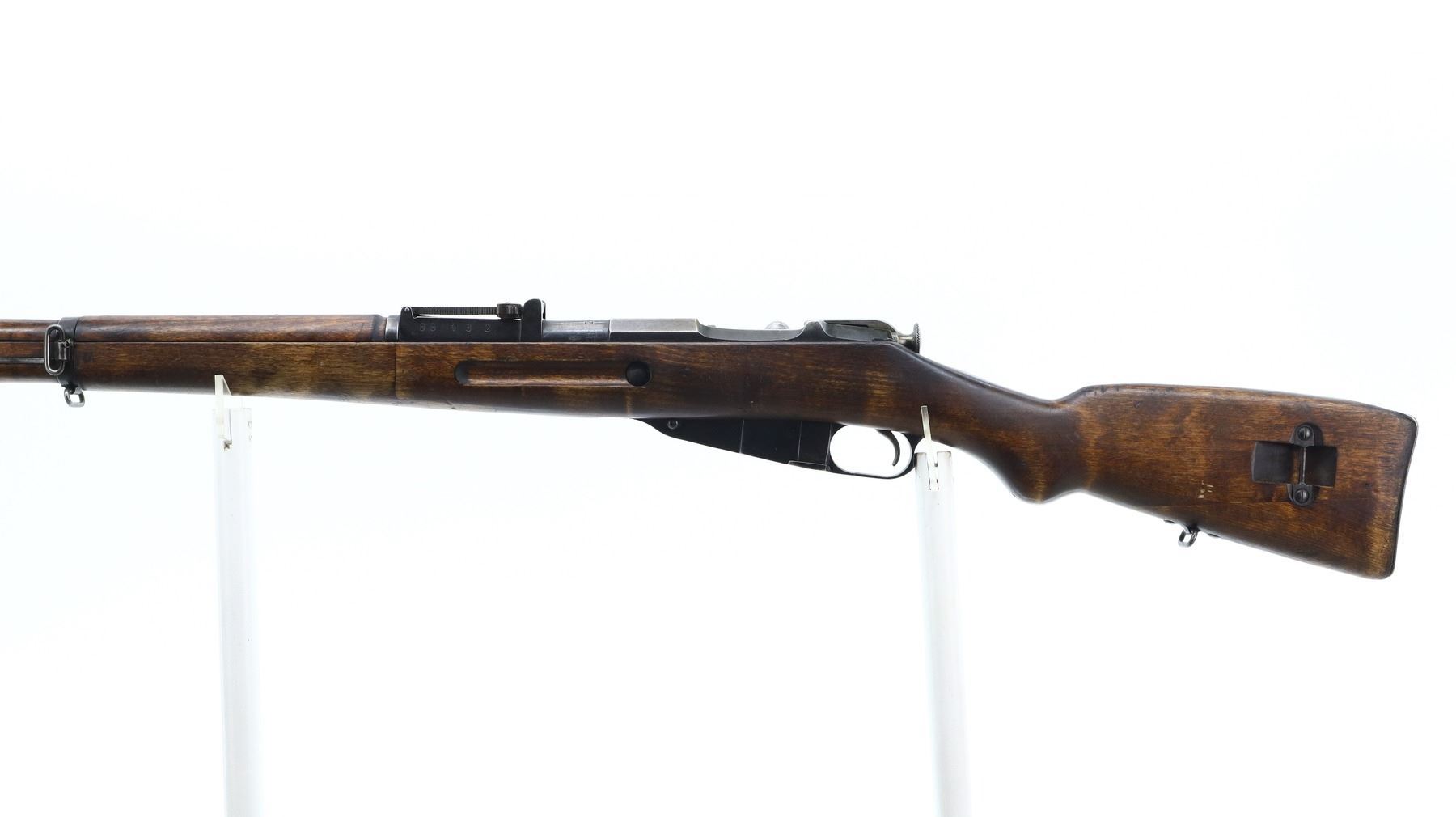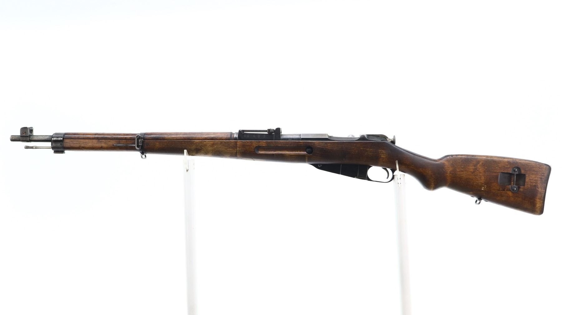 6+/10, FINNISH MOSIN NAGANT, MODEL: M39, CALIBER:7.62 X 54R, BORE IS FAIR, WORN, LIGHT PITTING. REBUILT BY SAKO 1941, ARSENAL REBUILT NUMBERED TO MATCH. BLADE FRONT SIGHT WITH EARS, U NOTCHED REAR SIGHT WITH EARS, HEX RECEIVER, SILVER BOLT WITH STRAIGHT HANDLE. TWO PIECE FULL MILITARY WOOD STOCKS, FINGER GROOVED FOREND, PISTOL GRIP, SMOOTH STEEL BUTT PLATE, FOUR SLING SWIVELS, CLEANING ROD, BAYONET LUG. METAL FINISH SHOWS SOME SCRATCHES, HANDLING MARKS AND WEAR. STOCKS SHOW SOME MARKS, SCRATCHES AND WEAR. , ACTION: BOLT ACTION RIFLE, BARREL LENGTH: 26.5", SERIAL # 216144, CONDITION: 6+/10, CLASS: CANADIAN NON RESTRICTED