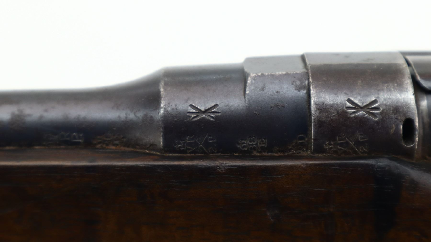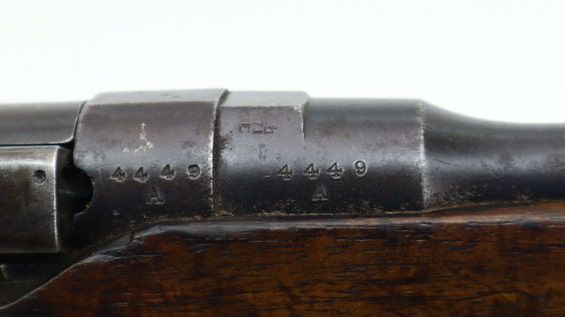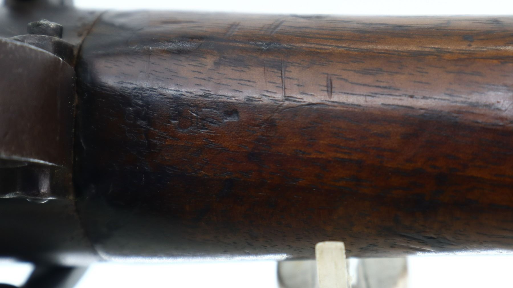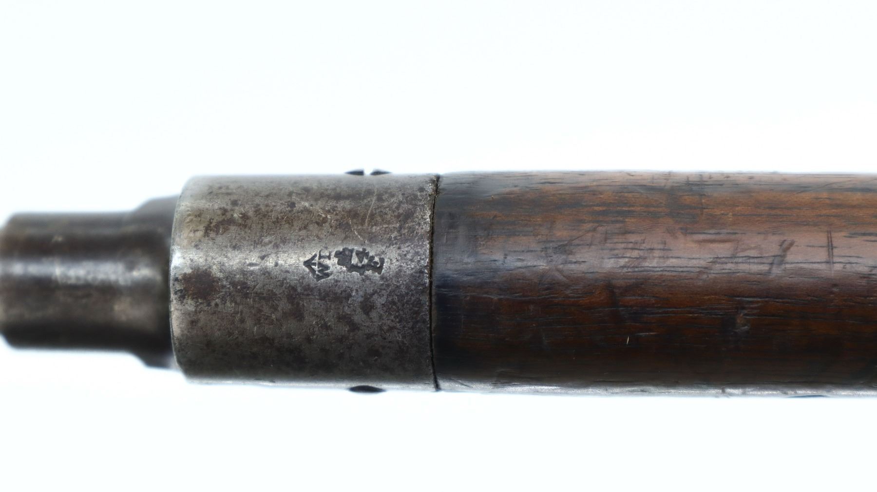 6+/10, CANADIAN LEE METFORD, MODEL: MKI CARBINE, CALIBER:303 BR, COMES WITH MAGAZINE, BORE IS POOR, WORN, PITTED. MANUFACTURED BY ENFIELD 1895, BOLT UNNUMBERED. BLADE FRONT SIGHT WITH RAMP AND EARS, ADJUSTABLE U NOTCHED REAR SIGHT, BARREL AND RECEIVER HAVE DOUBLE BROAD ARROWS INDICATING SOLD FROM STORES, DUST COVER, MAGAZINE CUT OFF, TURNED DOWN HANDLE WITH FLAT KNOB, SAFETY ON COCKING PIECE. LEFT SIDE OF BUTT SOCKET RETAINS ORIGINAL "D" RING. THREE PIECE FULL MILITARY WOOD STOCKS, PISTOL GRIP, SMOOTH BRASS BUTT PLATE WITH TRAP, BLANK BRASS STOCK DISK, RIGHT SIDE OF STOCK HAS ENFIELD ROUNDEL SOLD FROM STORES MARKS M&D INDICATING CANADIAN MILITIA AND DEFENCE, 1895 143. REAR SLING SWIVEL ONLY, CORRECT CARBINE MAGAZINE WITH RETAINING LINK. METAL FINISH SHOWS SOME PITTING, SCRATCHES, HANDLING MARKS AND WEAR. STOCKS SHOW SOME MARKS, SCRATCHES AND WEAR. , ACTION: BOLT ACTION RIFLE, BARREL LENGTH: 21", SERIAL # 4449A, CONDITION: 6+/10, CLASS: CANADIAN NON RESTRICTED