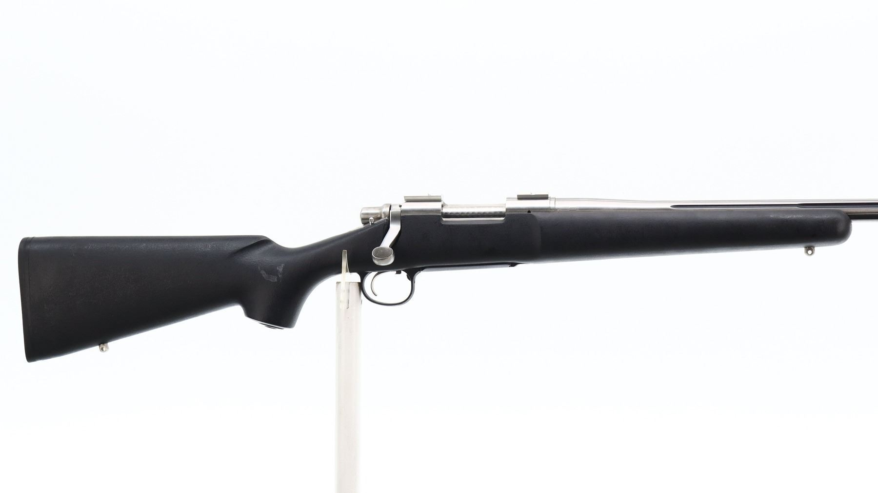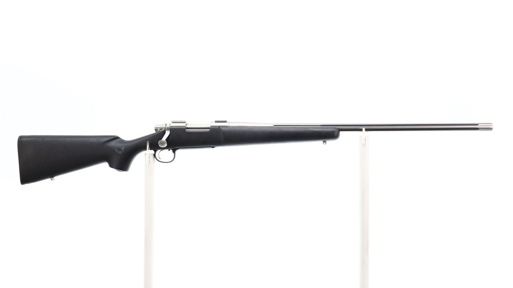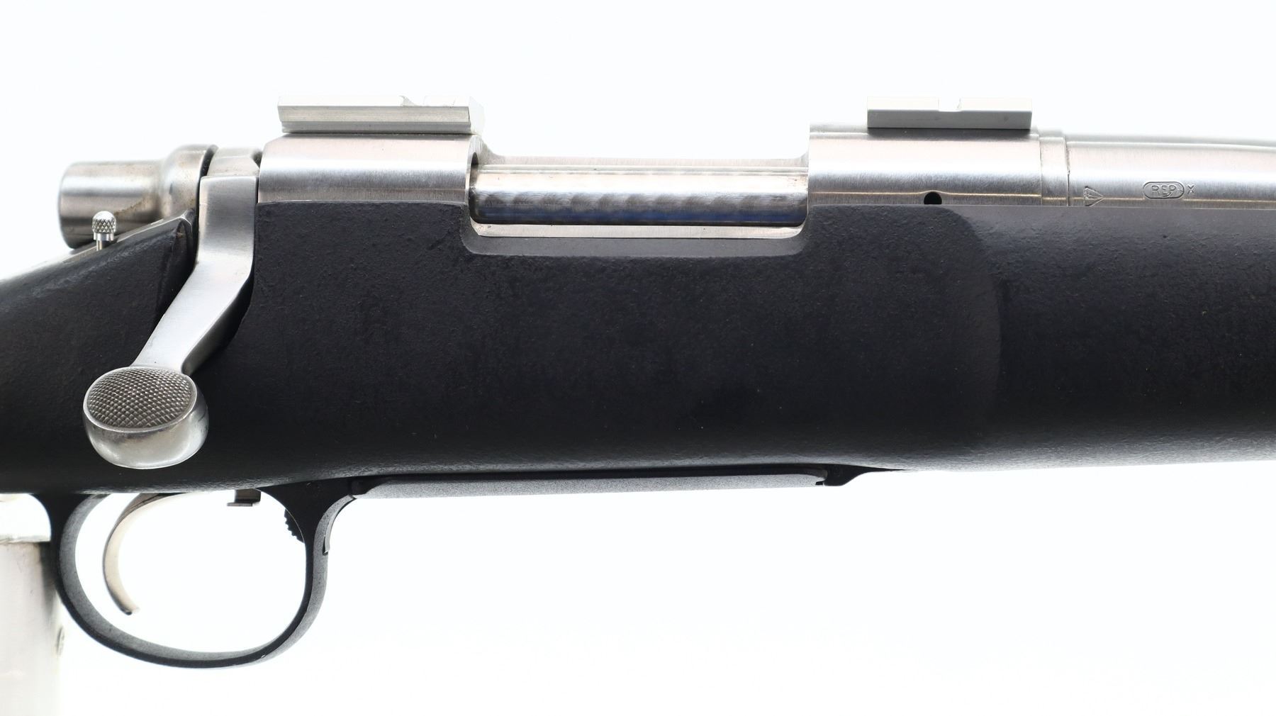 7/10, REMINGTON, MODEL: 700 ETRONX, CALIBER:243 WIN, BORE IS EXCELLENT. NO SIGHTS, STAINLESS HEAVY BARREL WITH BLACK FLUTES, RECEIVER DRILLED AND TAPPED WITH TWO PIECE SCOPE BASES INSTALLED, JEWELLED BOLT, ELECTRONIC TRIGGER. ONE PIECE TEXTURED BLACK FIBER GLASS STOCK, TARGET FOREND, PISTOL GRIP, BLACK RUBBER RECOIL PAD, HINGED FLOOR PLATE, SWIVEL STUDS. PISTOL GRIP HAS SAFETY MECHANISM NO KEY INCLUDED. METAL FINISH SHOWS SOME SCRATCHES, HANDLING MARKS AND WEAR. STOCK SHOWS SOME MARKS, SCRATCHES AND WEAR. , ACTION: BOLT ACTION RIFLE, BARREL LENGTH: 26", SERIAL # EG000412, CONDITION: 7/10, CLASS: CANADIAN NON RESTRICTED