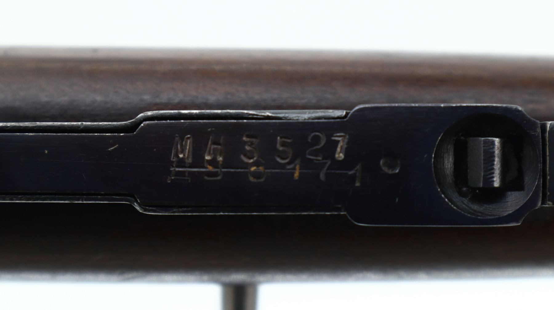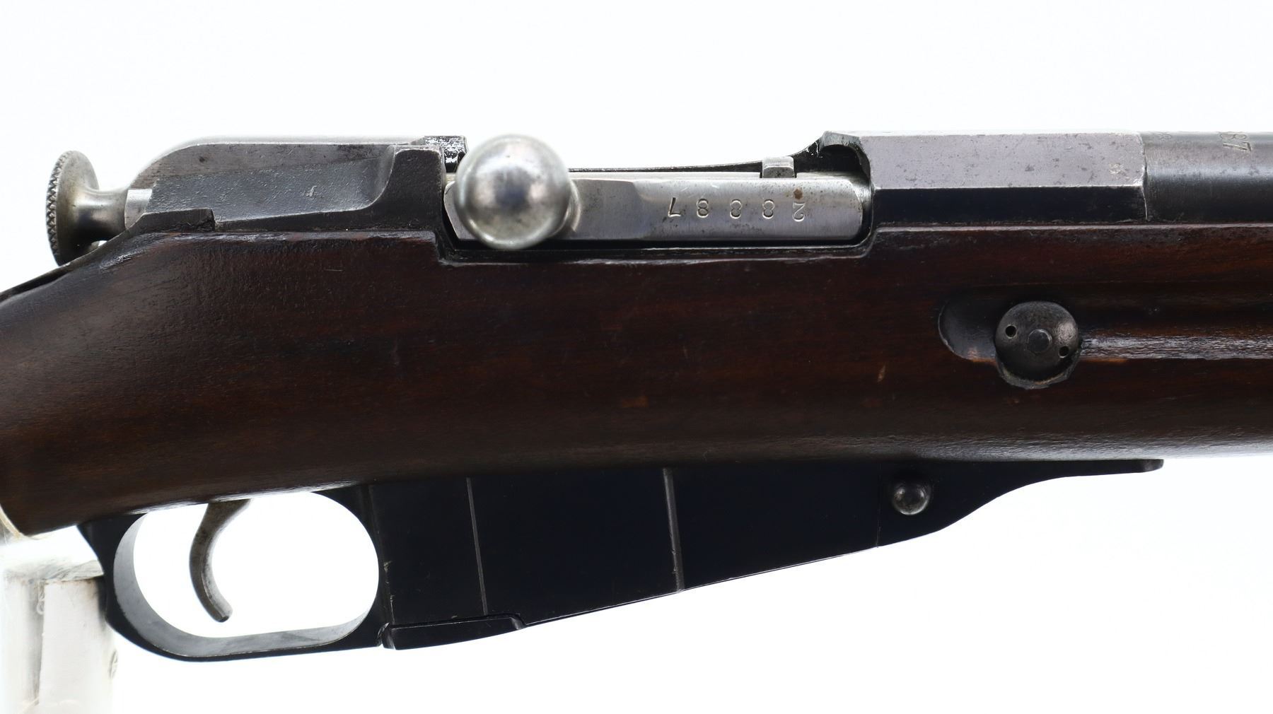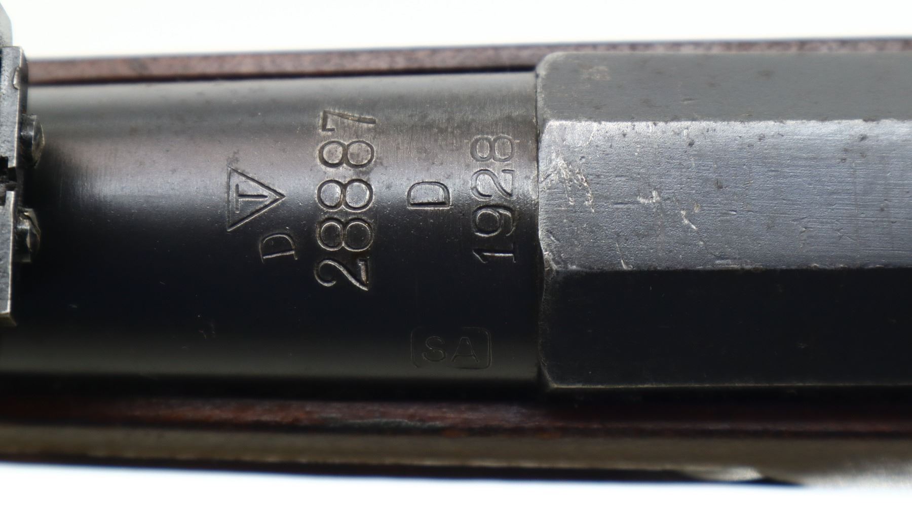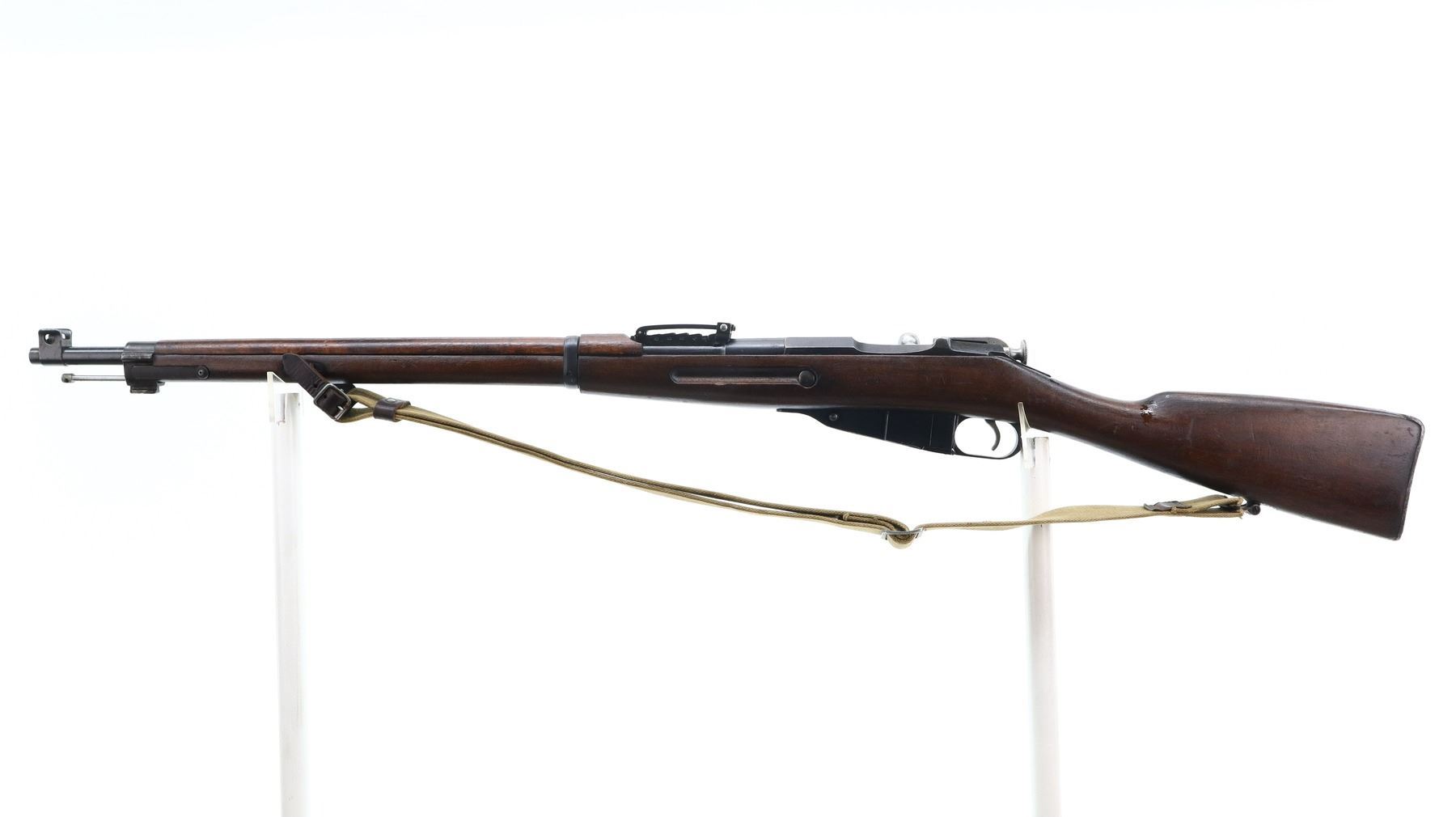 7+/10, FINNISH MOSIN NAGANT, MODEL: 27, CALIBER:7.62 X 54R, BORE IS GOOD, SHINY. FINNISH REBUILD, BOLT MATCHES, MAGAZINE DOES NOT. BLADE FRONT SIGHT WITH RAMP AND EARS, ADJUSTABLE U NOTCHED REAR SIGHT, BLUED FINISH, BARREL MANUFACTURED BY TIKKA 1928 "D", SILVER BOLT WITH STRAIGHT HANDLE. TWO PIECE FULL MILITARY WOOD STOCKS, FINGER GROOVED FOREND, STRAIGHT GRIP, SMOOTH STEEL BUTT PLATE, REAR SLING SLOT FILLED IN HAS STANDARD REAR SWIVEL, FRONT SLOT WITH CANVAS MILITARY SLING, CLEANING ROD, BAYONET LUG. METAL FINISH SHOWS SOME SCRATCHES, HANDLING MARKS AND WEAR. STOCKS SHOW SOME MARKS, SCRATCHES AND WEAR. , ACTION: BOLT ACTION RIFLE, BARREL LENGTH: 27", SERIAL # 28887, CONDITION: 7+/10, CLASS: CANADIAN NON RESTRICTED