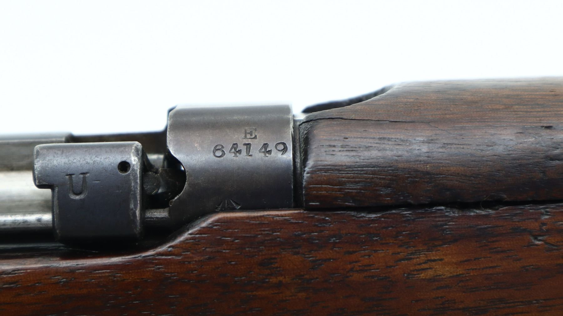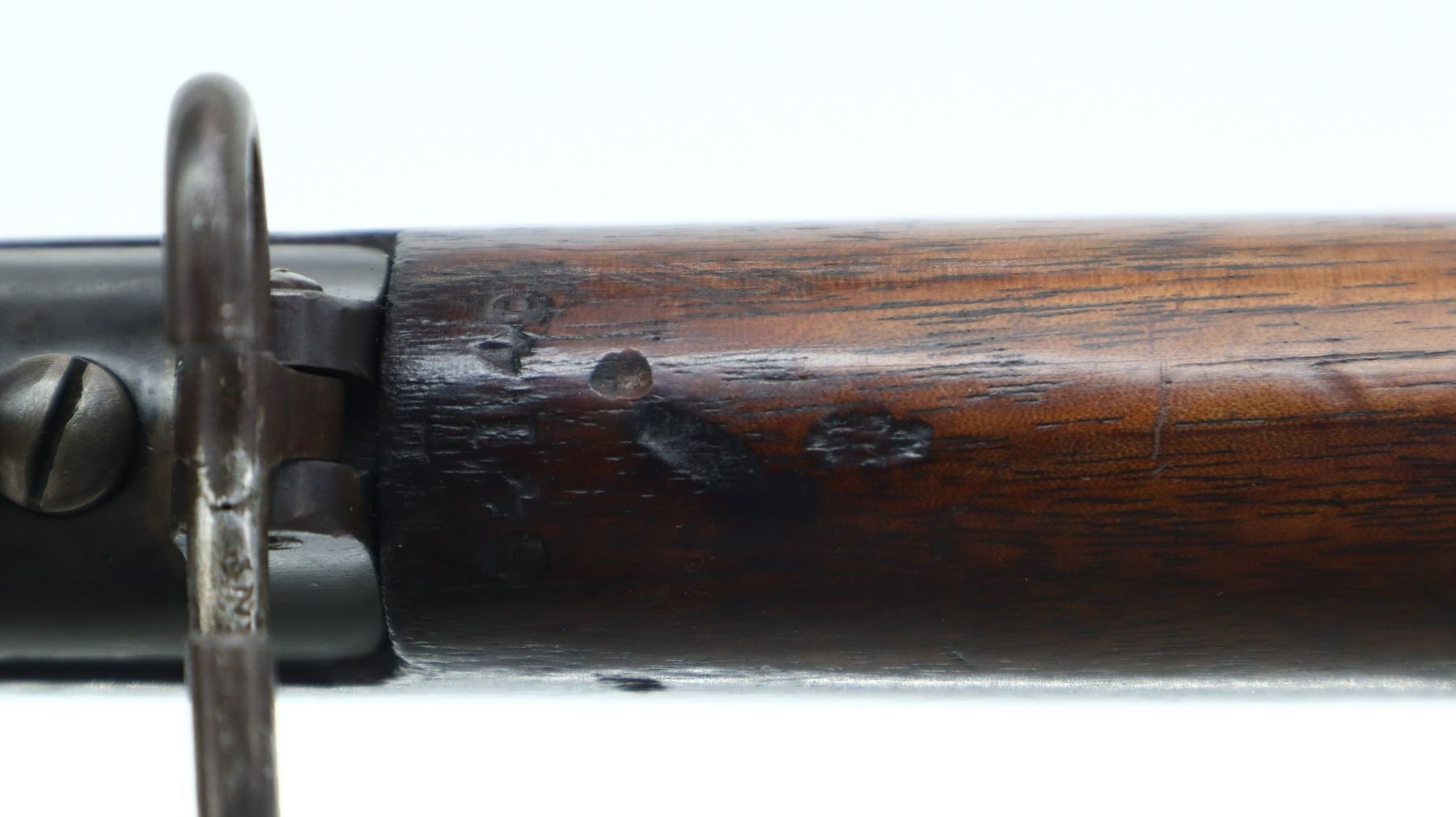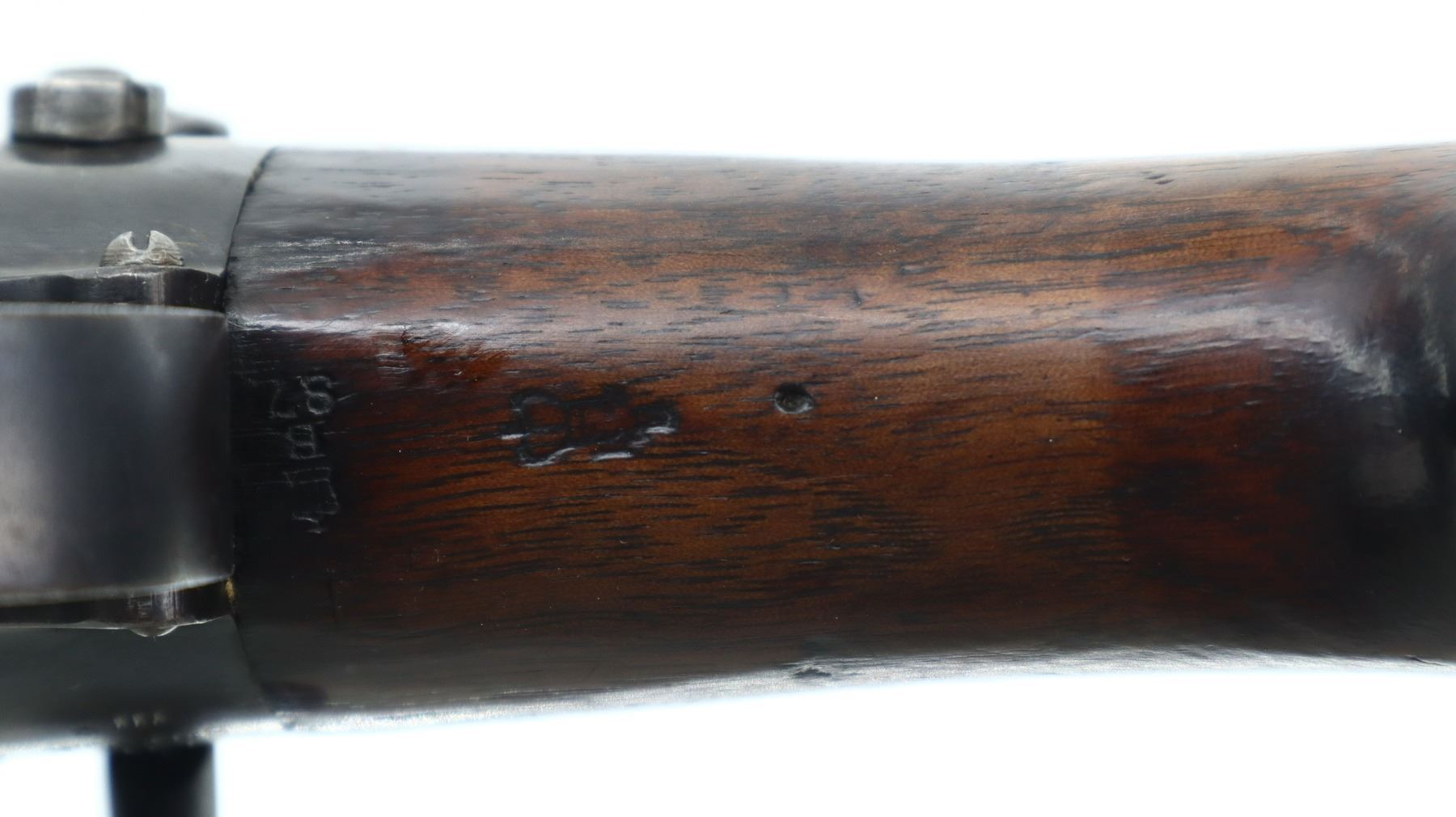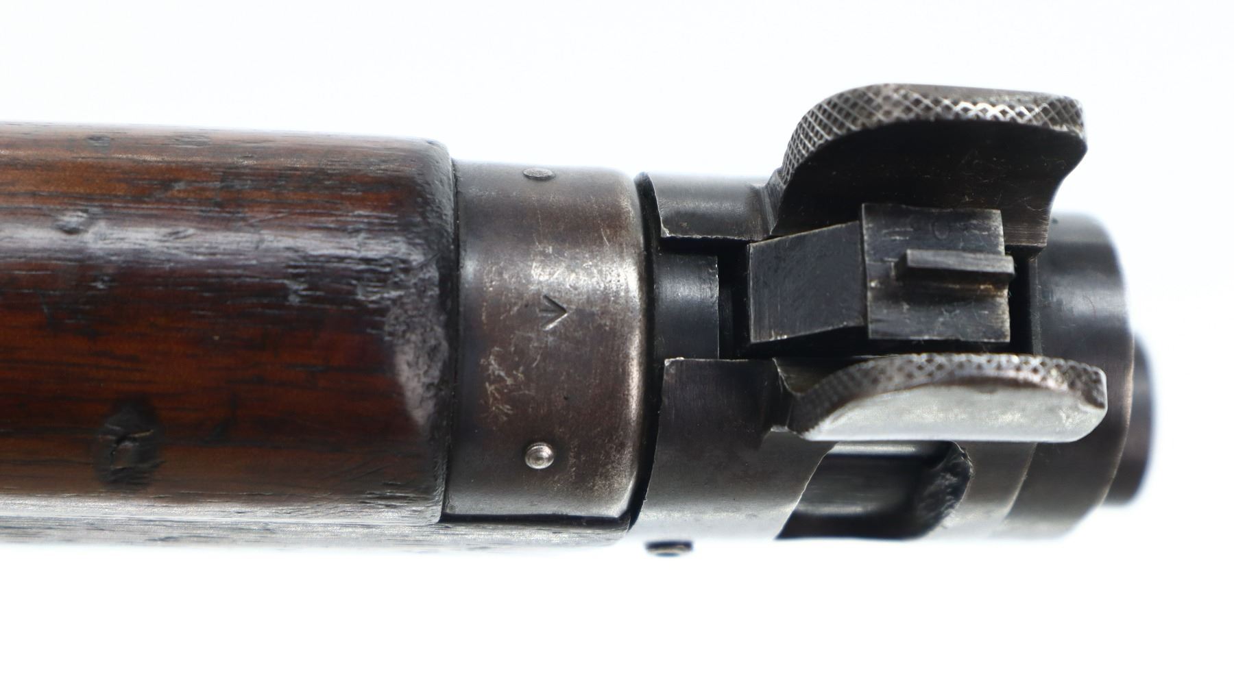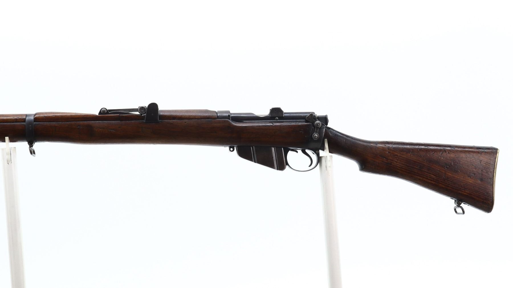 7/10, LEE ENFIELD, MODEL: NO1 MKIII*, CALIBER:303 BR, COMES WITH MAGAZINE, BORE IS GOOD, SOME SHINE. MANUFACTURED BY BSA 1917, VISIBLE NUMBERS MATCH. BLADE FRONT SIGHT WITH EARS, ADJUSTABLE U NOTCHED REAR SIGHT WITH EARS. FOUR PIECE FULL MILITARY WOOD STOCKS, PISTOL GRIP, SMOOTH BRASS BUTT PLATE WITH TRAP, BRASS STOCK DISK, SWIVELS, STACKING SWIVEL, BAYONET LUG. METAL FINISH SHOWS SOME SCRATCHES, HANDLING MARKS AND WEAR. STOCKS SHOW SOME MARKS, SCRATCHES AND WEAR. , ACTION: BOLT ACTION RIFLE, BARREL LENGTH: 25.25", SERIAL # E64149, CONDITION: 7/10, CLASS: CANADIAN NON RESTRICTED