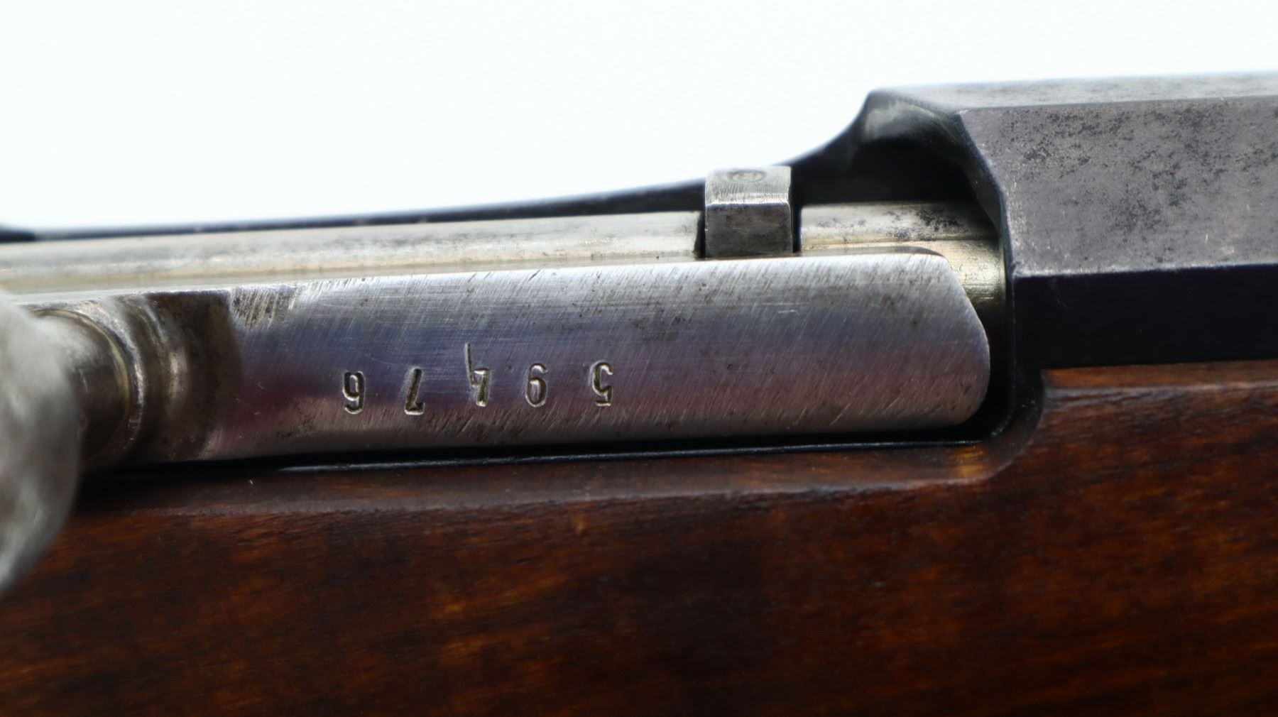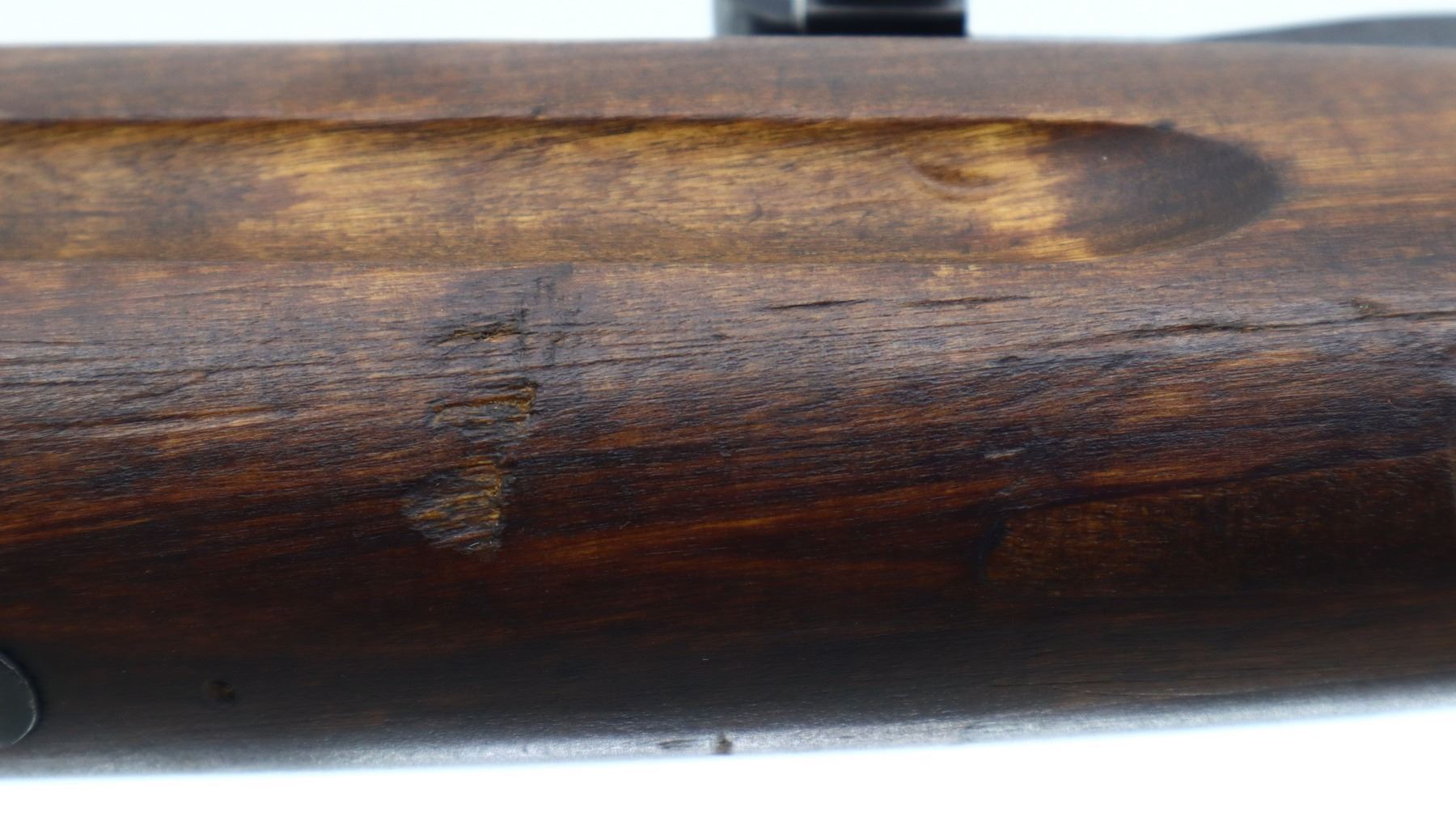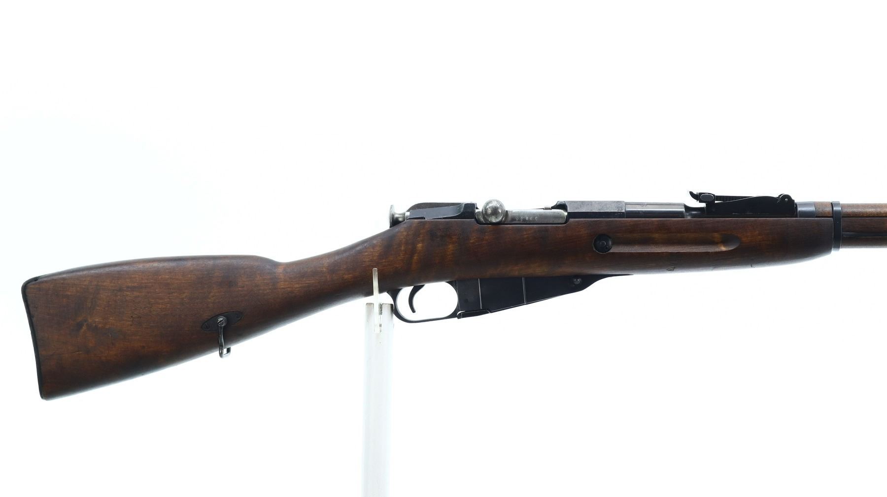 7+/10, FINNISH MOSIN NAGANT, MODEL: 91/30, CALIBER:7.62X54R, BORE IS VERY GOOD, SHINY. FINNISH REBUILD BOLT NUMBERED TO MATCH, BLADE FRONT SIGHT WITH RAMP, ADJUSTABLE U NOTCHED REAR SIGHT, TIKKA BARREL DATED 1944 WITH "SA" STAMP, HEX RECEIVER, SILVER BOLT WITH STRAIGHT HANDLE. TWO PIECE FULL MILITARY WOOD STOCKS, FINGER GROOVE FOREND, STRAIGHT GRIP, SMOOTH STEEL BUTT PLATE, FINNISH SLING SWIVELS AND CLEANING ROD. metal FINISH SHOWS SOME SCRATCHES, HANDLING MARKS AND WEAR. STOCKS SHOW SOME MARKS AD SCRATCHES., ACTION: BOLT ACTION RIFLE, BARREL LENGTH: 28.5", SERIAL # 59476, CONDITION: 7+/10, CLASS: CANADIAN NON RESTRICTED