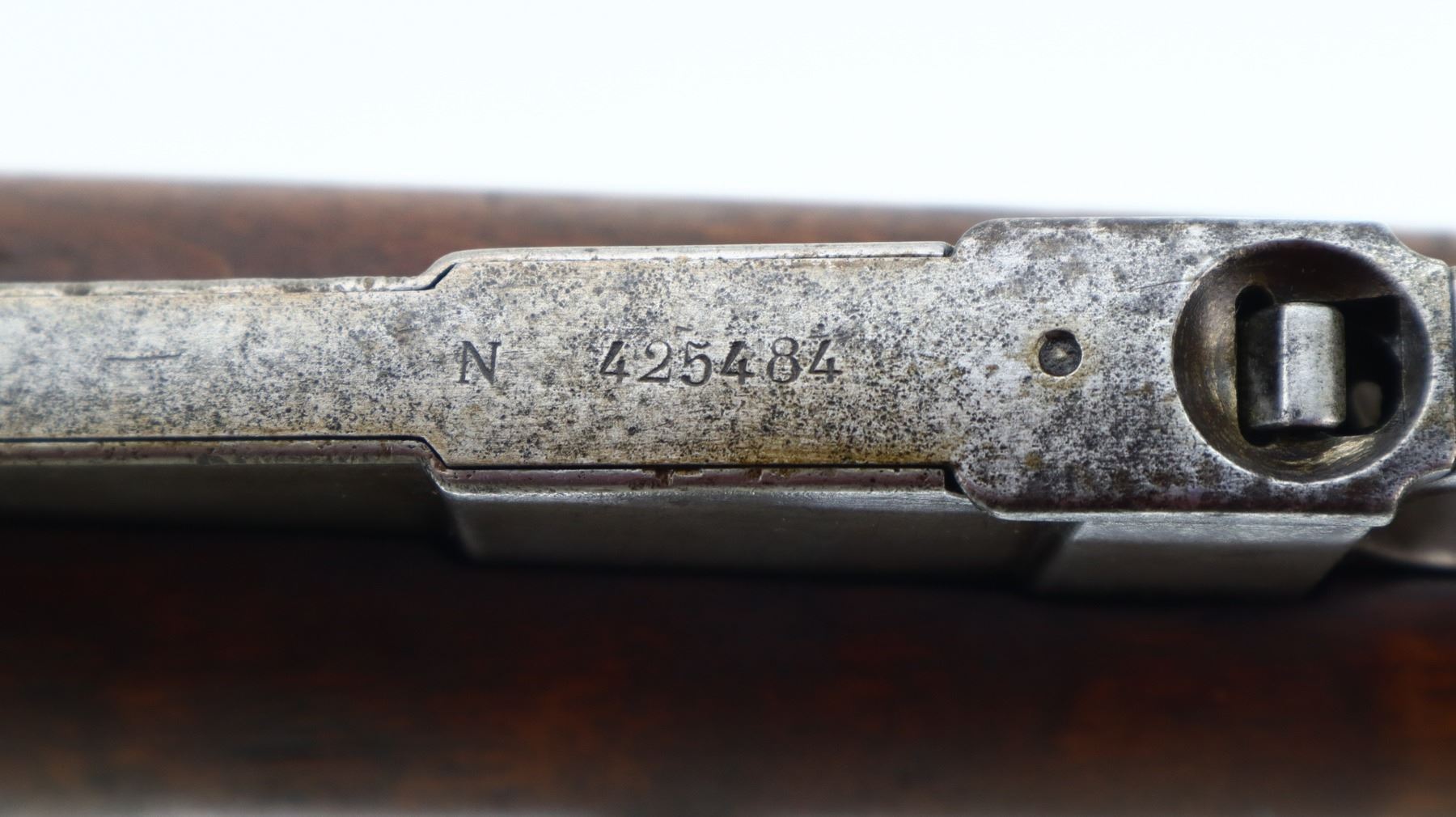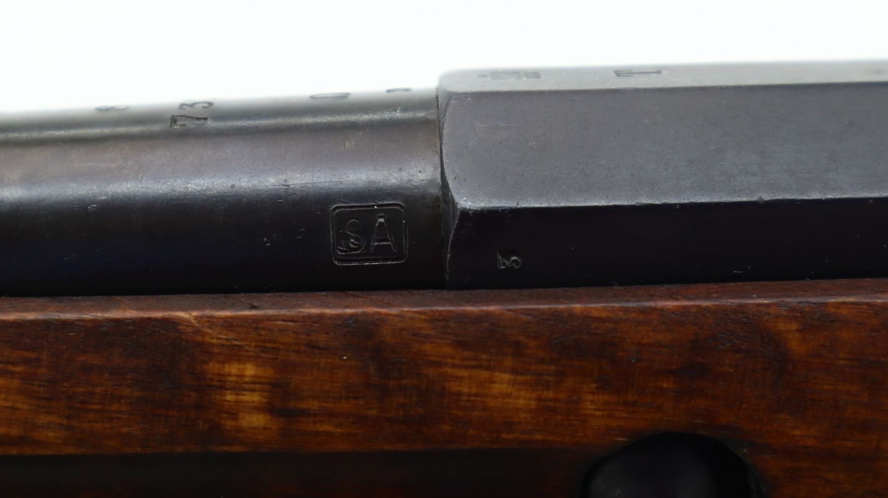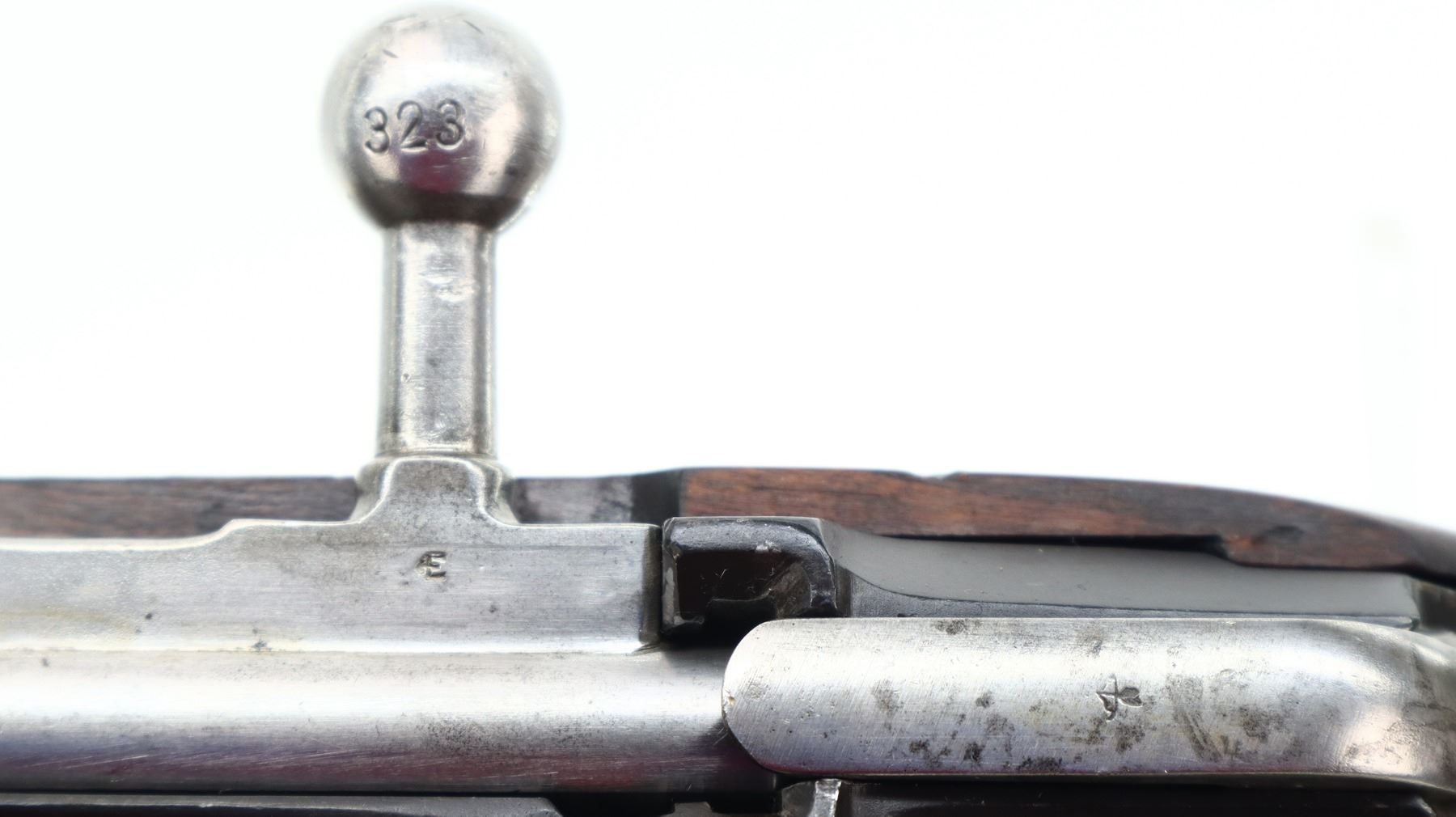 7/10, FINNISH MOSIN NAGANT, MODEL: 1891 P-26, CALIBER:7.62X54R, BORE IS GOOD, SOME SHINE. FINNISH REBUILD. BLADE FRONT SIGHT WITH RAMP, ADJUSTABLE U NOTCHED REAR SIGHT, BARREL P-26 S 7323 D WITH SA STAMP, BARREL IS RETUBED USING ITALIAN METHOD OF RELINING, HEX RECEIVER MARKED WITH LETTER T, SILVER BOLT WITH STRAIGHT HANDLE. TWO PIECE FULL MILITARY WOOD STOCKS, FINGER GROOVE FOREND, STRAIGHT GRIP, SMOOTH STEEL BUTT PLATE, PARTIAL SA STAMPED ON RIGHT SIDE OF STOCK, FINNISH SWIVELS AND CLEANING ROD. METAL FINISH SHOWS SOME SCRATCHES, HANDLING MARKS AND WEAR. STOCKS SHOW SOME MARKS, SCRATCHES AND WEAR., ACTION: BOLT ACTION RIFLE, BARREL LENGTH: 31.5", SERIAL # 7323, CONDITION: 7/10, CLASS: CANADIAN NON RESTRICTED
