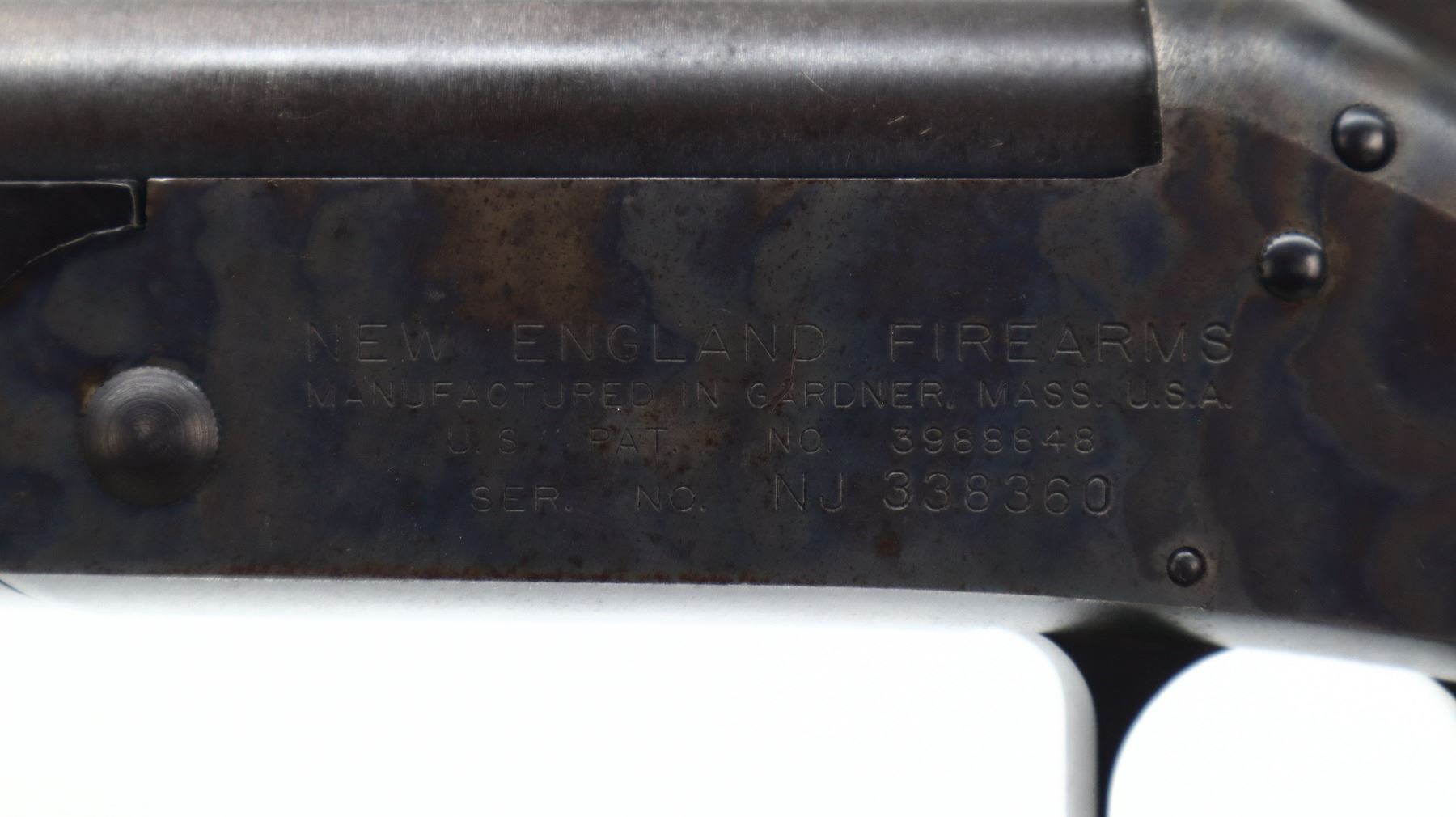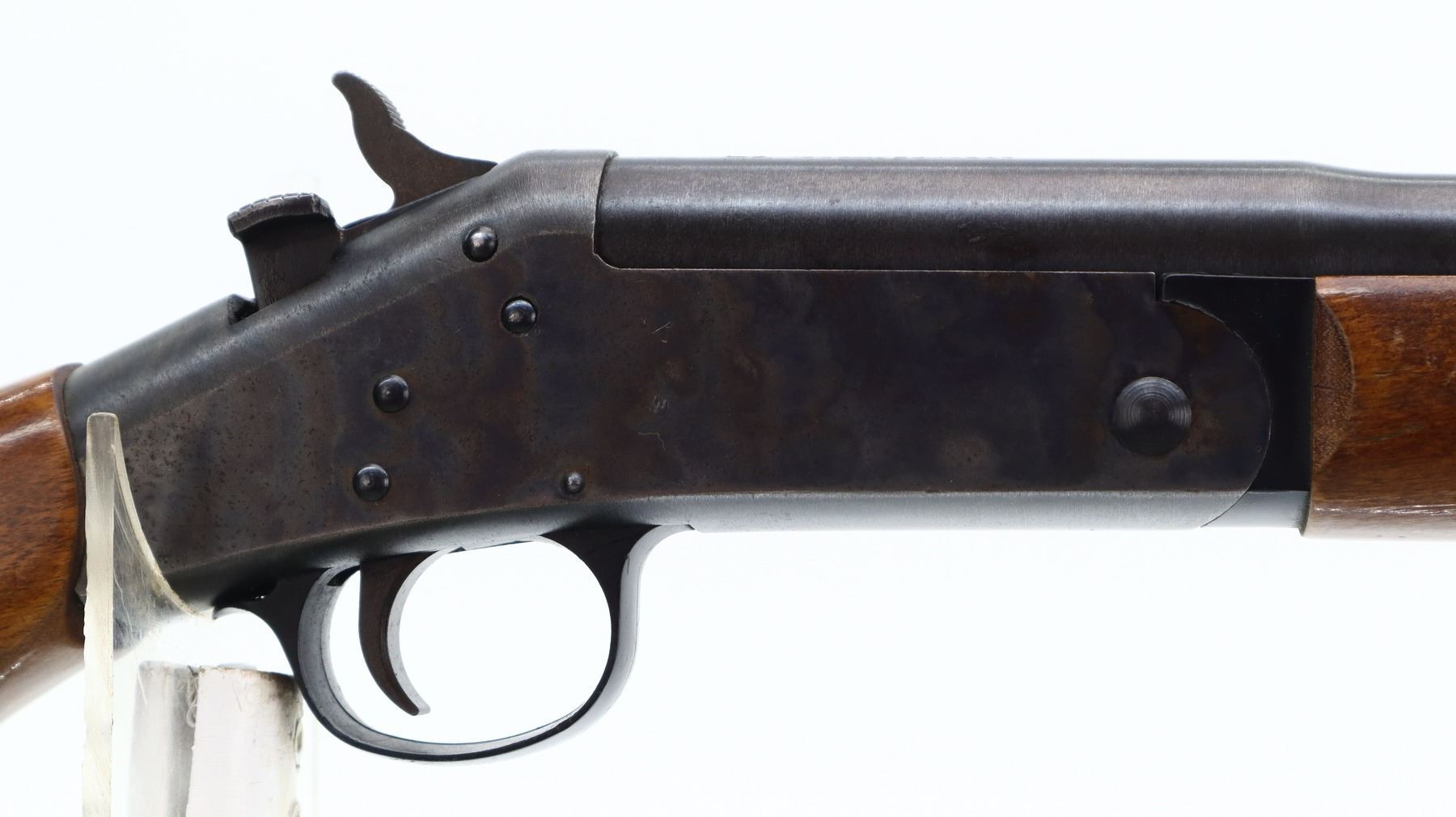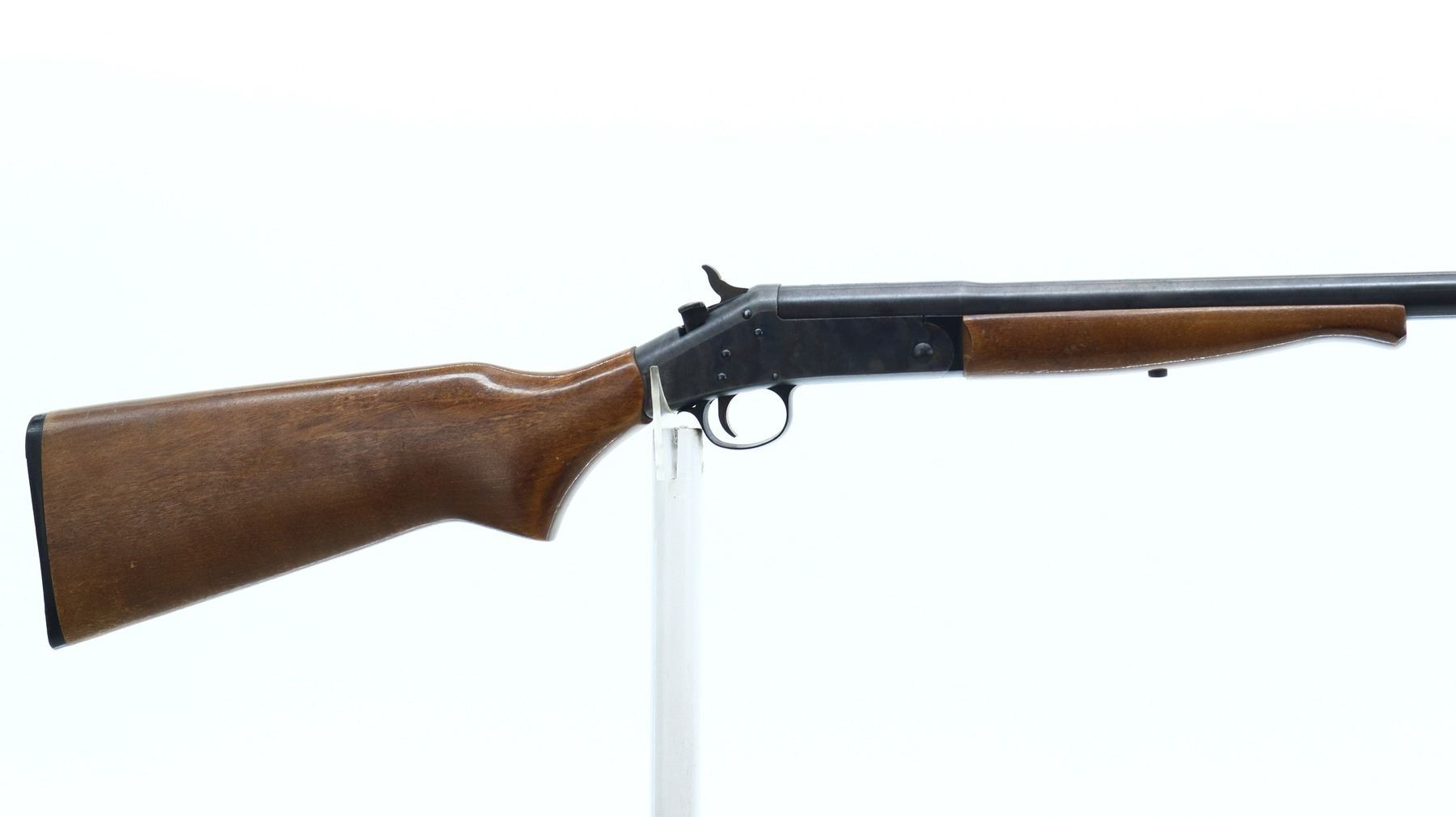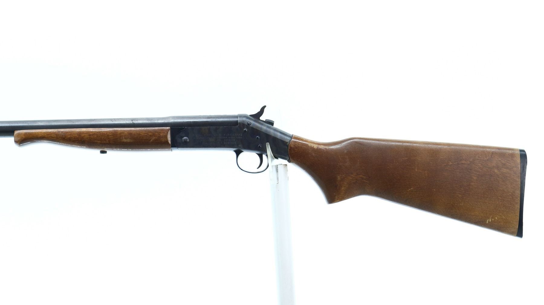 7/10, NEF , MODEL: PARDNER SB1, CALIBER:12 G , BORE IS VERY GOOD. BRASS BEAD, BLUED ROUND BARREL, CONVERTED FROM 12 G X 3" TO PERCUSSION CAP INLINE MUZZLE LOADER, COLOUR CASED HARDENED RECEIVER, GROOVED SPUR HAMMER. TWO PIECE SMOOTH WOOD STOCKS, PISTOL GRIP, GROOVED BLACK POLYMER BUTT PLATE. METAL FINISH SHOWS A FEW LIGHT RUST SPECKLES, SCRATCHES, HANDLING MARKS AND WEAR. STOCKS SHOW SOME MARKS AND SCRATCHES. , ACTION: SINGLE SHOT PERCUSSION SHOTGUN, BARREL LENGTH: 27.5", SERIAL # NJ338360, CONDITION: 7/10, CLASS: CANADIAN NON RESTRICTED
