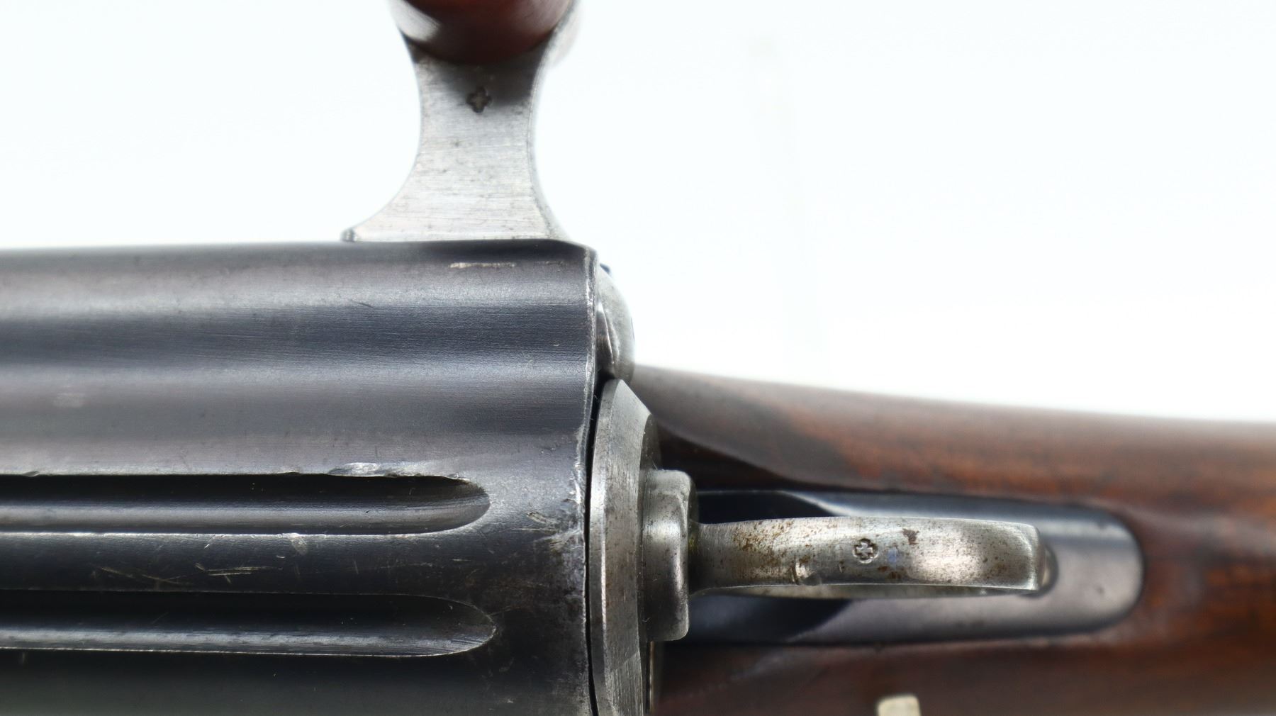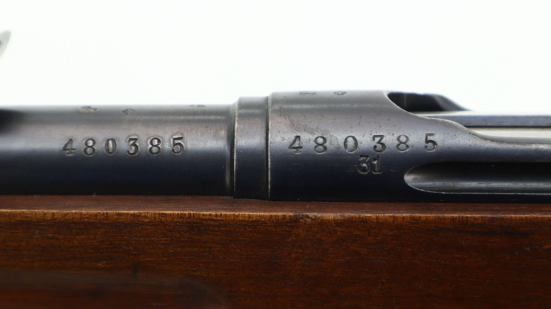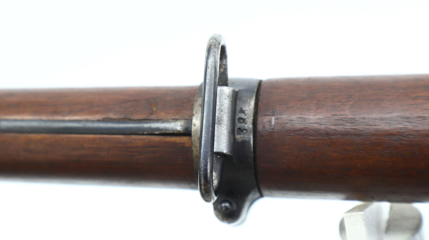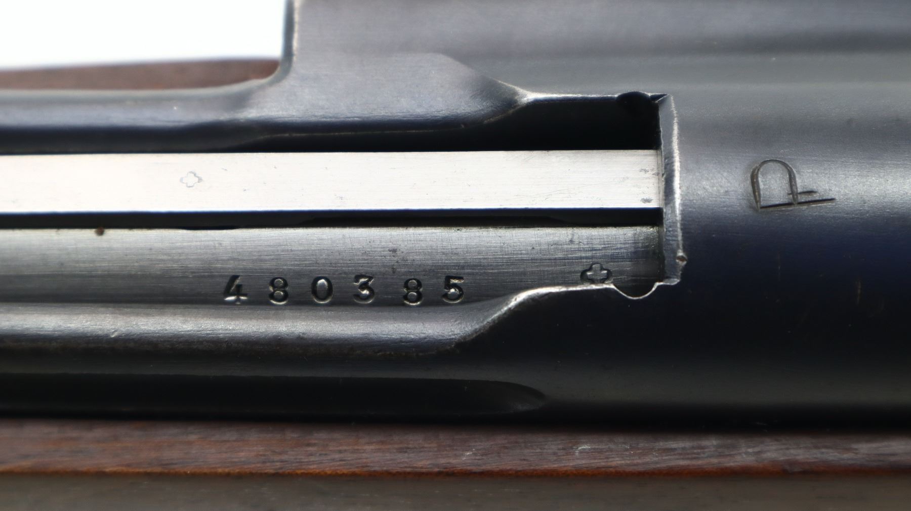 7/10, SWISS SCHMIDT RUBIN, MODEL: 1911 RIFLE, CALIBER:7.5 X 55 SWISS, COMES WITH MAGAZINE, BORE IS VERY GOOD. MANUFACTURED 1919, VISIBLE NUMBERS MATCH EXCEPT MAG. BLADE FRONT SIGHT WITH RAMP, ADJUSTABLE U NOTCHED REAR SIGHT, BLUED FINISH, SILVER BOLT WITH BROWN POLYMER BOLT KNOBS. TWO PIECE FULL MILITARY WOOD STOCKS, FINGER GROOVED FOREND, PISTOL GRIP, SMOOTH STEEL BUTT PLATE, SLING SWIVELS, STACKING HOOK, BAYONET LUG. METAL FINISH SHOWS SOME SCRATCHES, HANDLING MARKS AND WEAR. STOCKS SHOW SOME MARKS, SCRATCHES AND WEAR. , ACTION: STRAIGHT PULL RIFLE, BARREL LENGTH: 30.25", SERIAL # 480385, CONDITION: 7/10, CLASS: CANADIAN NON RESTRICTED