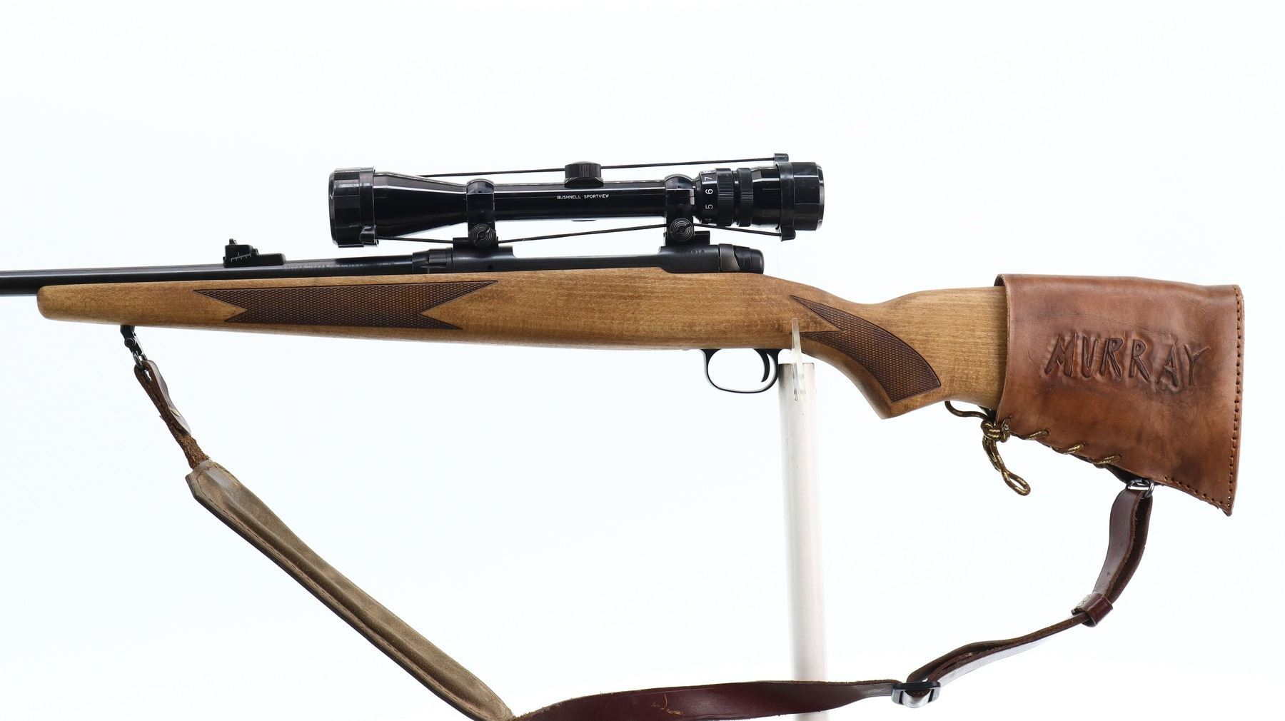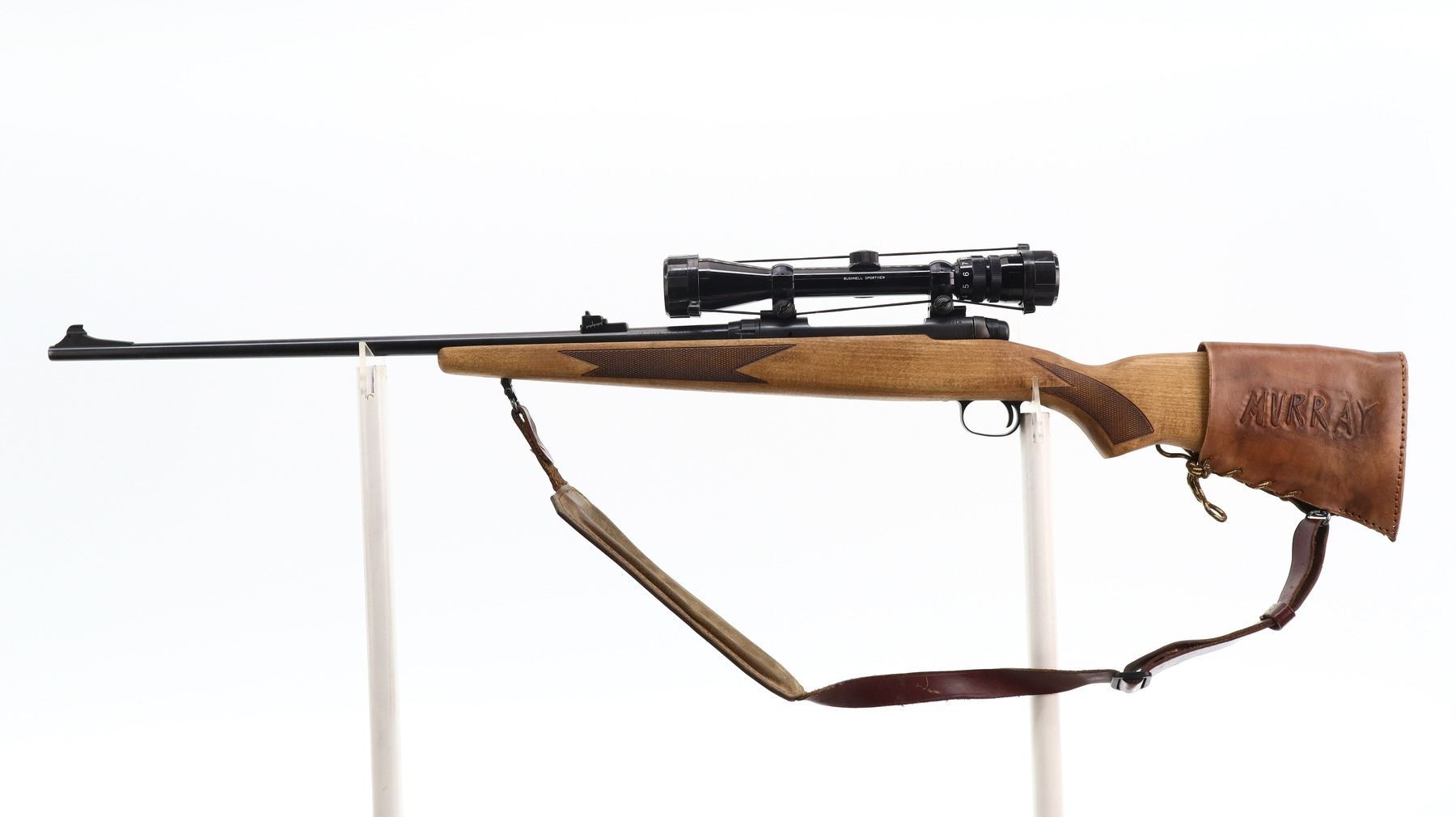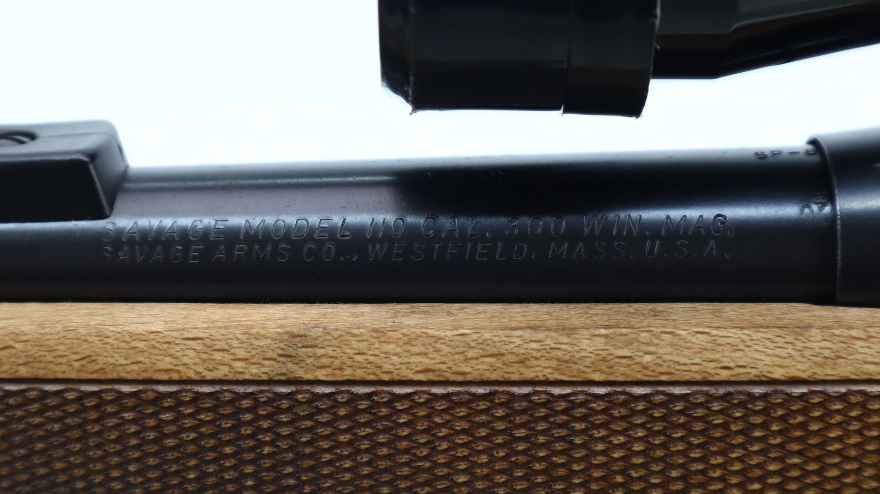 7/10, SAVAGE, MODEL: 110, CALIBER:300 WIN MAG, BORE IS VERY GOOD. BLADE FRONT SIGHT WITH RAMP, ADJUSTABLE U NOTCHED REAR SIGHT, BLUED FINISH, RECEIVER DRILLED AND TAPPED WITH BUSHNELL SPORTVIEW 3-9 X 40 SCOPE, CLEAR OPTICS WITH DUPLEX CROSSHAIR. ONE PIECE WOOD STOCK, CHECKERED FOREARM AND PISTOL GRIP, SLIP ON LEATHER STOCK PAD MARKED MURRAY, NON ACCU TRIGGER, SWIVELS WITH BROWN LEATHER SLING. METAL FINISH SHOWS SOME SCRATCHES, HANDLING MARKS AND WEAR. STOCK SHOWS SOME MARKS AND SCRATCHES. , ACTION: BOLT ACTION RIFLE, BARREL LENGTH: 24", SERIAL # F206916, CONDITION: 7/10, CLASS: CANADIAN NON RESTRICTED