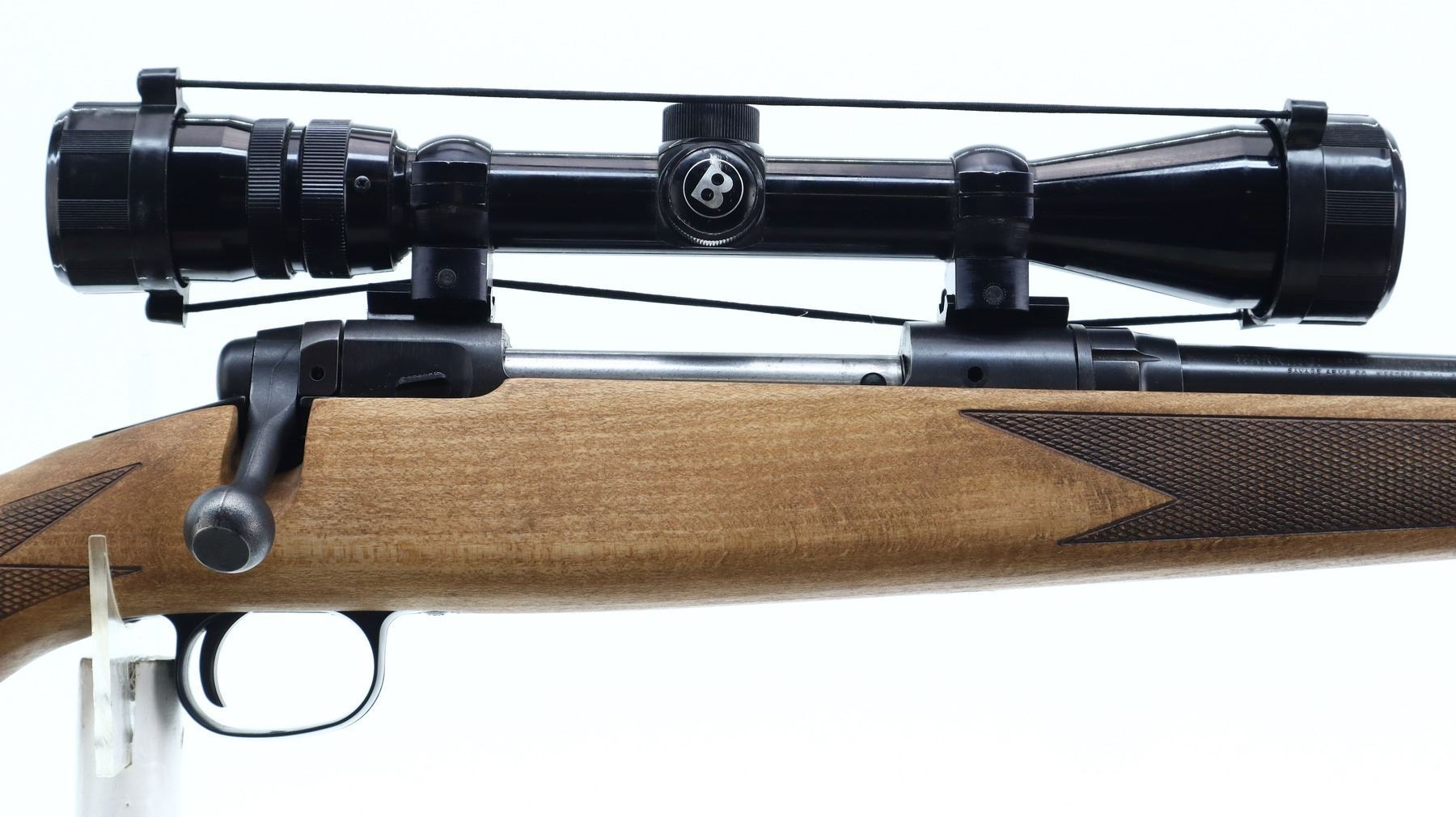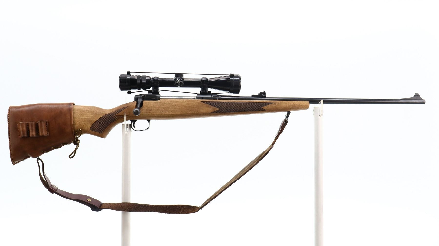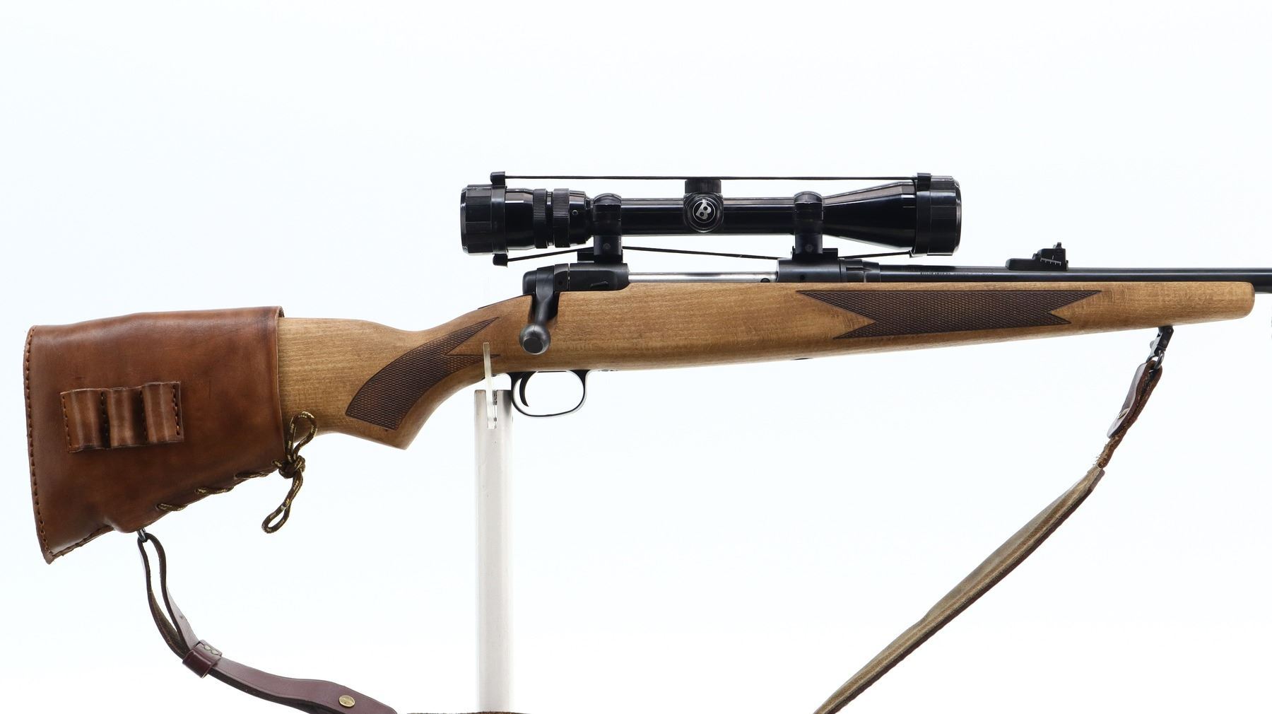 7/10, SAVAGE, MODEL: 110, CALIBER:300 WIN MAG, BORE IS VERY GOOD. BLADE FRONT SIGHT WITH RAMP, ADJUSTABLE U NOTCHED REAR SIGHT, BLUED FINISH, RECEIVER DRILLED AND TAPPED WITH BUSHNELL SPORTVIEW 3-9 X 40 SCOPE, CLEAR OPTICS WITH DUPLEX CROSSHAIR. ONE PIECE WOOD STOCK, CHECKERED FOREARM AND PISTOL GRIP, SLIP ON LEATHER STOCK PAD MARKED MURRAY, NON ACCU TRIGGER, SWIVELS WITH BROWN LEATHER SLING. METAL FINISH SHOWS SOME SCRATCHES, HANDLING MARKS AND WEAR. STOCK SHOWS SOME MARKS AND SCRATCHES. , ACTION: BOLT ACTION RIFLE, BARREL LENGTH: 24", SERIAL # F206916, CONDITION: 7/10, CLASS: CANADIAN NON RESTRICTED