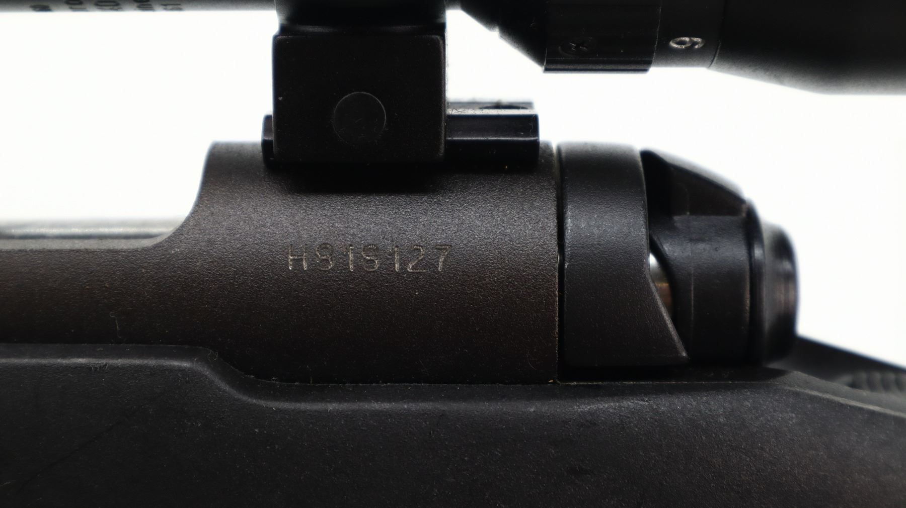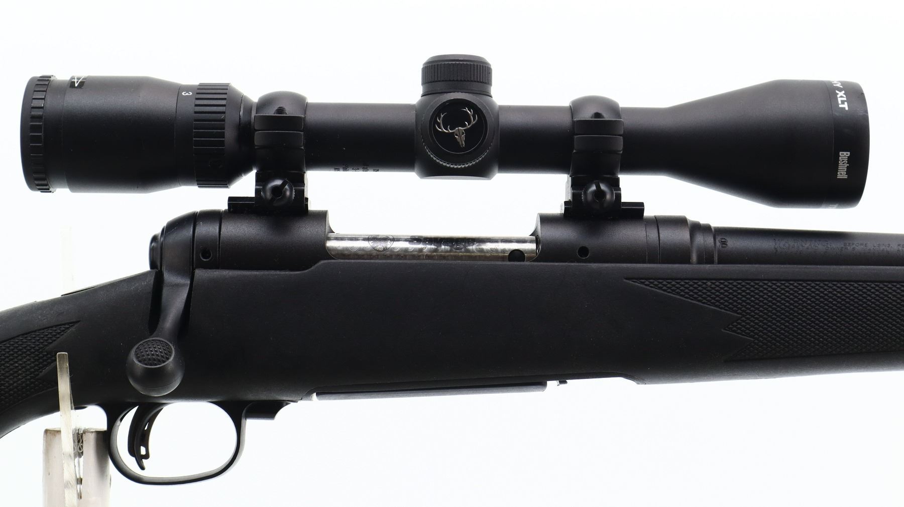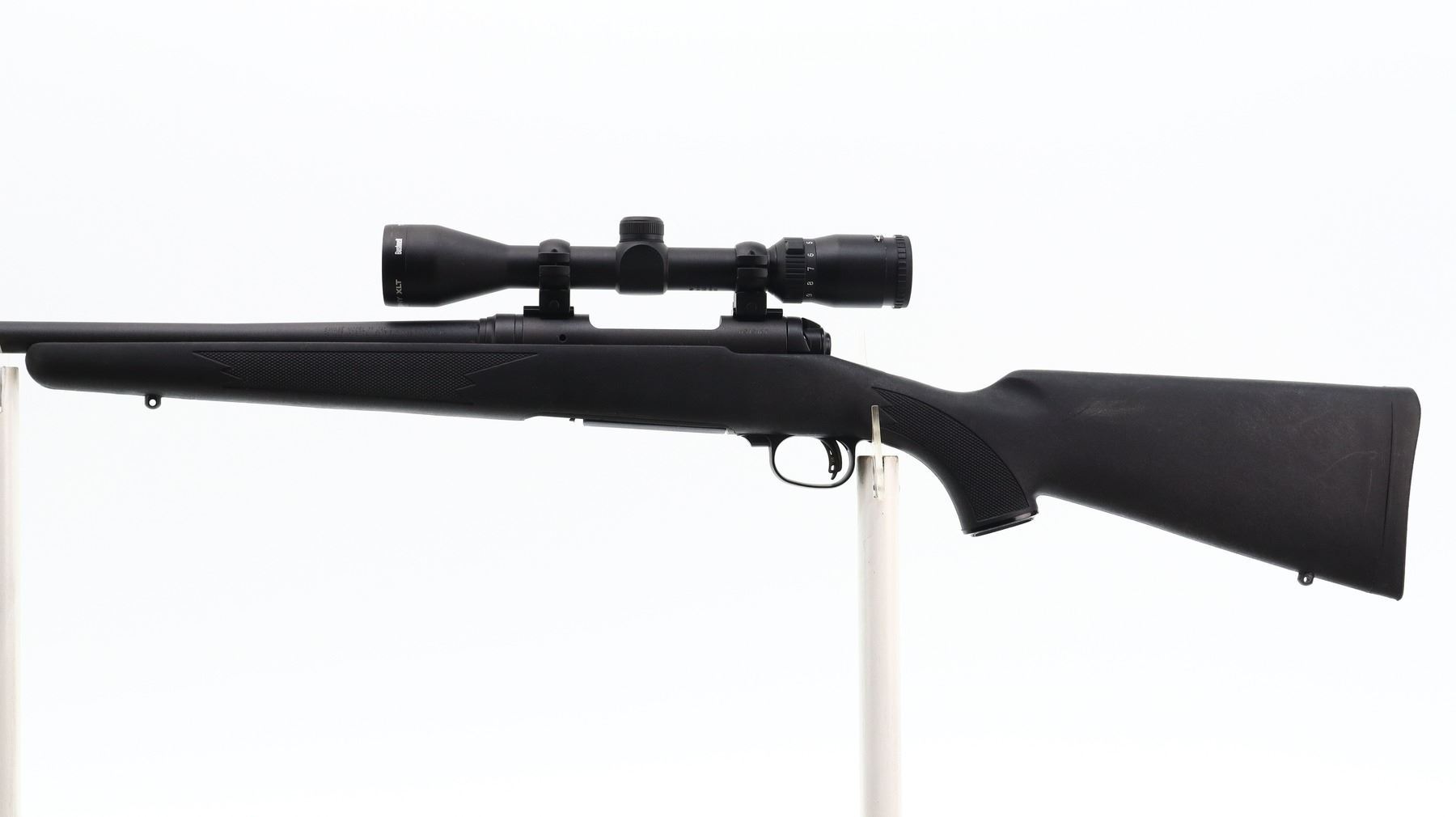 8/10, SAVAGE, MODEL: 11, CALIBER:270 WSM, COMES WITH MAGAZINE, BORE IS EXCELLENT. TAPERED ROUND BARREL, NO SIGHTS, BLACK MATTE FINISH, JEWELLED BOLT, RECEIVER DRILLED AND TAPPED WITH BUSHNELL TROPHY XLT 3-9 X 40 SCOPE, CLEAR OPTICS WITH DUPLEX CROSSHAIR, TANG SAFETY. ONE PIECE BLACK SYNTHETIC STOCK, CHECKERED FOREARM AND PISTOL GRIP, BLACK RUBBER RECOIL PAD, GRIP CAP, ACCU TRIGGER, SWIVEL STUDS. METAL FINISH SHOWS SOME SCRATCHES AND HANDLING MARKS. STOCK SHOWS SOME MARKS AND SCRATCHES. , ACTION: BOLT ACTION RIFLE, BARREL LENGTH: 24", SERIAL # H818127, CONDITION: 8/10, CLASS: CANADIAN NON RESTRICTED