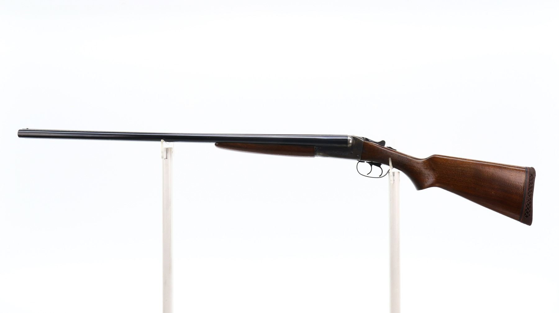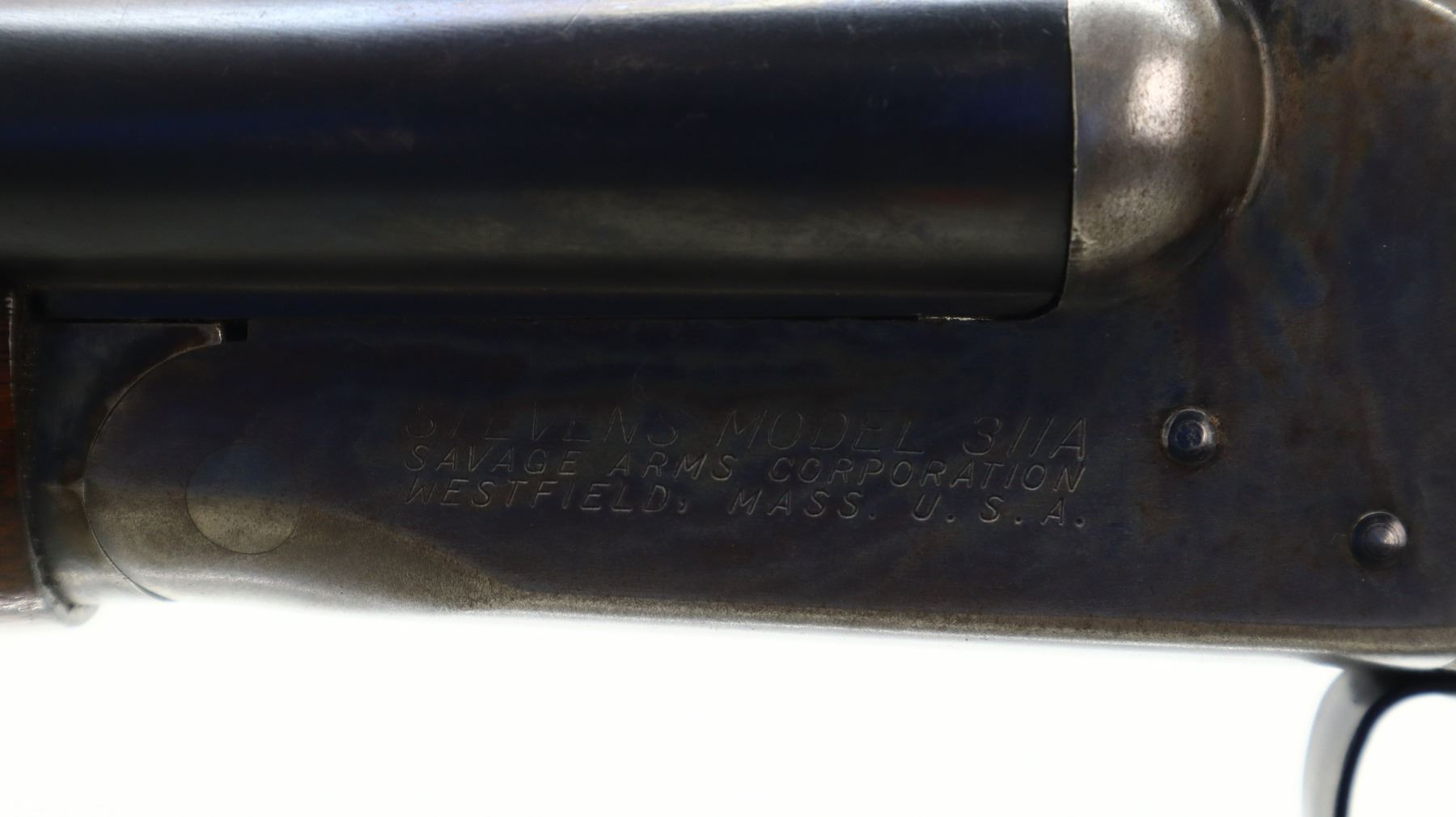 7/10, STEVENS, MODEL: 311A, CALIBER:12 G X 2 3/4", BORES ARE EXCELLENT. FIXED FULL AND IM CHOKES. SILVER BEAD, BLUED BARRELS WITH GROOVED RIB, COLOUR CASE HARDENED RECEIVER, AUTOMATIC SAFETY, EXTRACTOR, DOUBLE TRIGGERS. TWO PIECE SMOOTH WOOD STOCKS, PISTOL GRIP, BROWN VENTED RUBBER RECOIL PAD (DAMAGED), 14" LOP. METAL FINISH SHOWS SOME SCRATCHES, HANDLING MARKS AND WEAR. STOCKS SHOW SOME MARKS, SCRATCHES AND WEAR. , ACTION: HINGED SIDE BY SIDE SHOTGUN, BARREL LENGTH: 30", SERIAL # NA, CONDITION: 7/10, CLASS: CANADIAN NON RESTRICTED