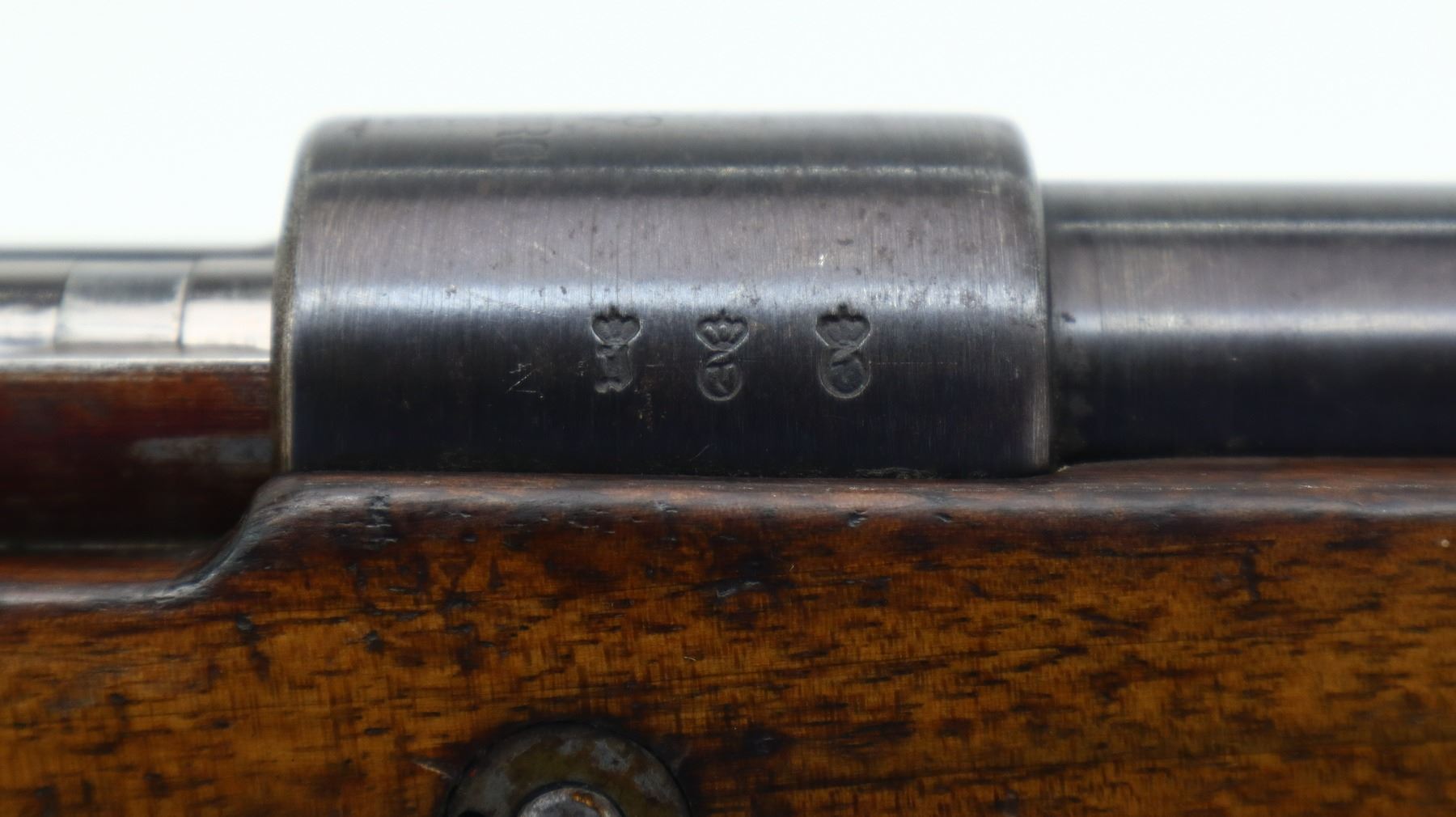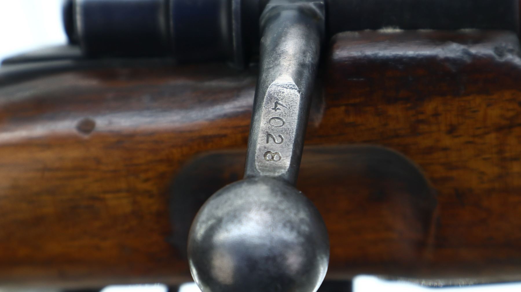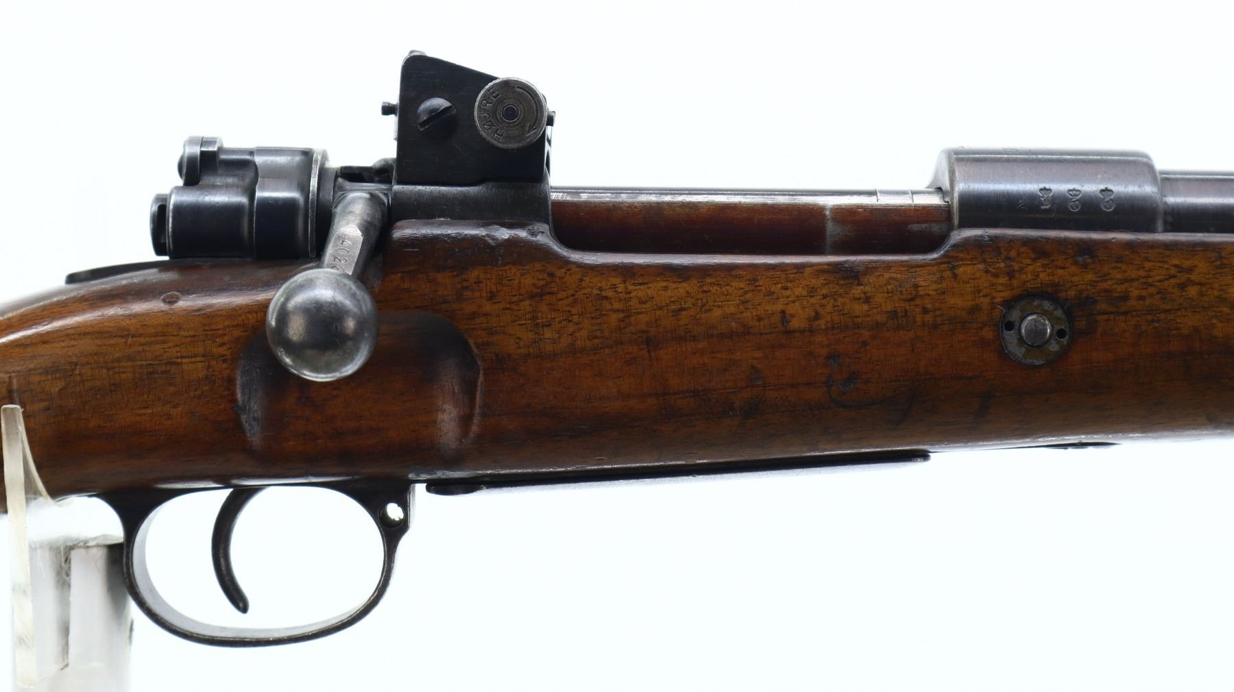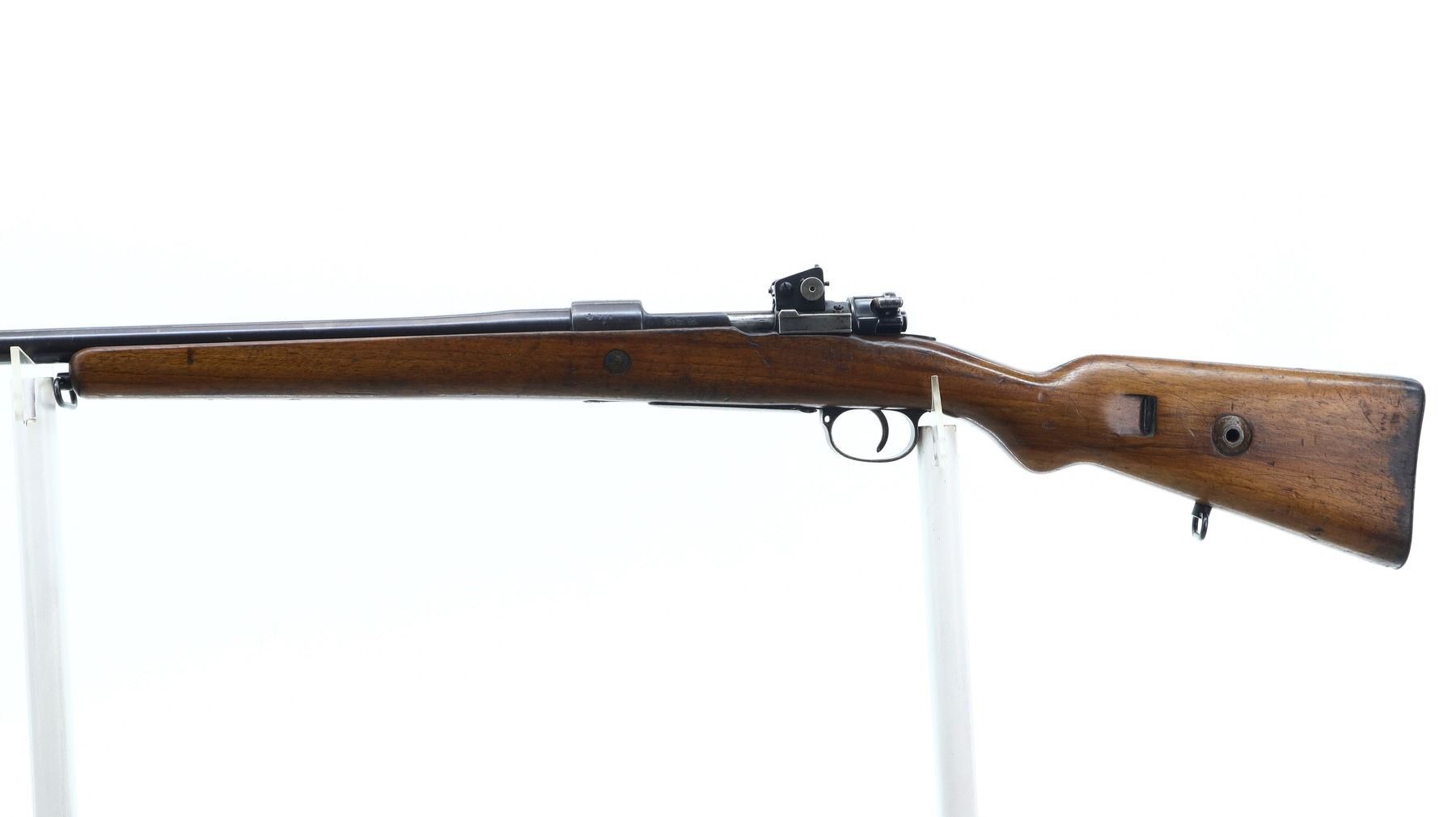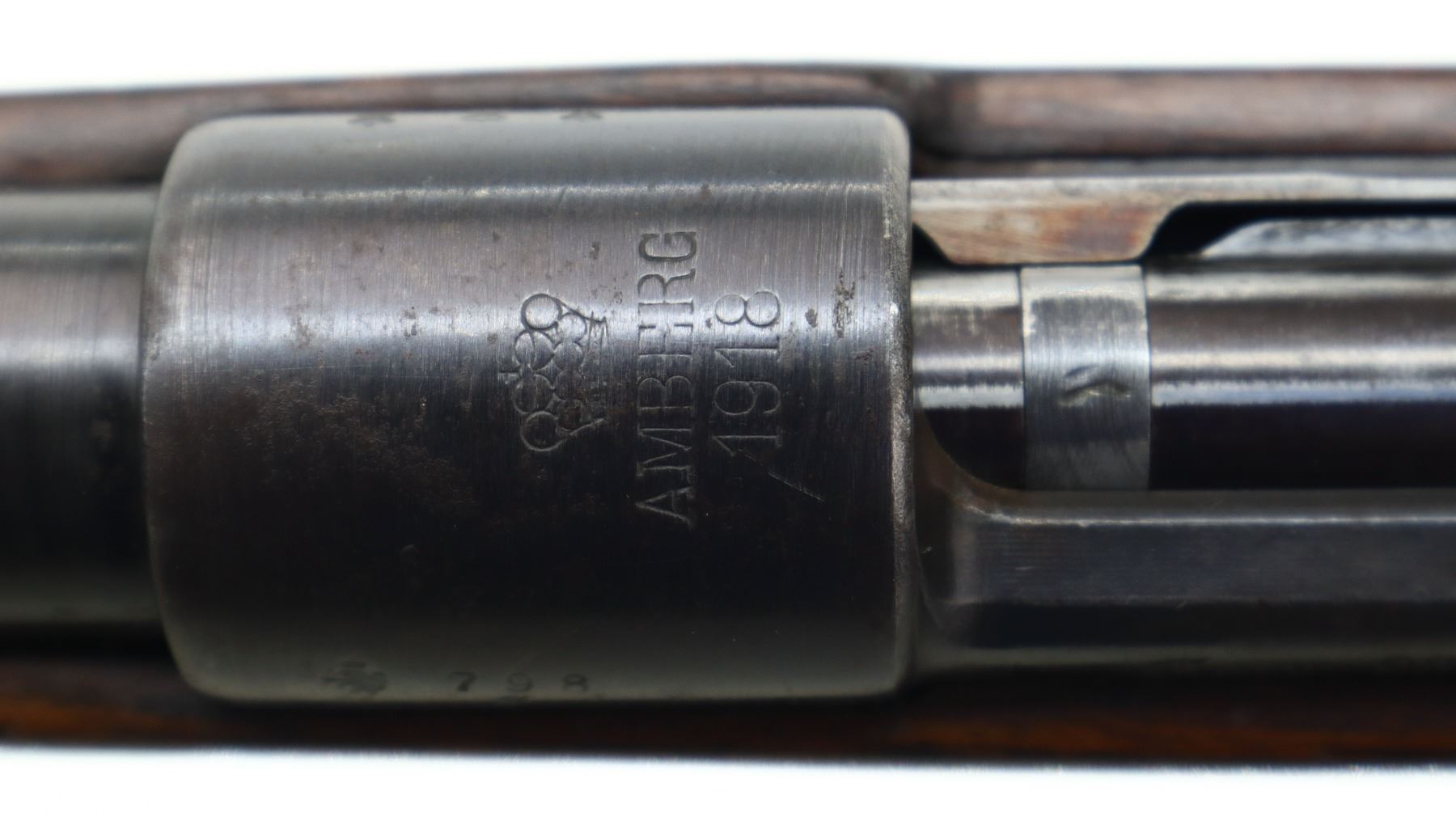 7/10, GERMAN MAUSER, MODEL: 98 TARGET SCHULTZ & LARSEN, CALIBER:6.5 X 55, BORE IS FAIR, WORN, LIGHT PITTING. MANUFACTURED BY AMBERG 1918, BOLT MISMATCHED. GLOBE FRONT SIGHT WITH INSERT AND RAMP, ADJUSTABLE REAR PEEP SIGHT ON REAR RECEIVER BRIDGE, MEDIUM WEIGHT BARREL, MODIFIED BOLT HANDLE. ONE PIECE SPORTERIZED WOOD STOCK, PISTOL GRIP, STEEL STOCK DISK, SLING SWIVELS. METAL FINISH SHOWS SOME SCRATCHES, HANDLING MARKS AND WEAR. STOCKS SHOW SOME MARKS, SCRATCHES AND WEAR. , ACTION: BOLT ACTION RIFLE, BARREL LENGTH: 27.5", SERIAL # 798G, CONDITION: 7/10, CLASS: CANADIAN NON RESTRICTED