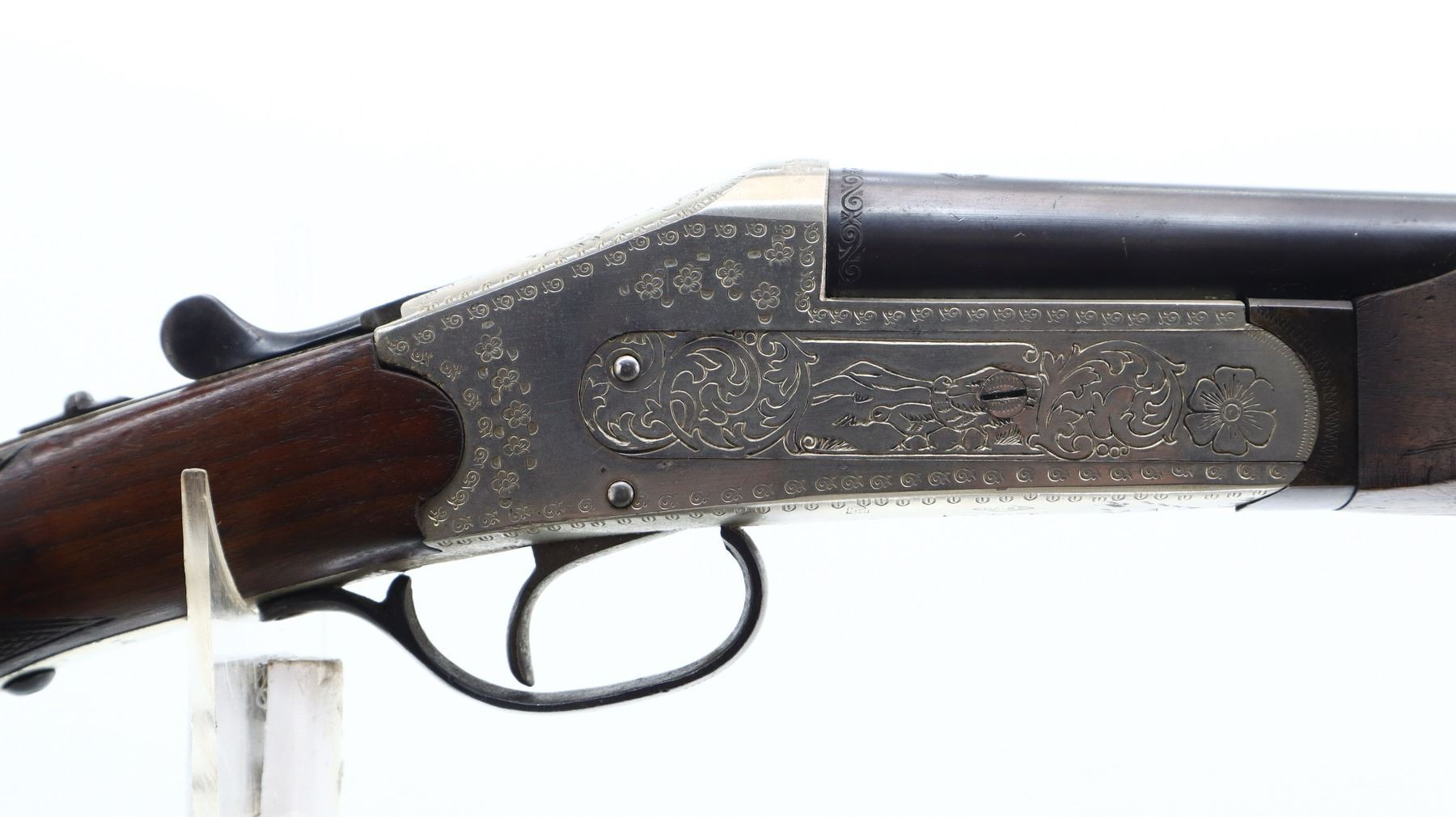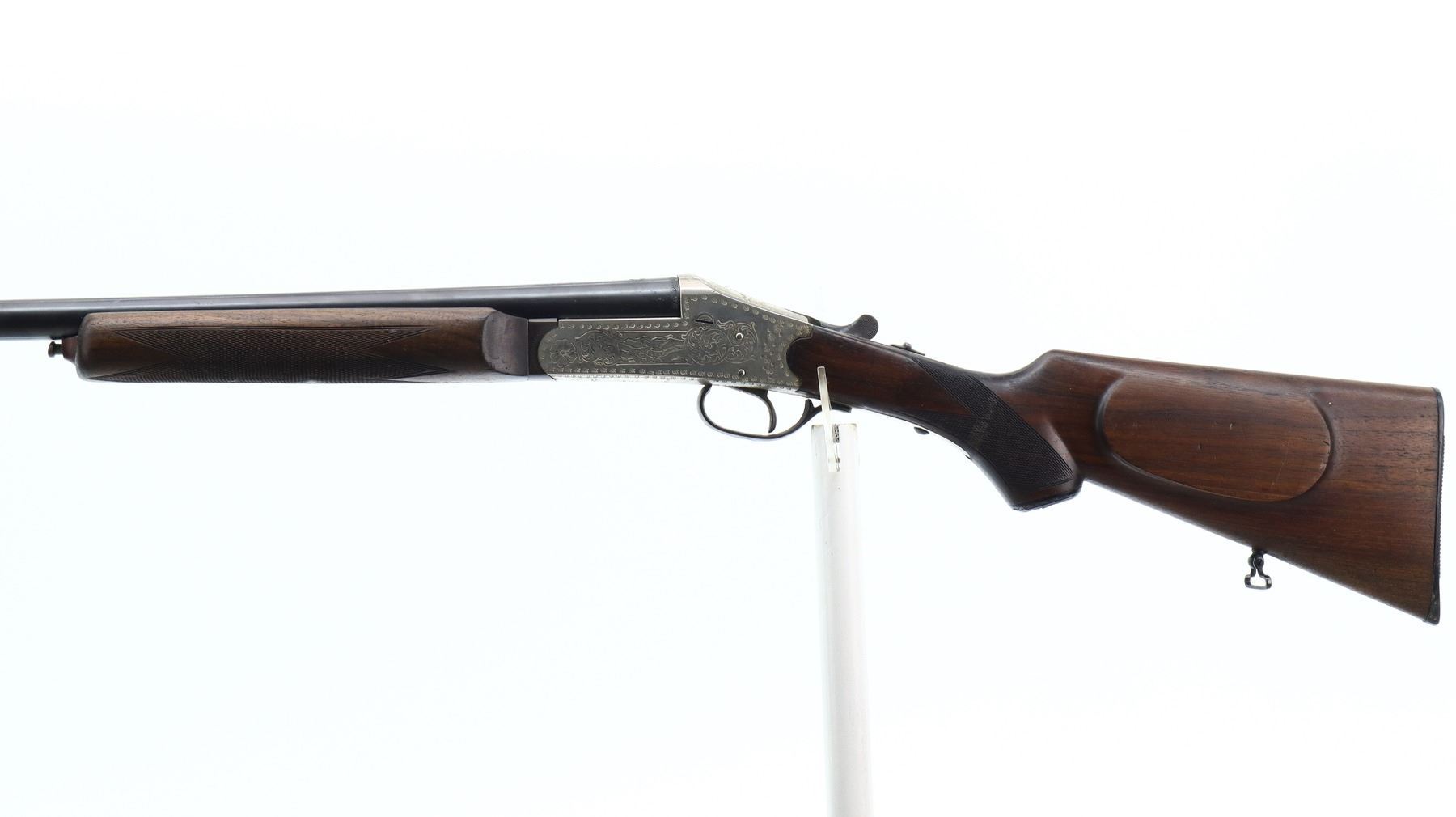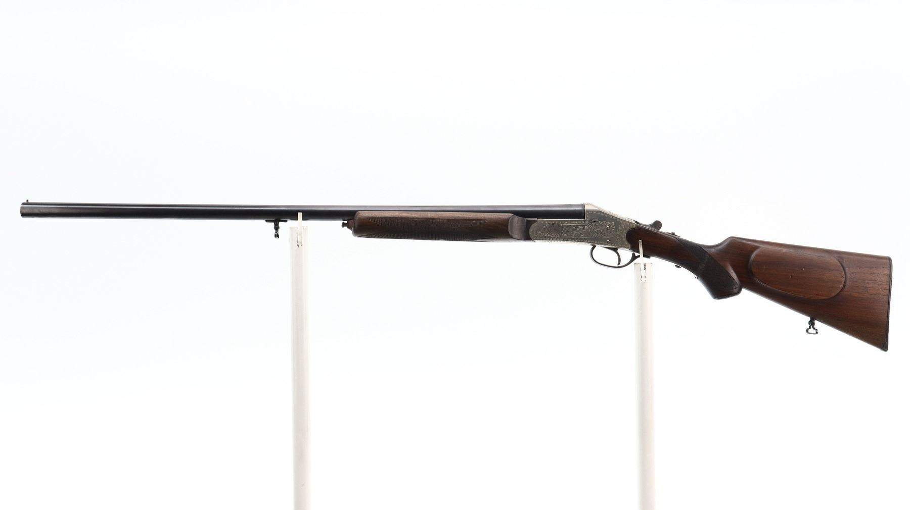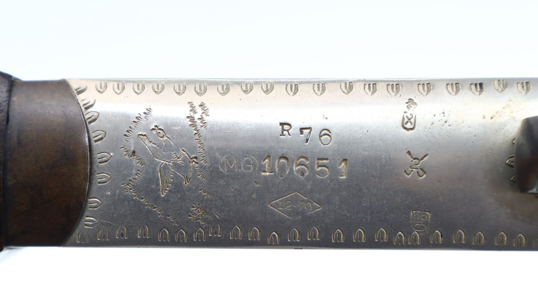 7/10, SPANISH, MODEL: SINGLE SHOT, CALIBER:12 G X 2 3/4", BORE IS VERY GOOD. FIXED IC CHOKE. BRASS BEAD, BLUED ROUND BARREL, SILVER ENGRAVED RECEIVER, AUTOMATIC SAFETY, EXTRACTOR. TWO PIECE WOOD STOCKS, CHECKERED BEAVER TAIL FOREARM AND PISTOL GRIP, CHEEK REST, CHECKERED BLACK POLYMER BUTT PLATE, GRIP CAP, SLING SWIVELS. METAL FINISH SHOWS SOME SCRATCHES, HANDLING MARKS AND WEAR. STOCKS SHOW SOME MARKS, SCRATCHES AND WEAR. , ACTION: HINGED SINGLE SHOT SHOTGUN, BARREL LENGTH: 30", SERIAL # 10651, CONDITION: 7/10, CLASS: CANADIAN NON RESTRICTED