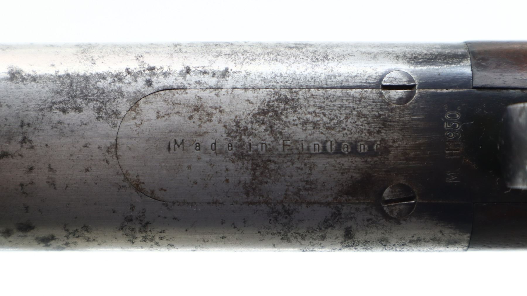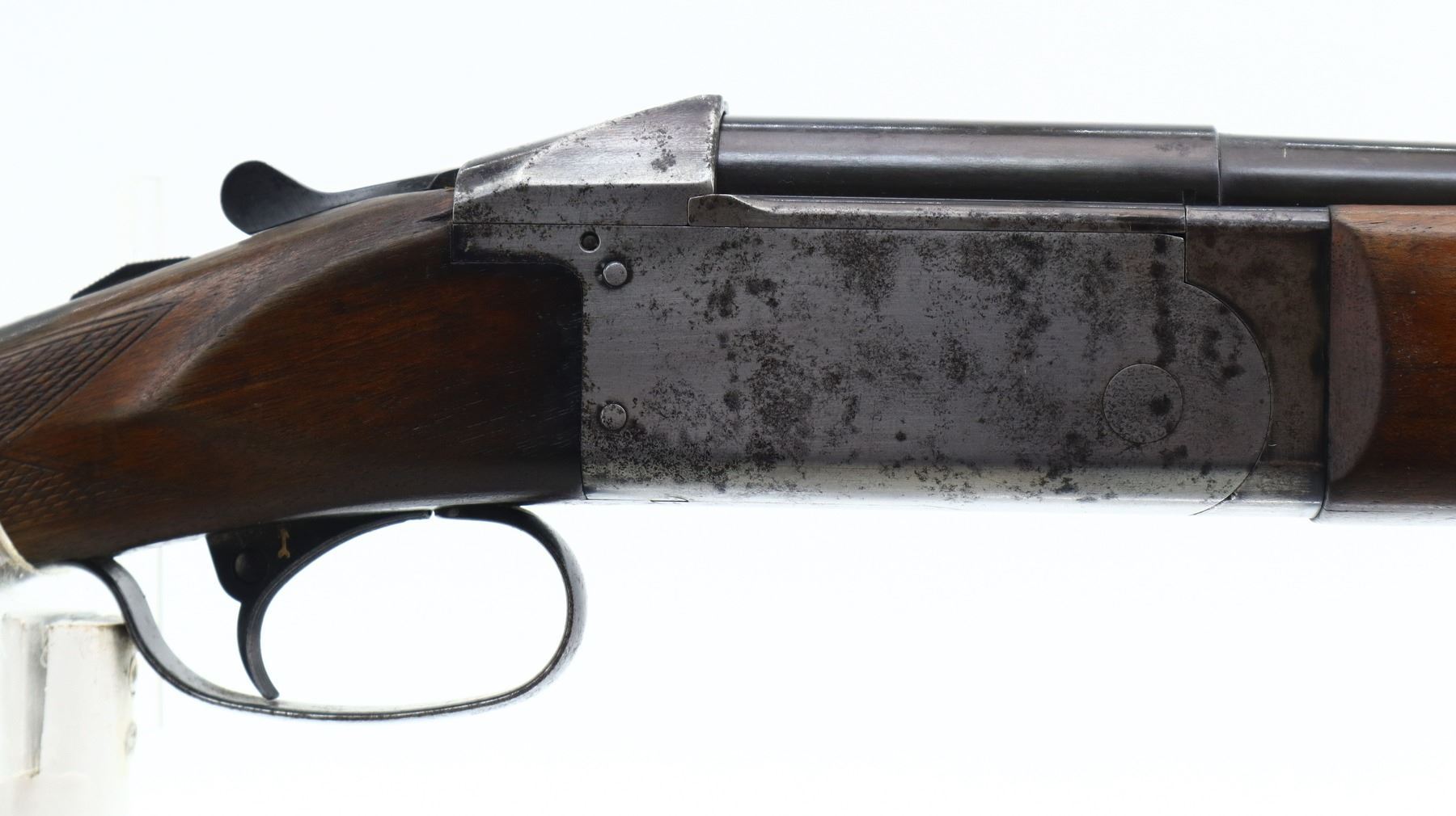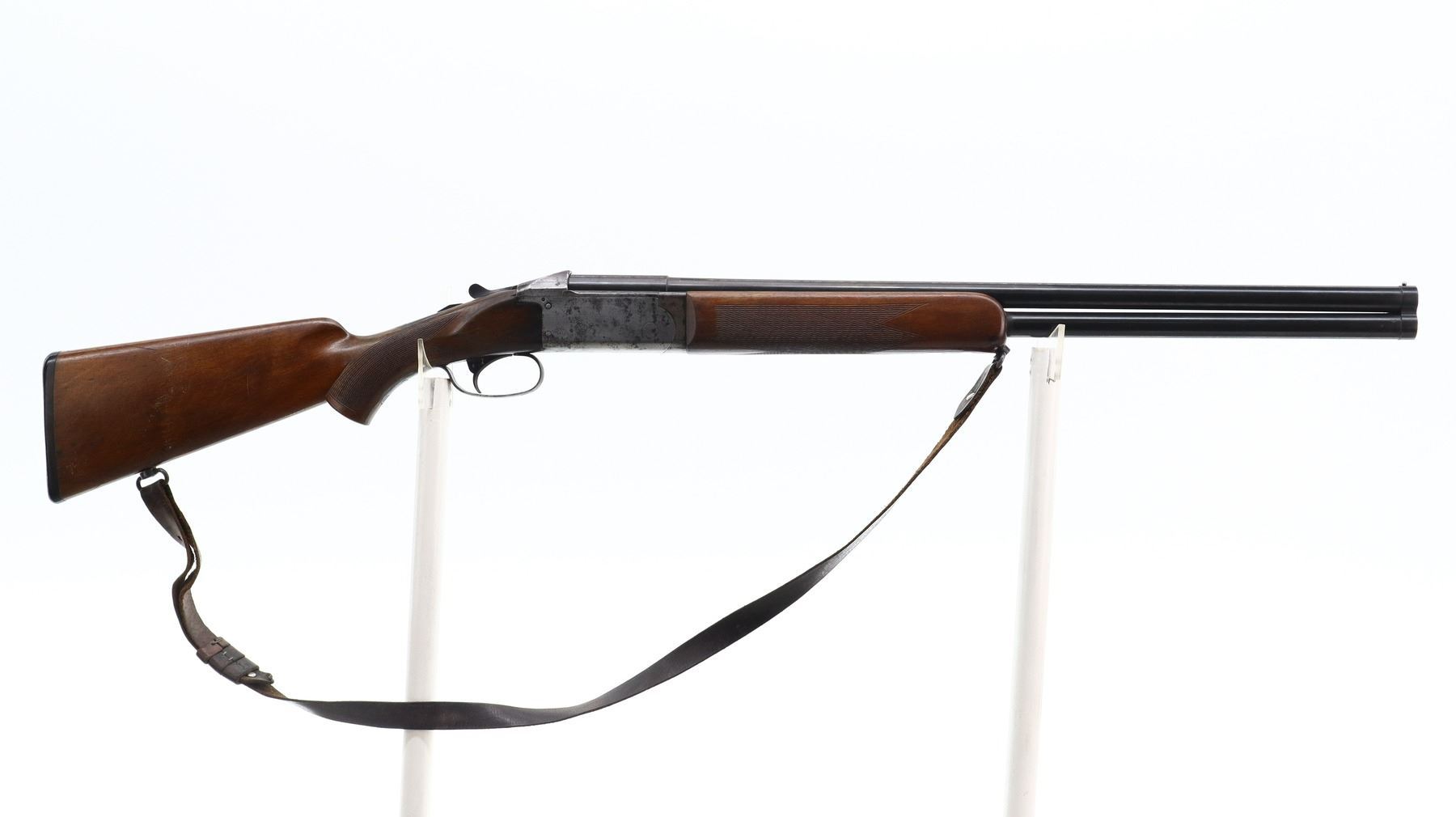 6/10, VALMET, MODEL: LION, CALIBER:12 G X 2 3/4", BORES ARE VERY GOOD. FIXED FULL CHOKES. SILVER BEAD, ROUND BARRELS, BLUED FINISH, AUTOMATIC SAFETY, EXTRACTOR, SINGLE SELECTIVE MECHANICAL TRIGGER. TWO PIECE WOOD STOCKS, CHECKERED FOREARM AND PISTOL GRIP, CHEEK REST, SMOOTH BLACK POLYMER BUTT PLATE, SWIVELS WITH BROWN LEATHER SLING. METAL FINISH SHOWS SOME LIGHT PITTING, SCRATCHES, HANDLING MARKS AND WEAR. STOCKS SHOW SOME MARKS, SCRATCHES AND WEAR. , ACTION: HINGED OVER UNDER SHOTGUN, BARREL LENGTH: 25.75", SERIAL # H1950, CONDITION: 6/10, CLASS: CANADIAN NON RESTRICTED