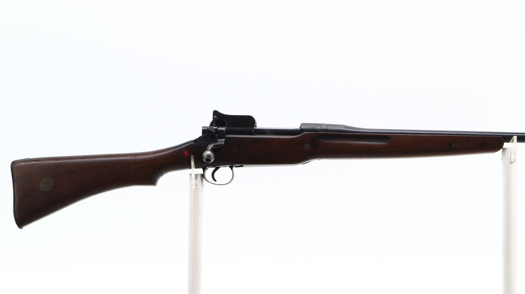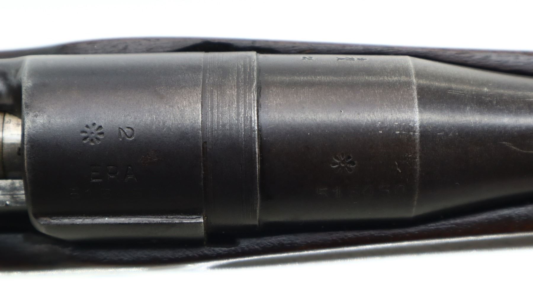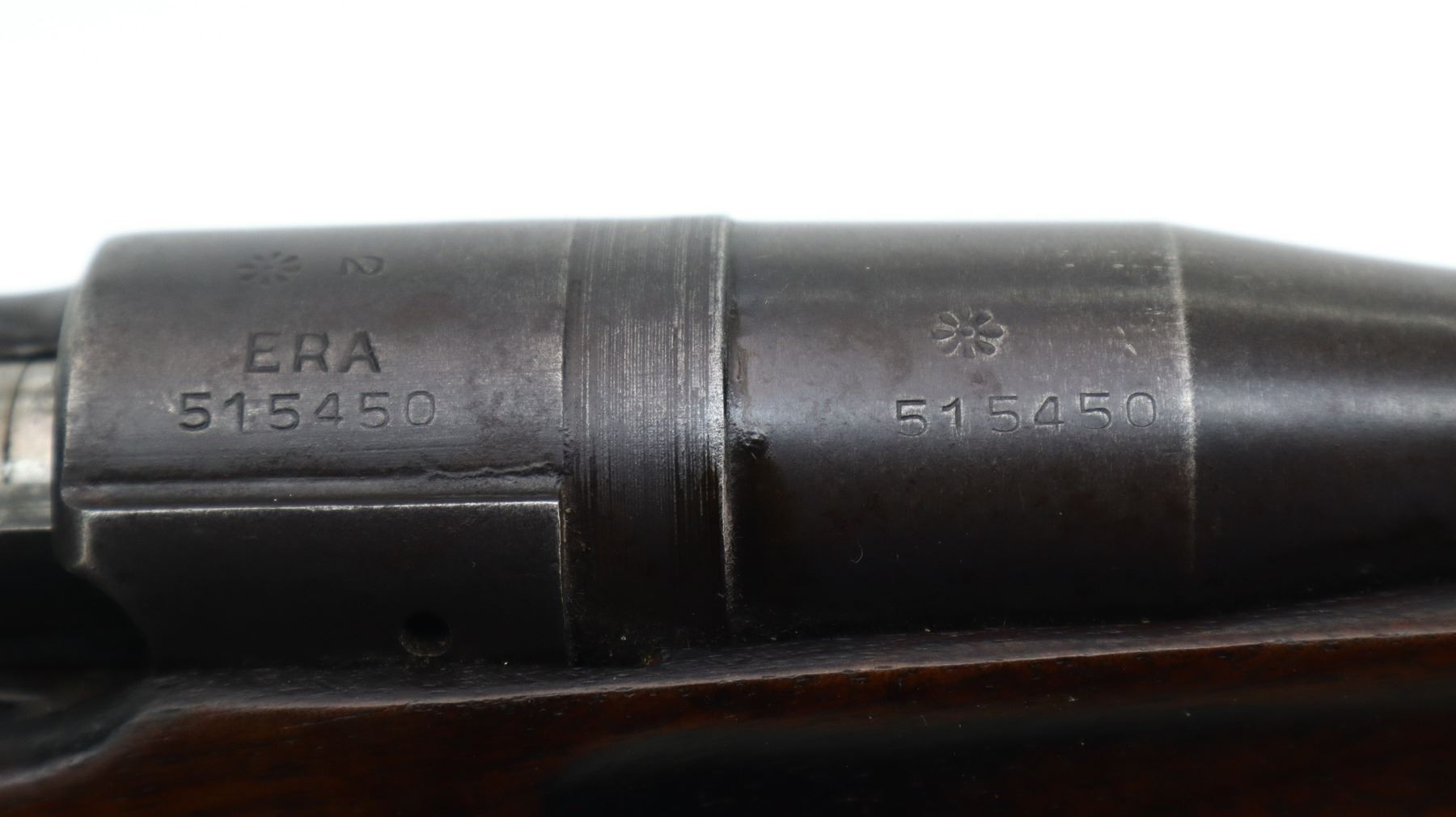 6+/10, ENFIELD, MODEL: P14 SPORTER, CALIBER:303 BR, BORE IS FAIR, LIGHT PITTING. MANUFACTURED BY ERA, BOLT MISMATCHED. BLADE FRONT SIGHT WITH EARS AND RAMP, ADJUSTABLE REAR PEEP SIGHT WITH EARS. ONE PIECE SPORTERIZED WOOD STOCK, PISTOL GRIP, SMOOTH STEEL BUTT PLATE WITH TRAP, BRASS STOCK DISK. METAL FINISH SHOWS SOME SCRATCHES, HANDLING MARKS AND WEAR. STOCK SHOWS SOME MARKS, SCRATCHES AND WEAR. , ACTION: BOLT ACTION RIFLE, BARREL LENGTH: 26", SERIAL # 515450, CONDITION: 6+/10, CLASS: CANADIAN NON RESTRICTED