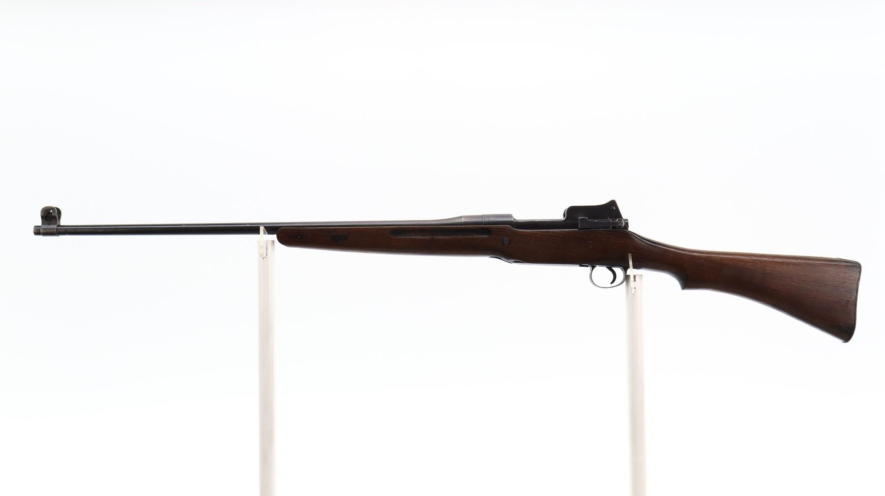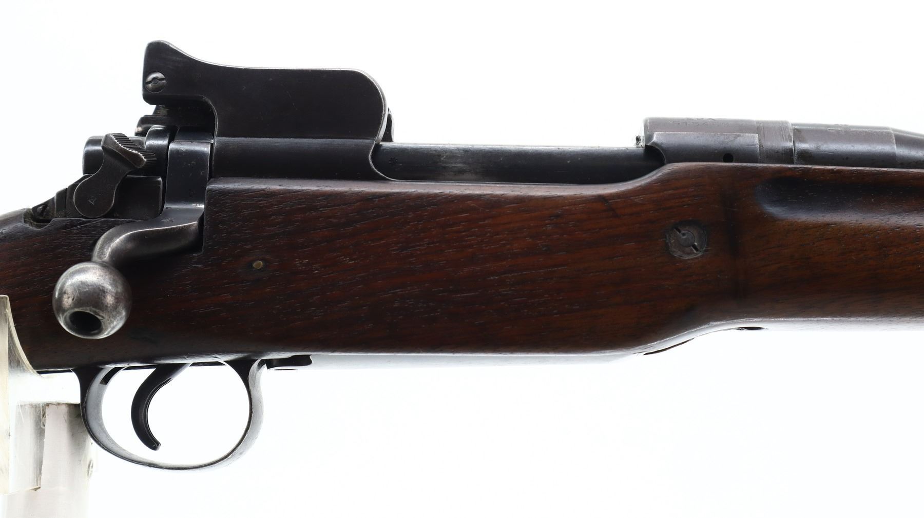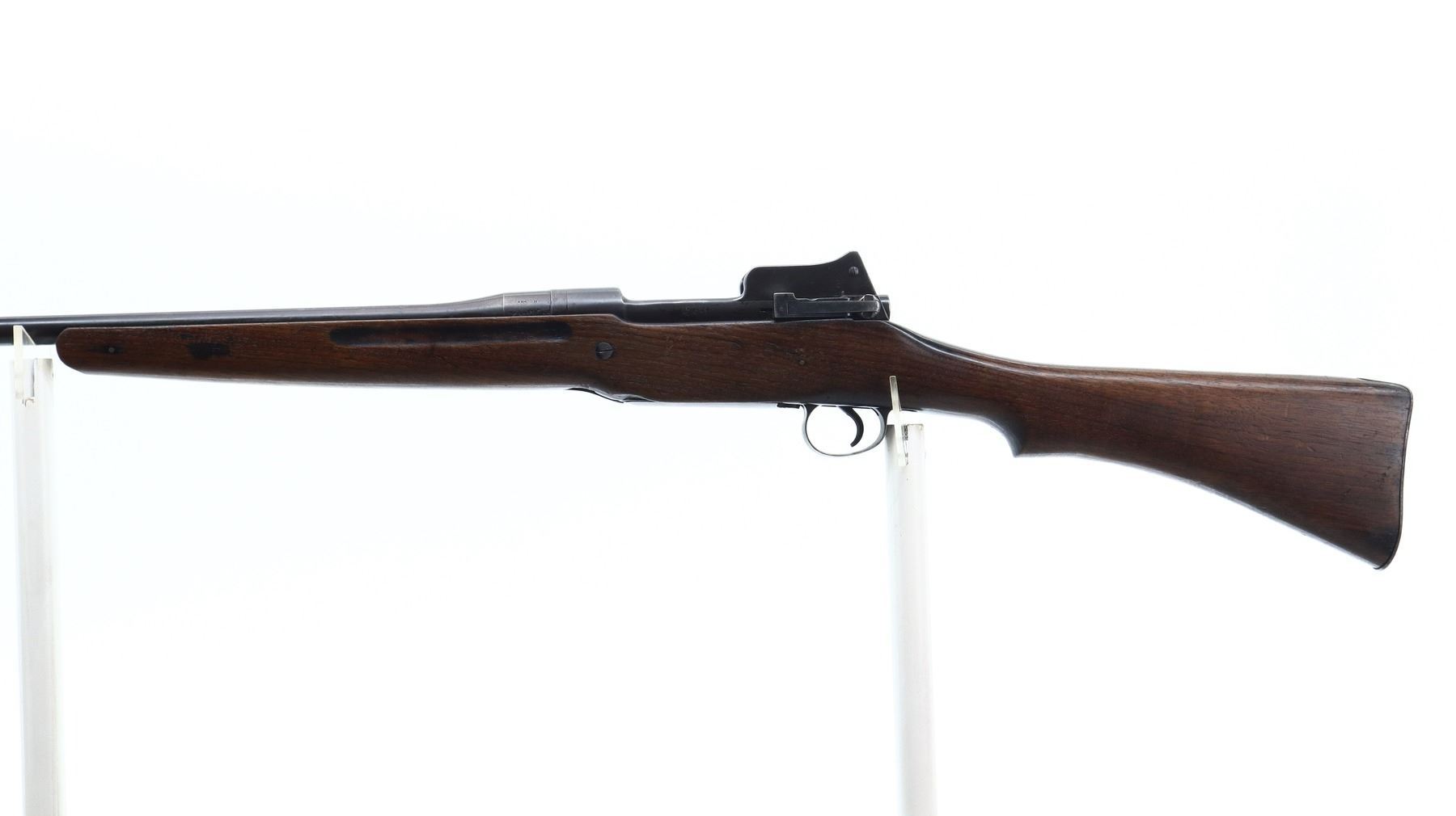 6+/10, ENFIELD, MODEL: P14 SPORTER, CALIBER:303 BR, BORE IS FAIR, LIGHT PITTING. MANUFACTURED BY ERA, BOLT MISMATCHED. BLADE FRONT SIGHT WITH EARS AND RAMP, ADJUSTABLE REAR PEEP SIGHT WITH EARS. ONE PIECE SPORTERIZED WOOD STOCK, PISTOL GRIP, SMOOTH STEEL BUTT PLATE WITH TRAP, BRASS STOCK DISK. METAL FINISH SHOWS SOME SCRATCHES, HANDLING MARKS AND WEAR. STOCK SHOWS SOME MARKS, SCRATCHES AND WEAR. , ACTION: BOLT ACTION RIFLE, BARREL LENGTH: 26", SERIAL # 515450, CONDITION: 6+/10, CLASS: CANADIAN NON RESTRICTED
