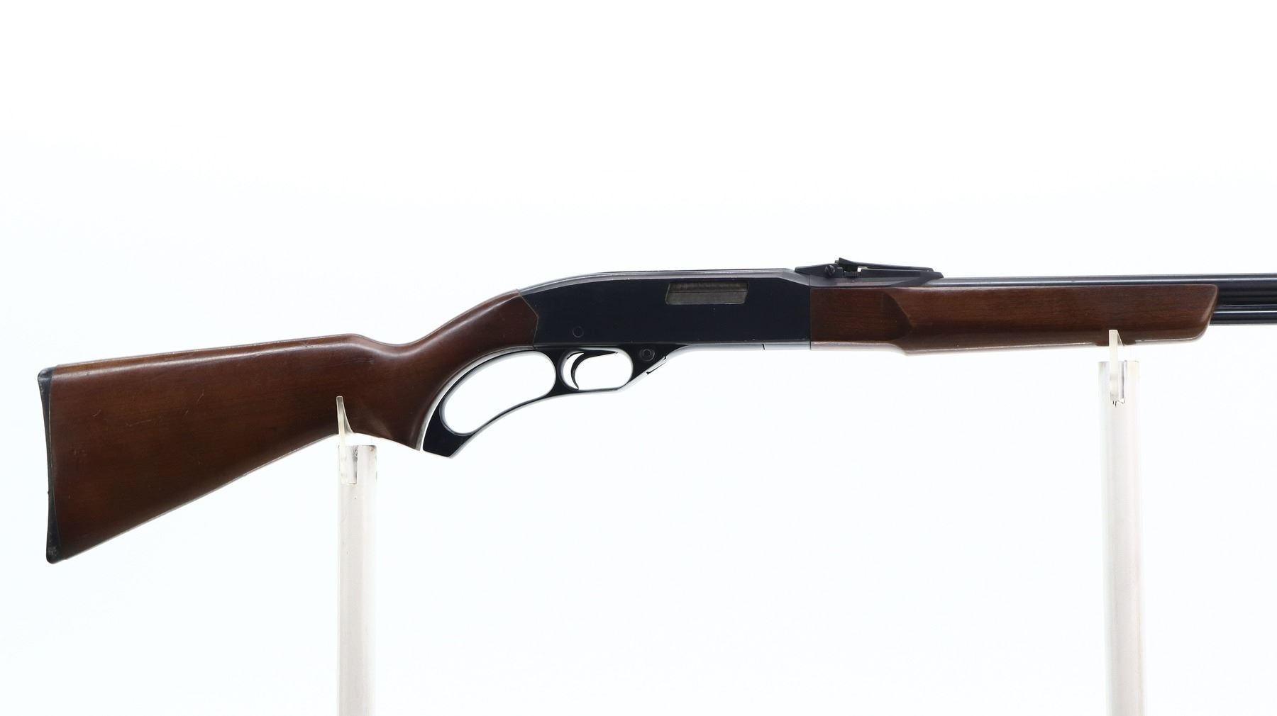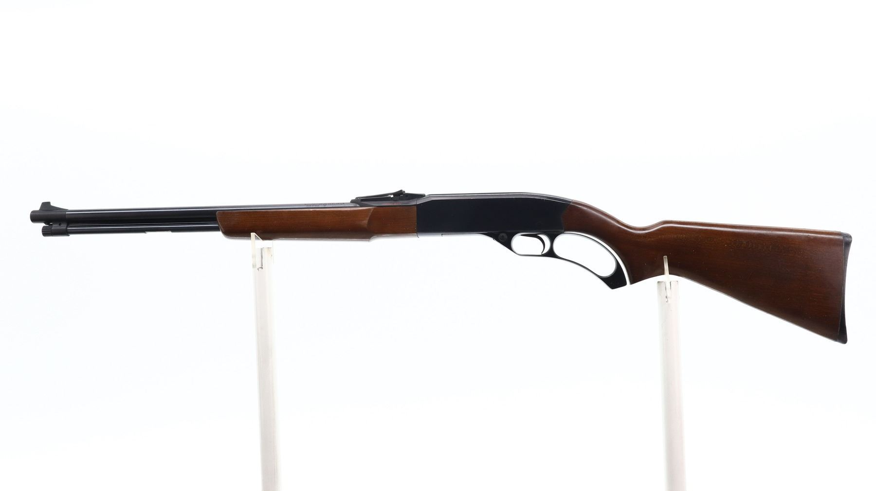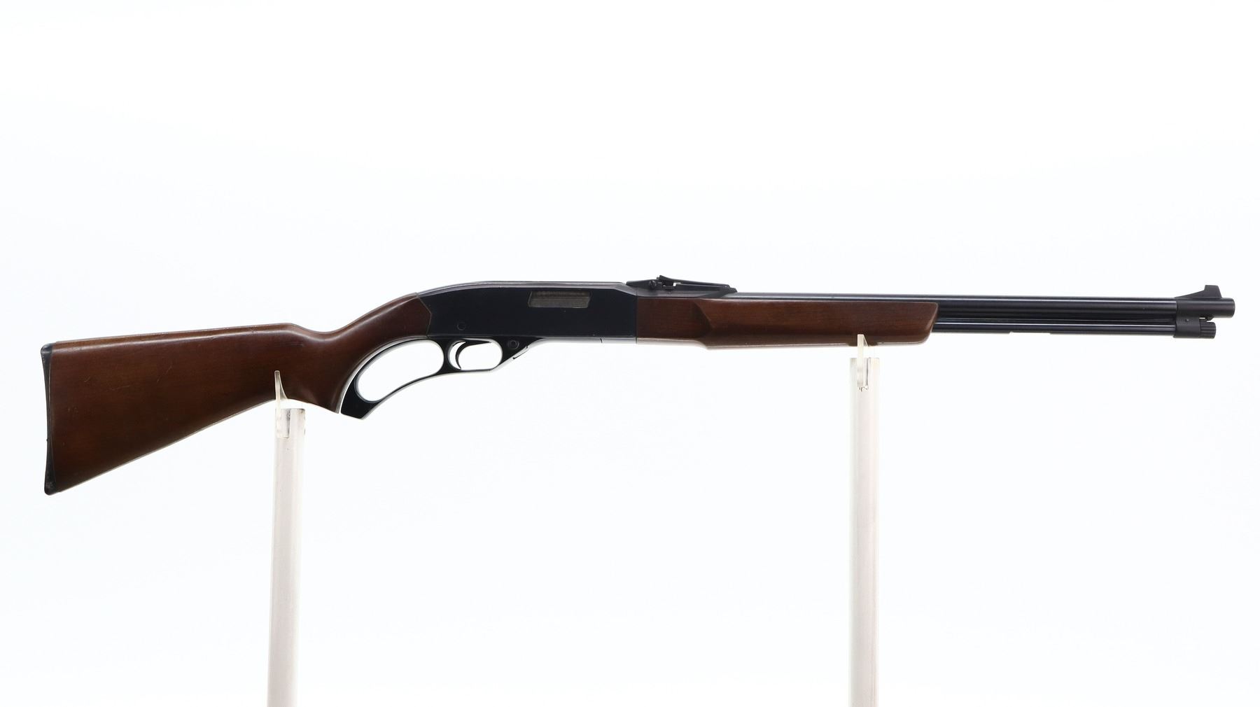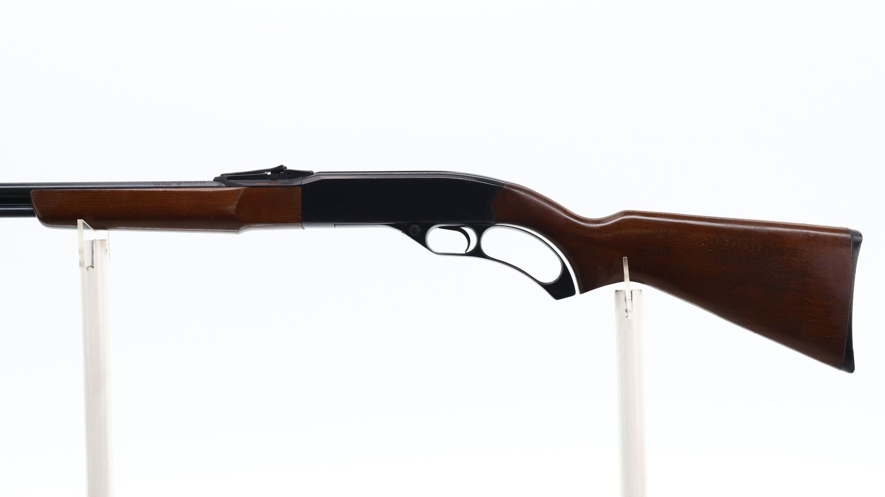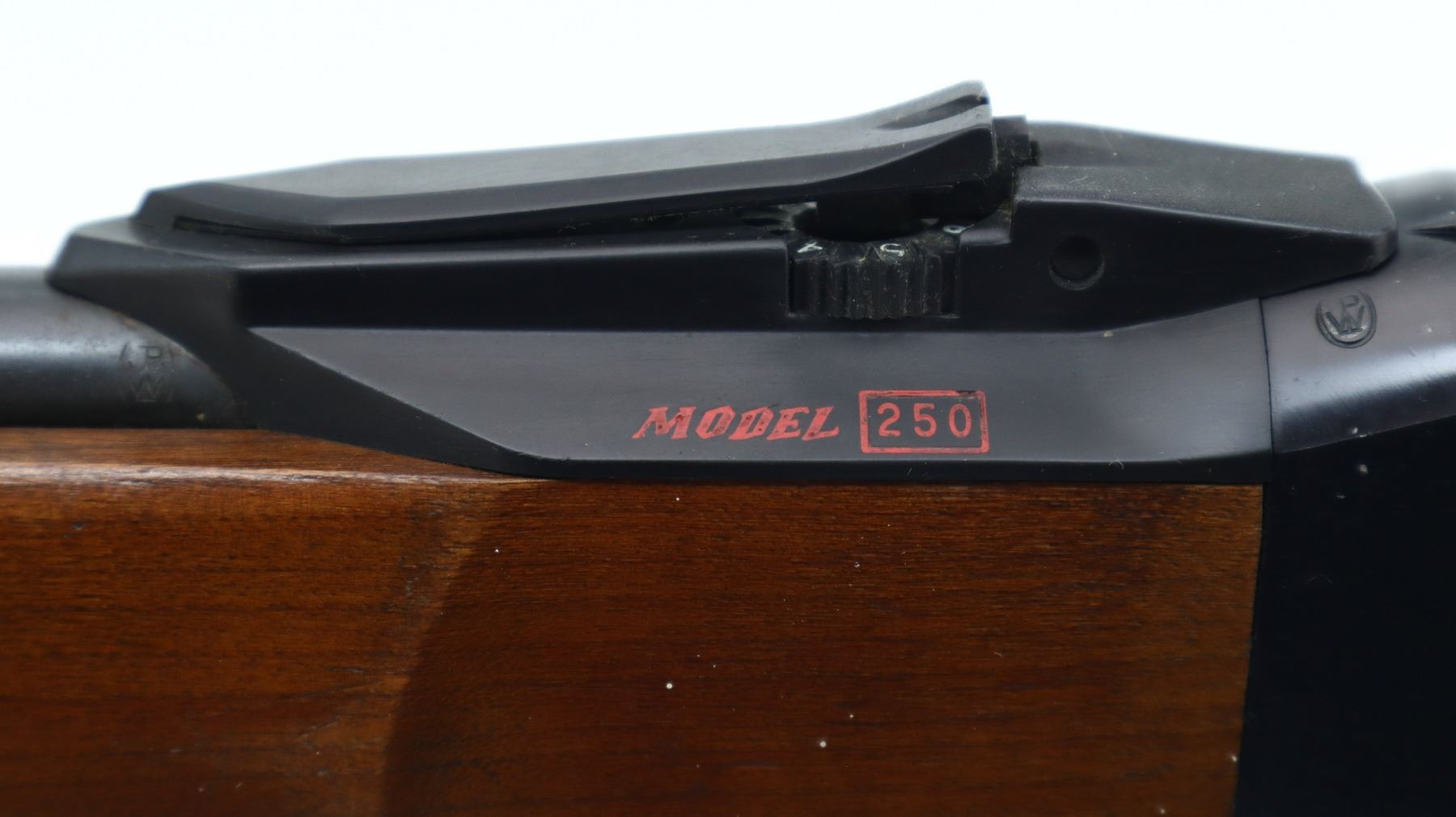 7/10, WINCHESTER, MODEL: 250, CALIBER:22 LR, BORE IS VERY GOOD. BLADE FRONT SIGHT WITH RAMP (BASE CRACKED), ADJUSTABLE U NOTCHED REAR SIGHT, BLUED STEEL BARREL, BLACK ALLOY RECEIVER GROOVED FOR SCOPE MOUNT. TWO PIECE SMOOTH WOOD STOCKS, PISTOL GRIP, GROOVED BLACK POLYMER BUTT PLATE, FULL LENGTH MAG TUBE. METAL FINISH SHOWS SOME SCRATCHES, HANDLING MARKS AND WEAR. STOCKS SHOW SOME MARKS, SCRATCHES AND WEAR. , ACTION: LEVER ACTION RIFLE, BARREL LENGTH: 20", SERIAL # NA, CONDITION: 7/10, CLASS: CANADIAN NON RESTRICTED