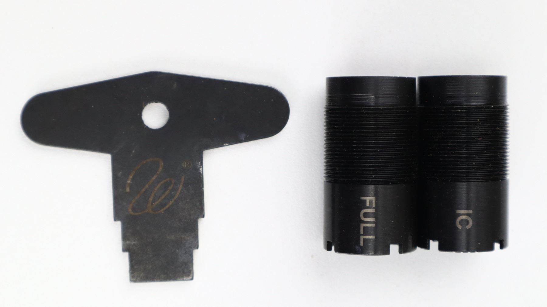 6+/10, WEATHERBY, MODEL: PA08, CALIBER:12 G X 3", COMES WITH 2 SPARE CHOKES, BORE IS VERY GOOD. FIXED MOD CHOKE INSTALLED. BRASS BEAD, BLACK MATTE FINISH VENT RIB STEEL BARREL, BLACK ALLOY RECEIVER. TWO PIECE BLACK SYNTHETIC STOCKS, CHECKERED FOREARM AND PISTOL GRIP, BLACK RUBBER RECOIL PAD, SWIVEL STUDS, SPARE CHOKES INCLUDE: IC, FULL WITH WRENCH. METAL FINISH SHOWS SOME SCRATCHES, HANDLING MARKS AND WEAR. STOCKS SHOW SOME MARKS AND SCRATCHES. , ACTION: PUMP ACTION SHOTGUN, BARREL LENGTH: 28", SERIAL # TP020732, CONDITION: 6+/10, CLASS: CANADIAN NON RESTRICTED