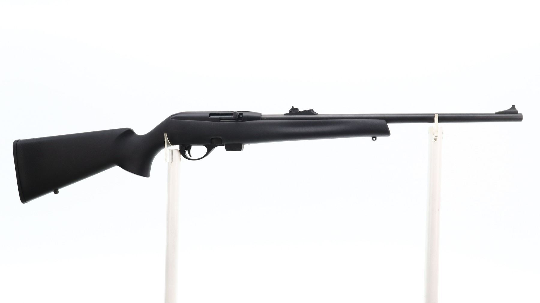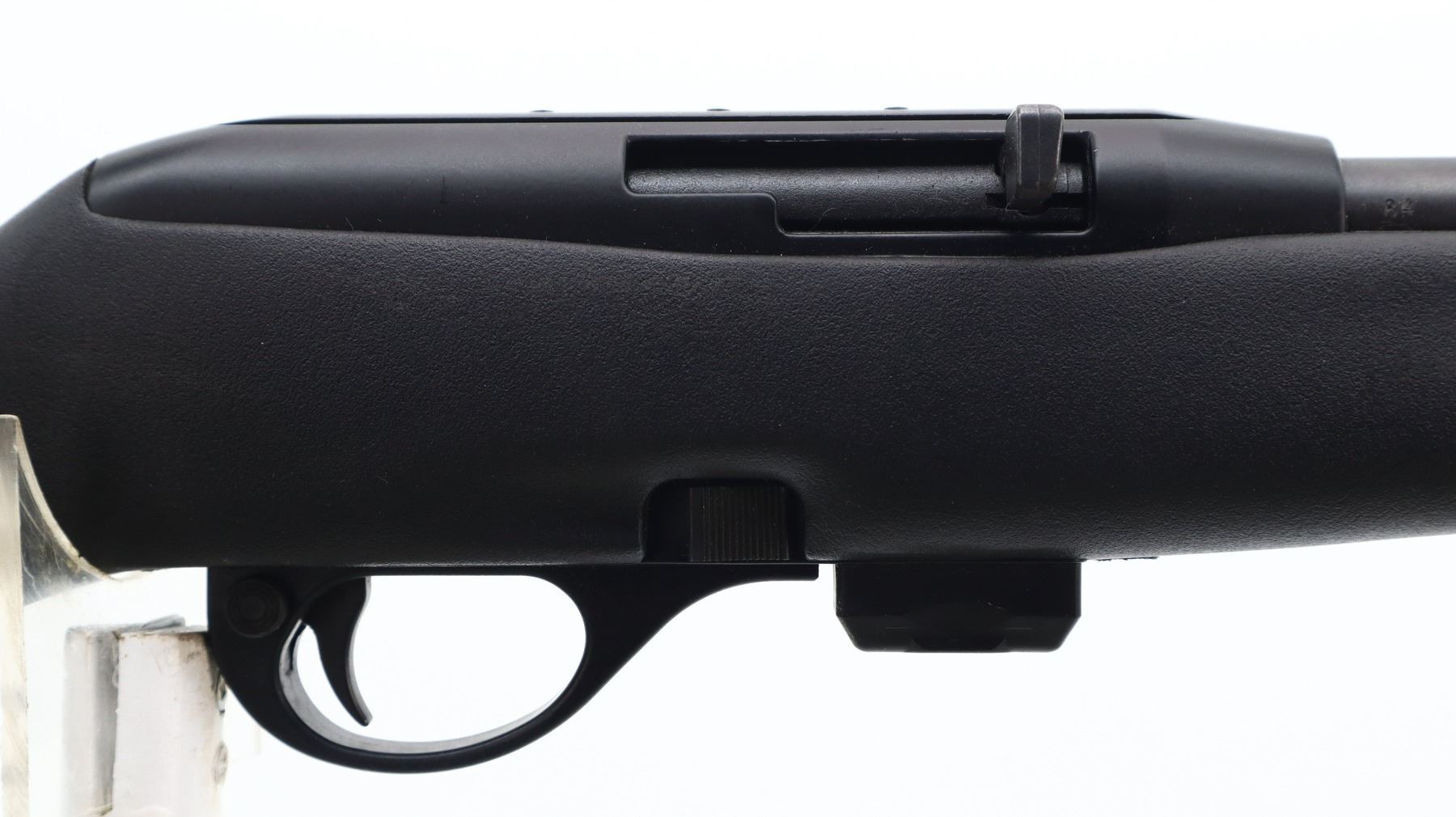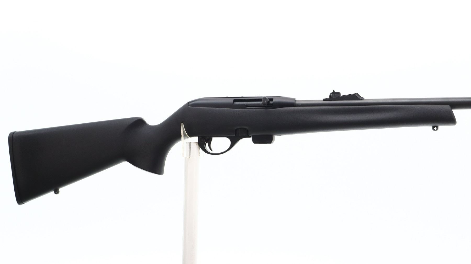 7/10, REMINGTON, MODEL: 597, CALIBER:22 LR, COMES WITH MAGAZINE, BORE IS VERY GOOD. BLADE FRONT SIGHT WITH RAMP, ADJUSTABLE U NOTCHED REAR SIGHT, BLACK MATTE FINISH, STEEL BARREL, BLACK ALLOY RECEIVER GROOVED AND DRILLED AND TAPPED FOR SCOPE MOUNT. ONE PIECE TEXTURED BLACK SYNTHETIC STOCK, FINGER GROOVED FOREND, PISTOL GRIP, CHECKERED BLACK POLYMER BUTT PLATE, SWIVEL STUDS. METAL FINISH SHOWS SOME SCRATCHES, HANDLING MARKS AND WEAR. STOCK SHOWS SOME MARKS, SCRATCHES AND WEAR. , ACTION: SEMI AUTOMATIC RIFLE, BARREL LENGTH: 20", SERIAL # D2926796, CONDITION: 7/10, CLASS: CANADIAN NON RESTRICTED