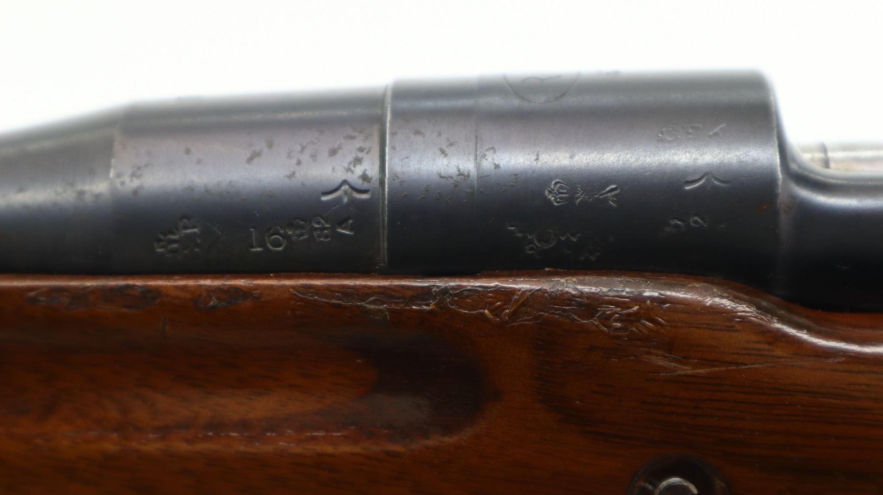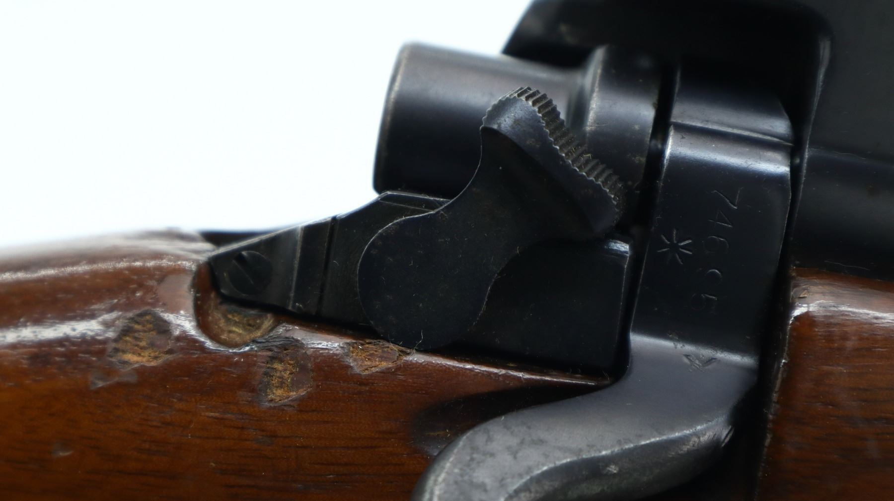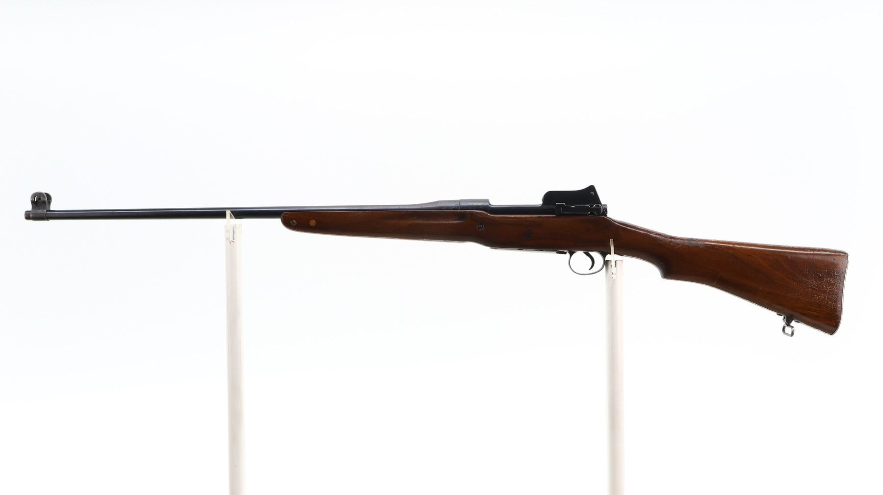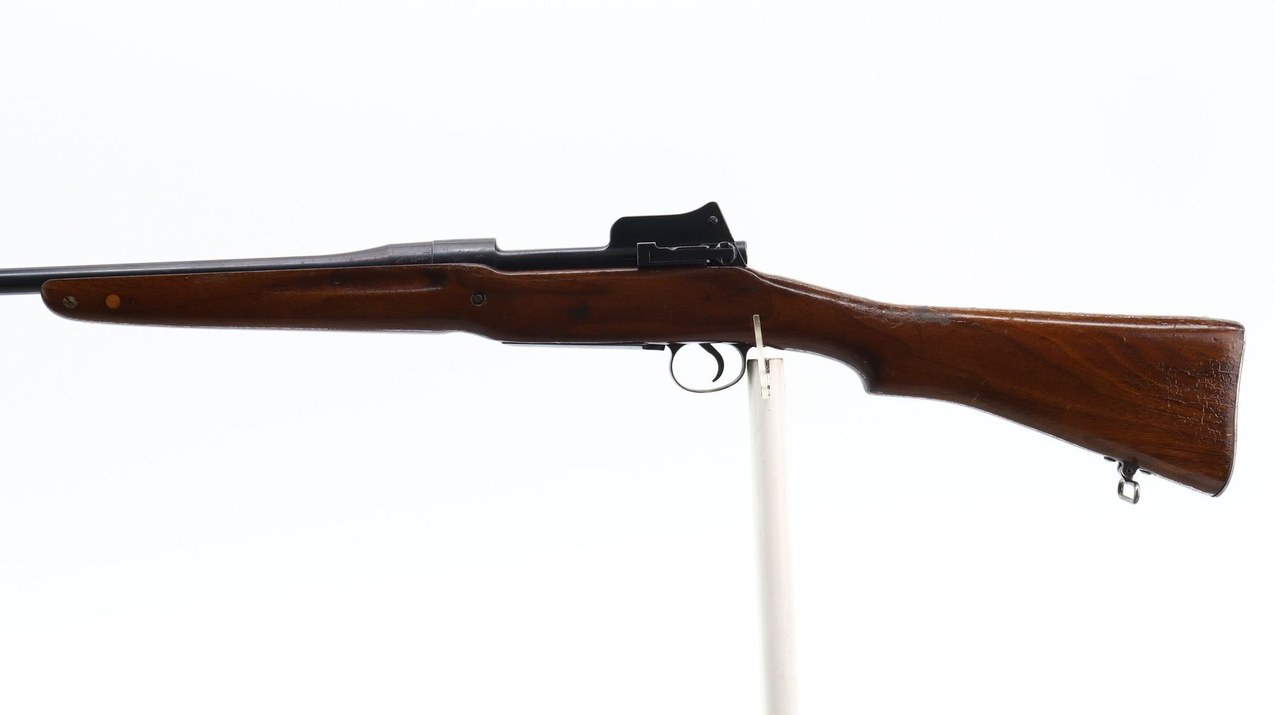 7/10, ENFIELD, MODEL: P14 SPORTER, CALIBER:303 BR, BORE IS VERY GOOD. MANUFACTURED BY REMINGTON, VISIBLE NUMBERS MATCH. BLADE FRONT SIGHT WITH EARS AND RAMP, ADJUSTABLE REAR PEEP SIGHT WITH EARS. ONE PIECE SPORTERIZED WOOD STOCK, FINGER GROOVED FOREND, PISTOL GRIP, SMOOTH STEEL BUTT PLATE WITH TRAP, STOCK DISK REPLACED, REAR SLING SWIVEL ONLY. METAL FINISH SHOWS A FEW LIGHT RUST SPECKLES, SCRATCHES, HANDLING MARKS AND WEAR. STOCK SHOWS SOME MARKS, SCRATCHES AND WEAR. , ACTION: BOLT ACTION RIFLE, BARREL LENGTH: 26", SERIAL # 74695, CONDITION: 7/10, CLASS: CANADIAN NON RESTRICTED